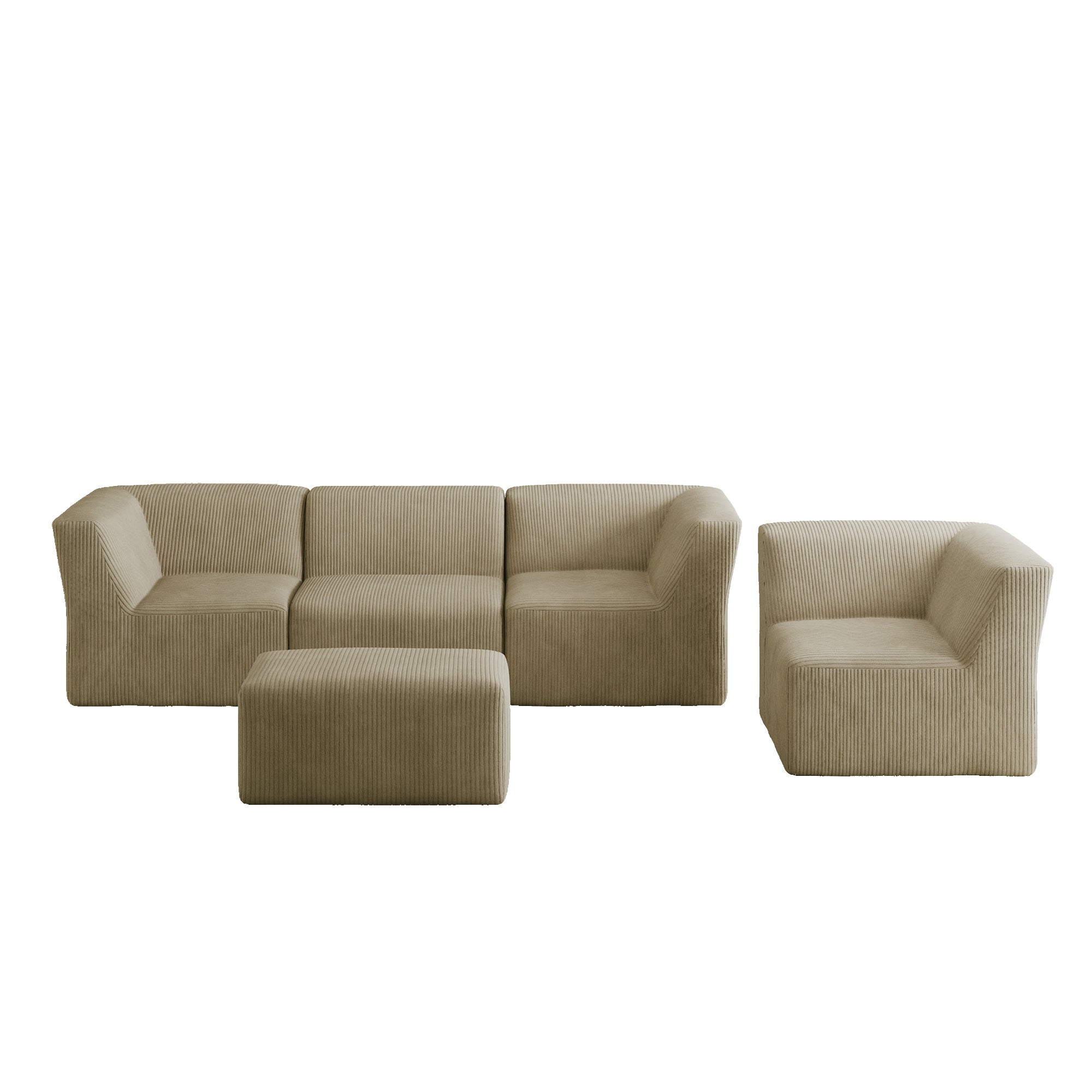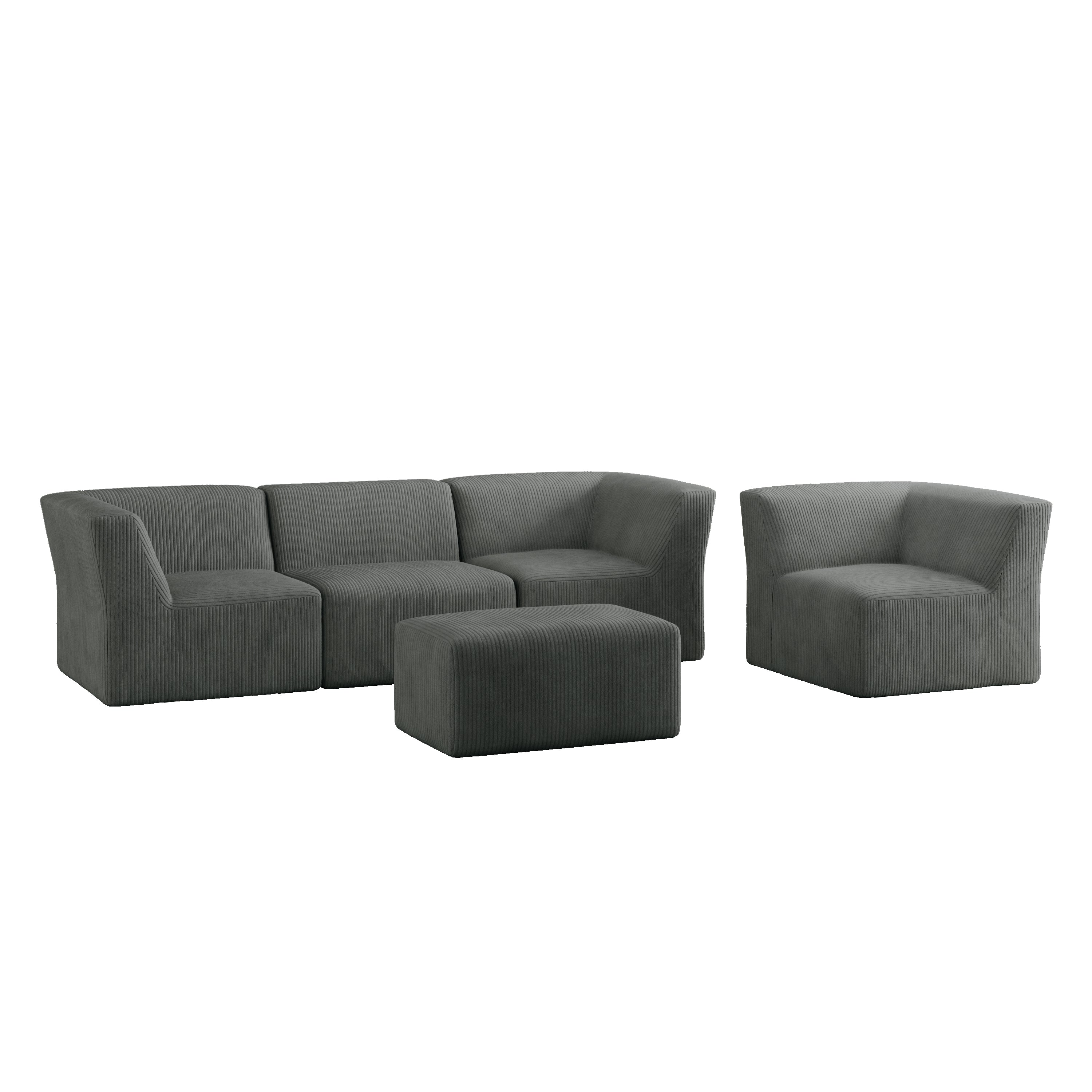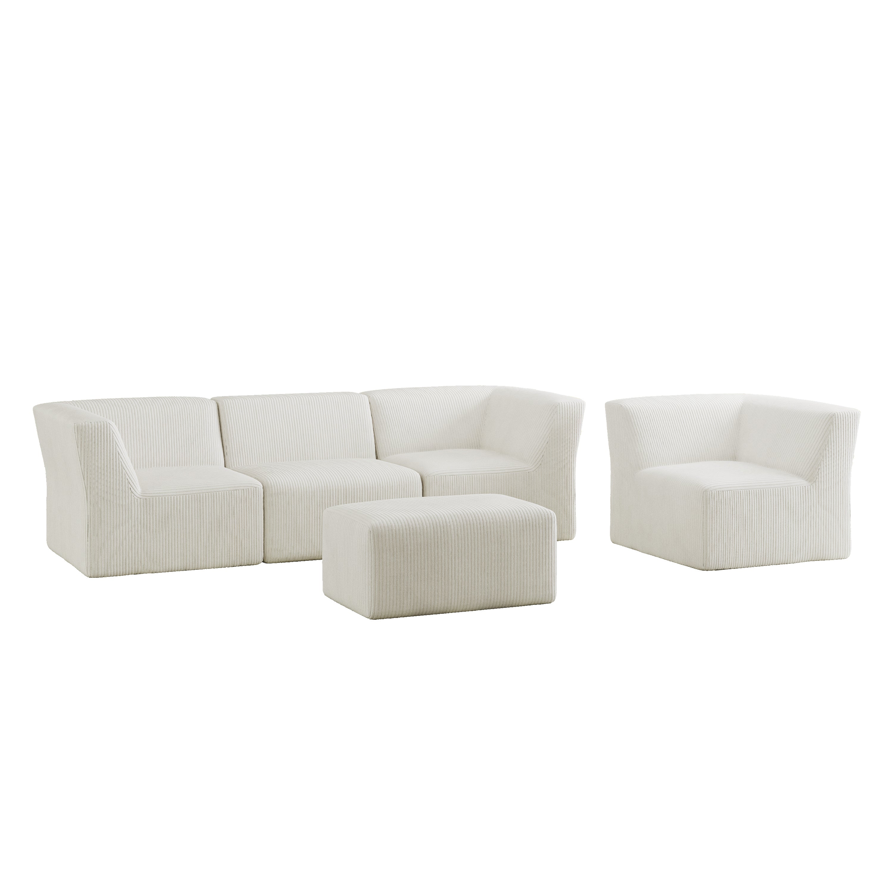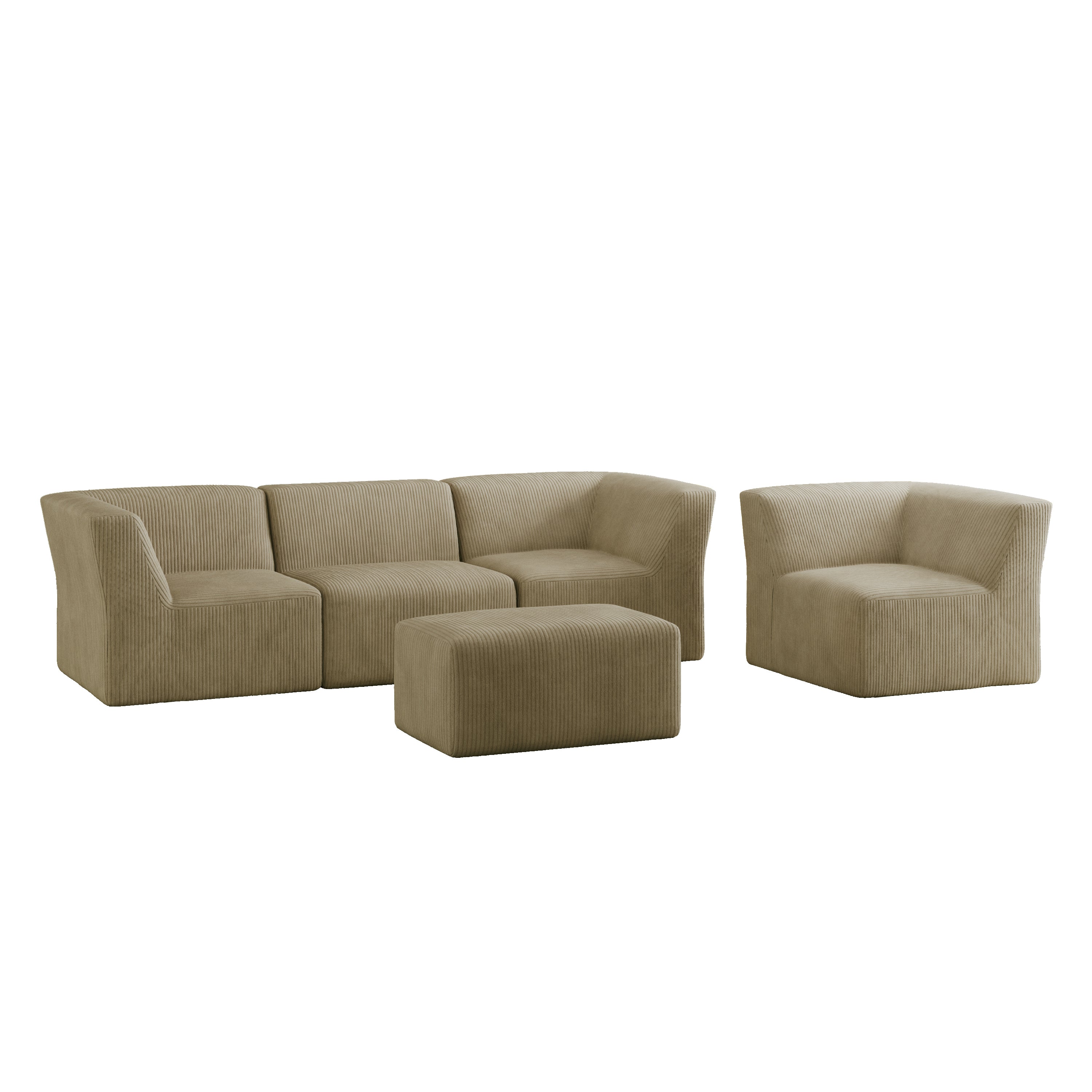 Amaelle 5-Piece Corduroy Sectional Sofa with Corner Chair