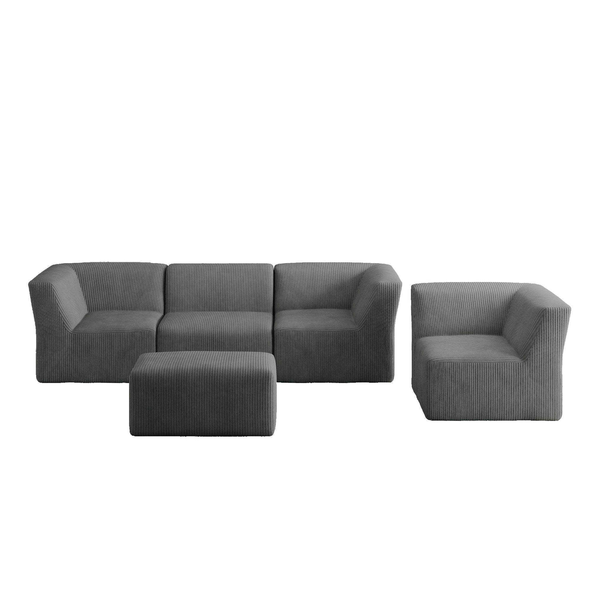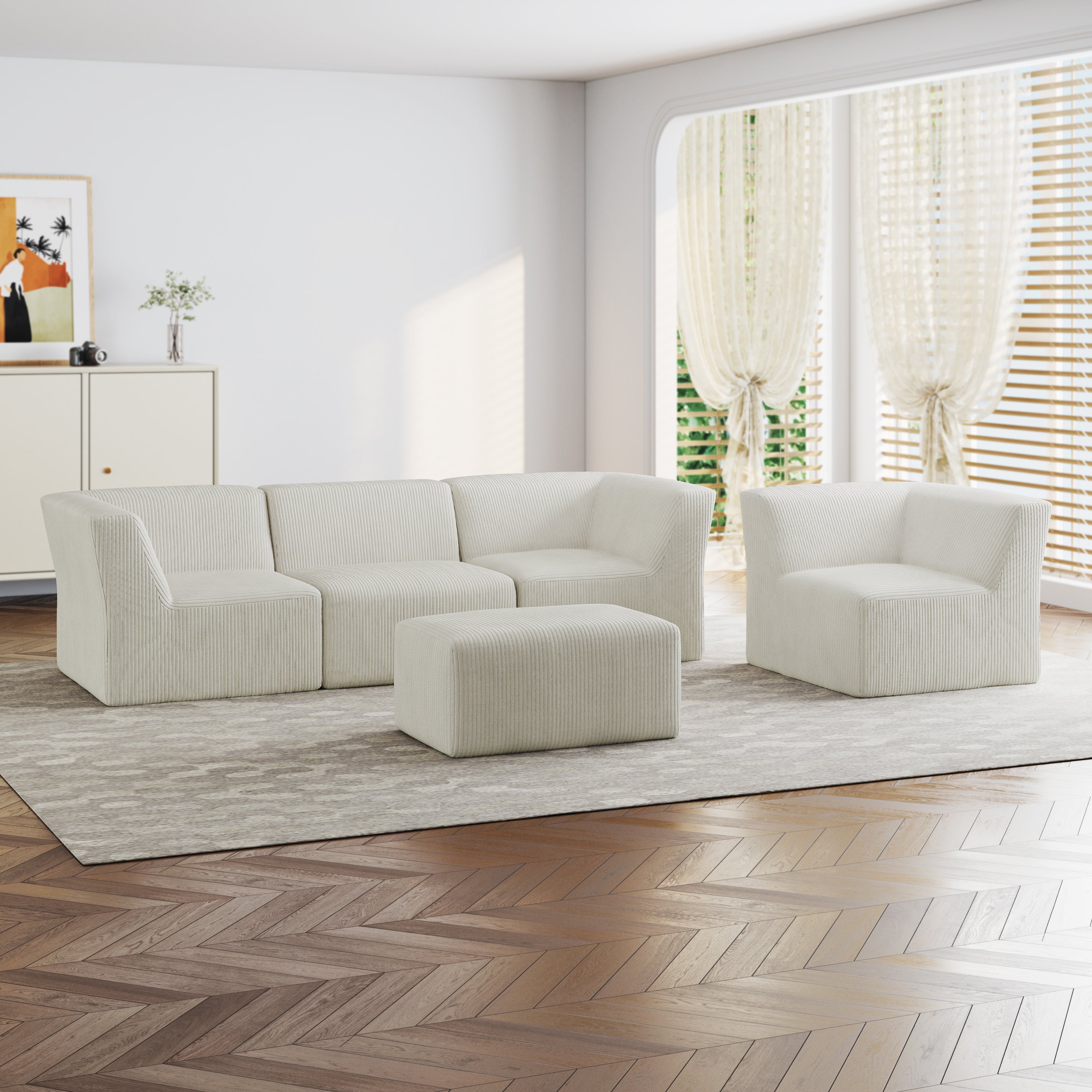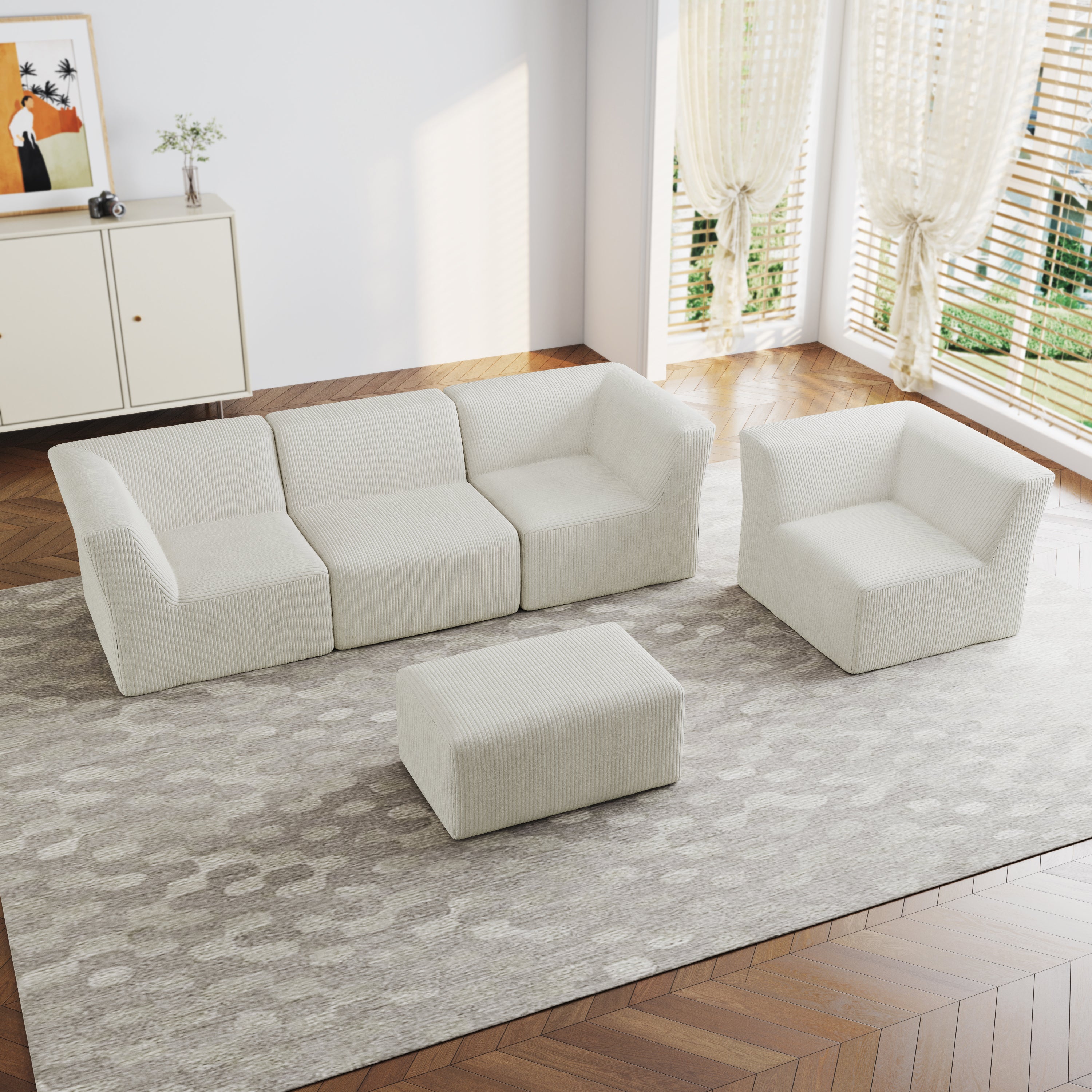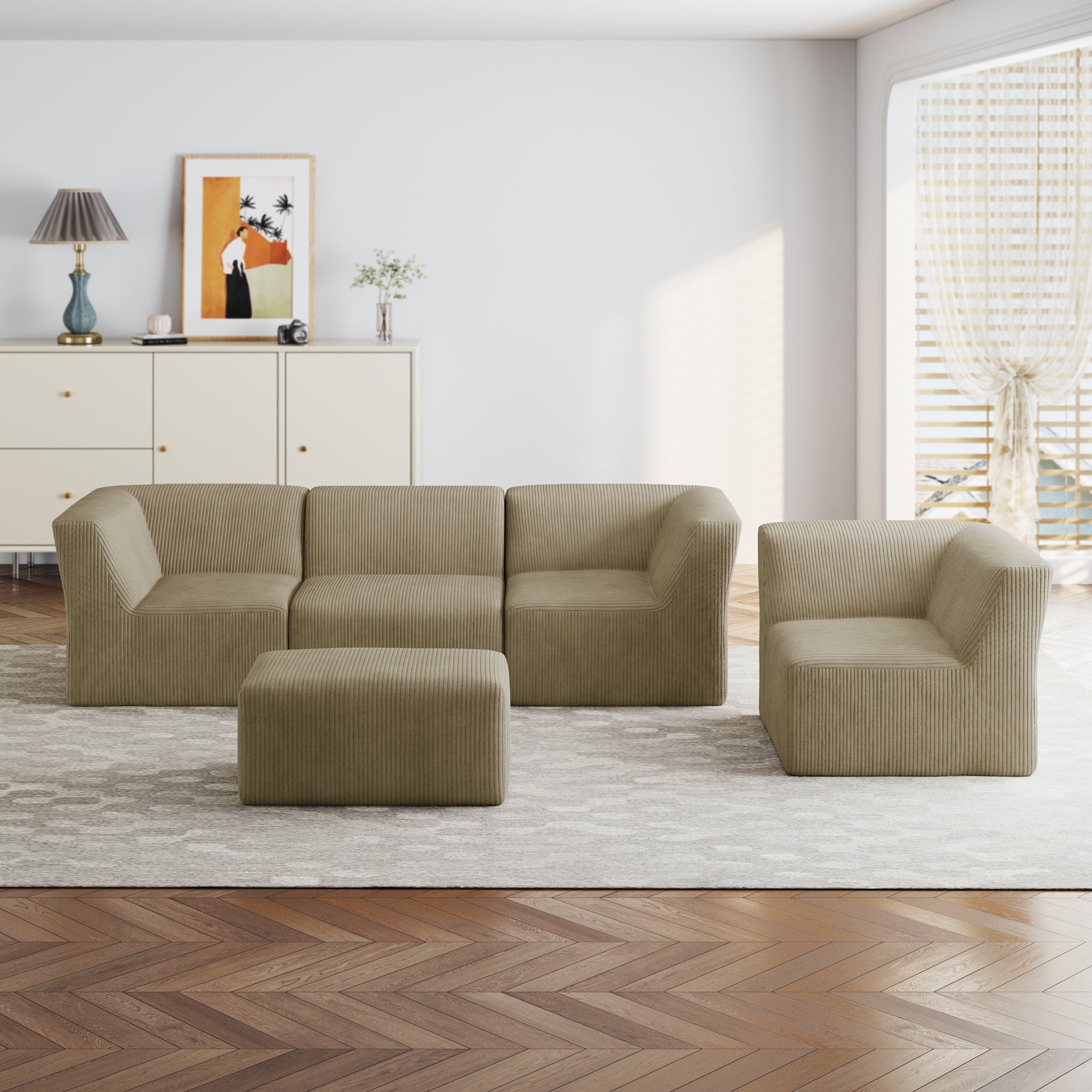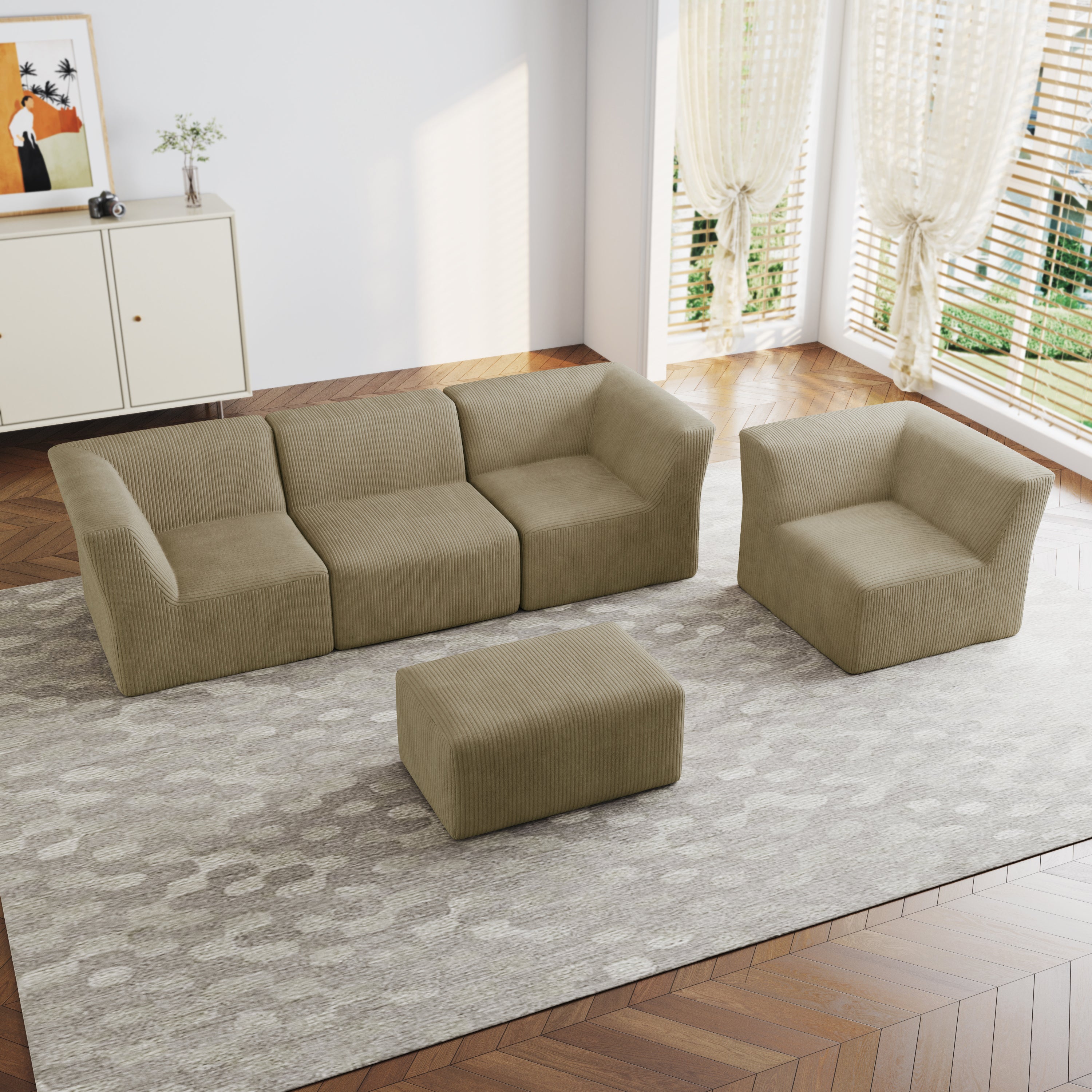 Amaelle 5-Piece Corduroy Sectional Sofa with Corner Chair