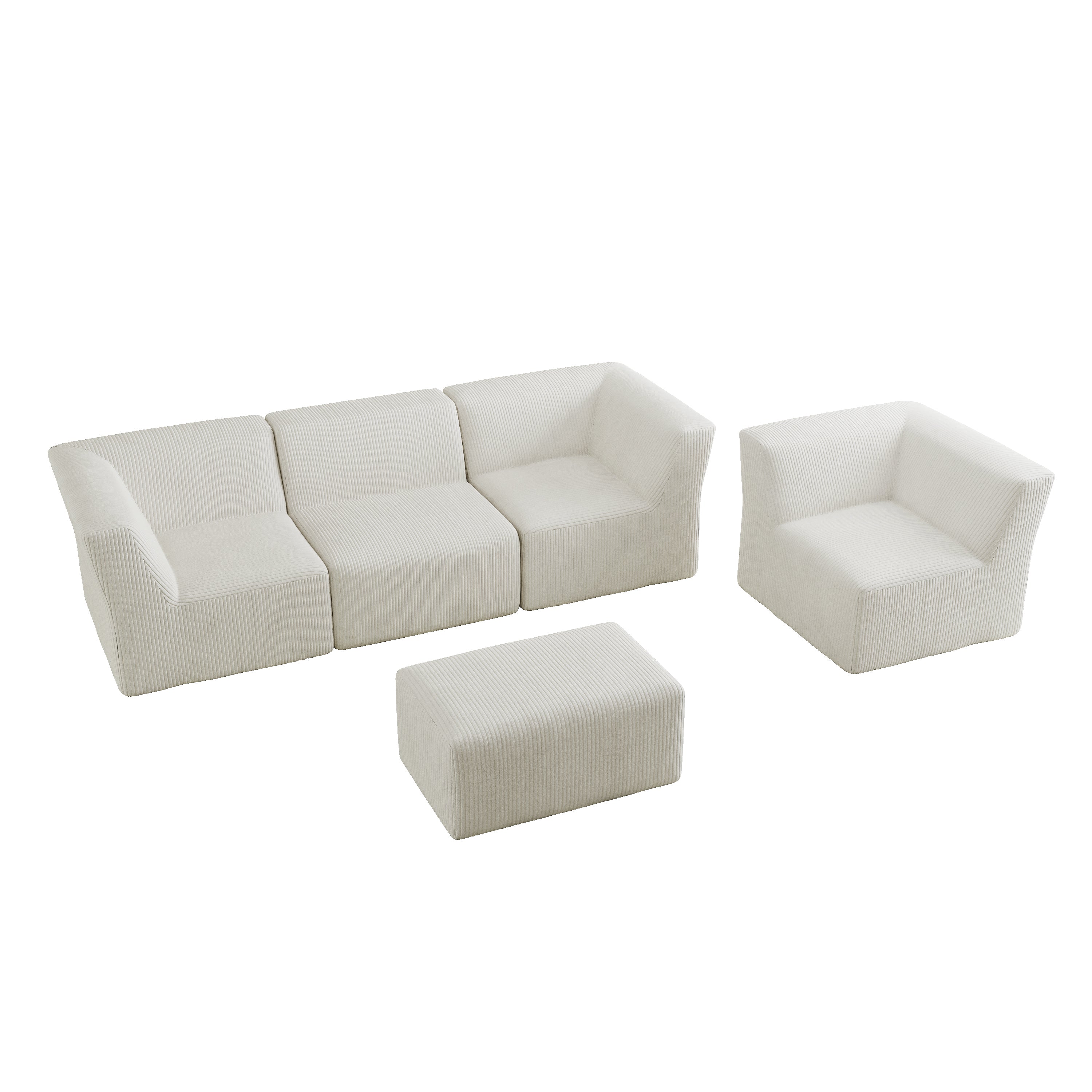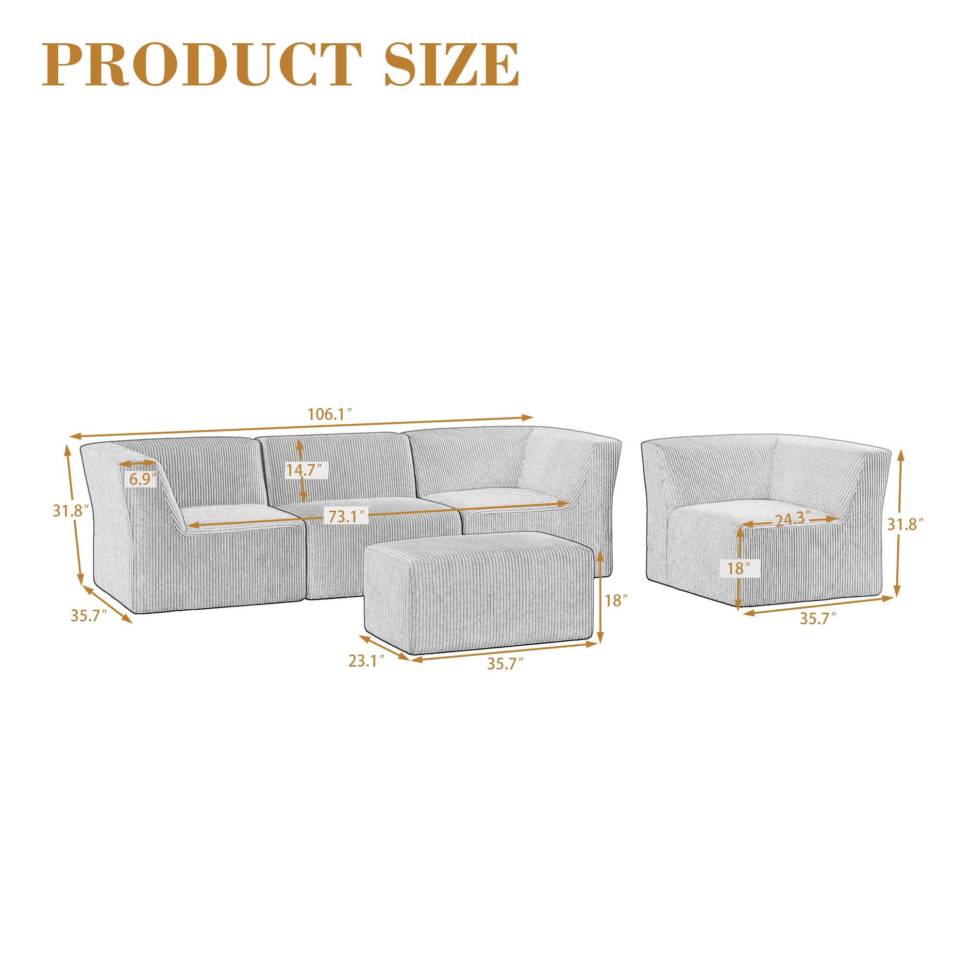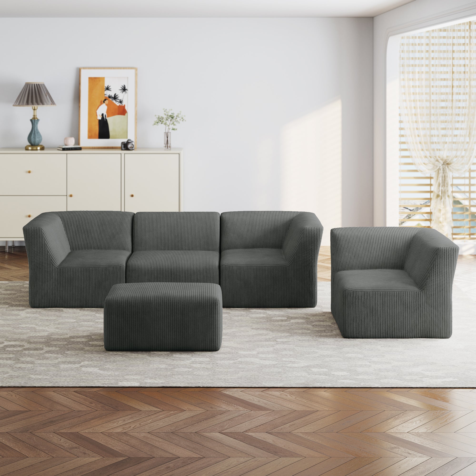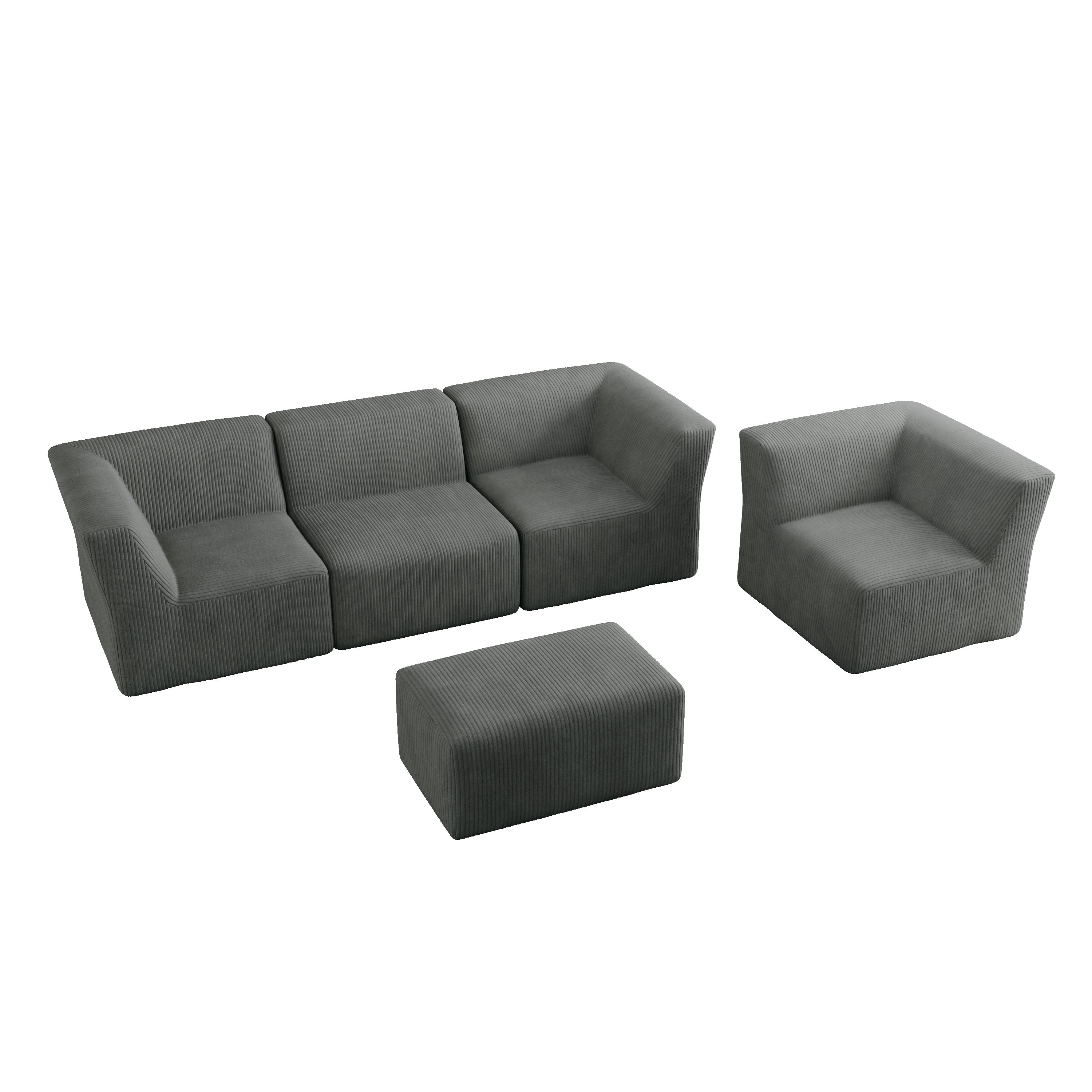 Amaelle 5-Piece Corduroy Sectional Sofa with Corner Chair