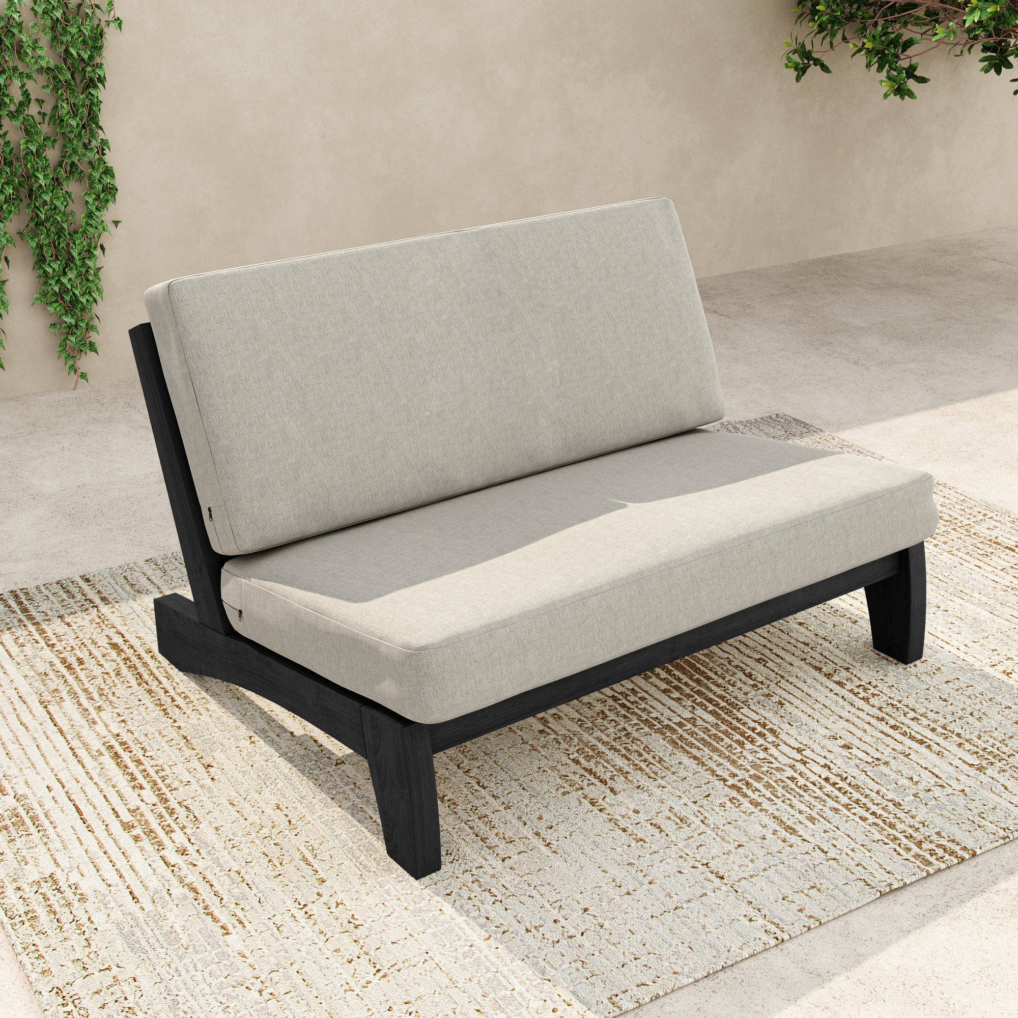 Seamless loveseat back keeps the look smooth and minimal for clean outdoor styling.