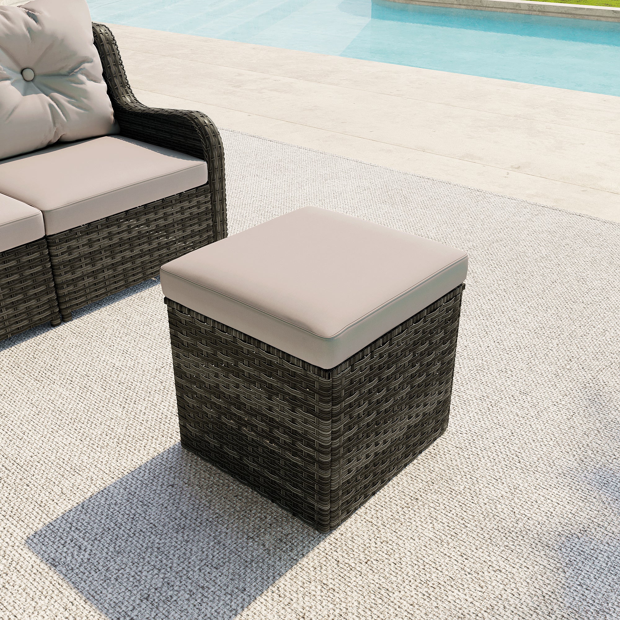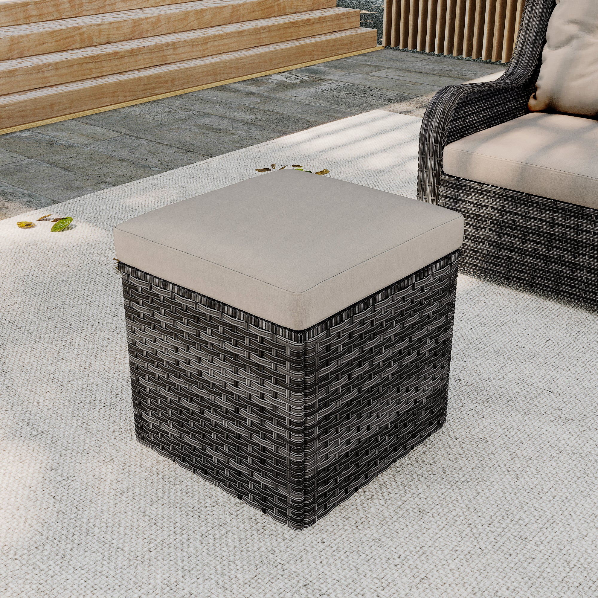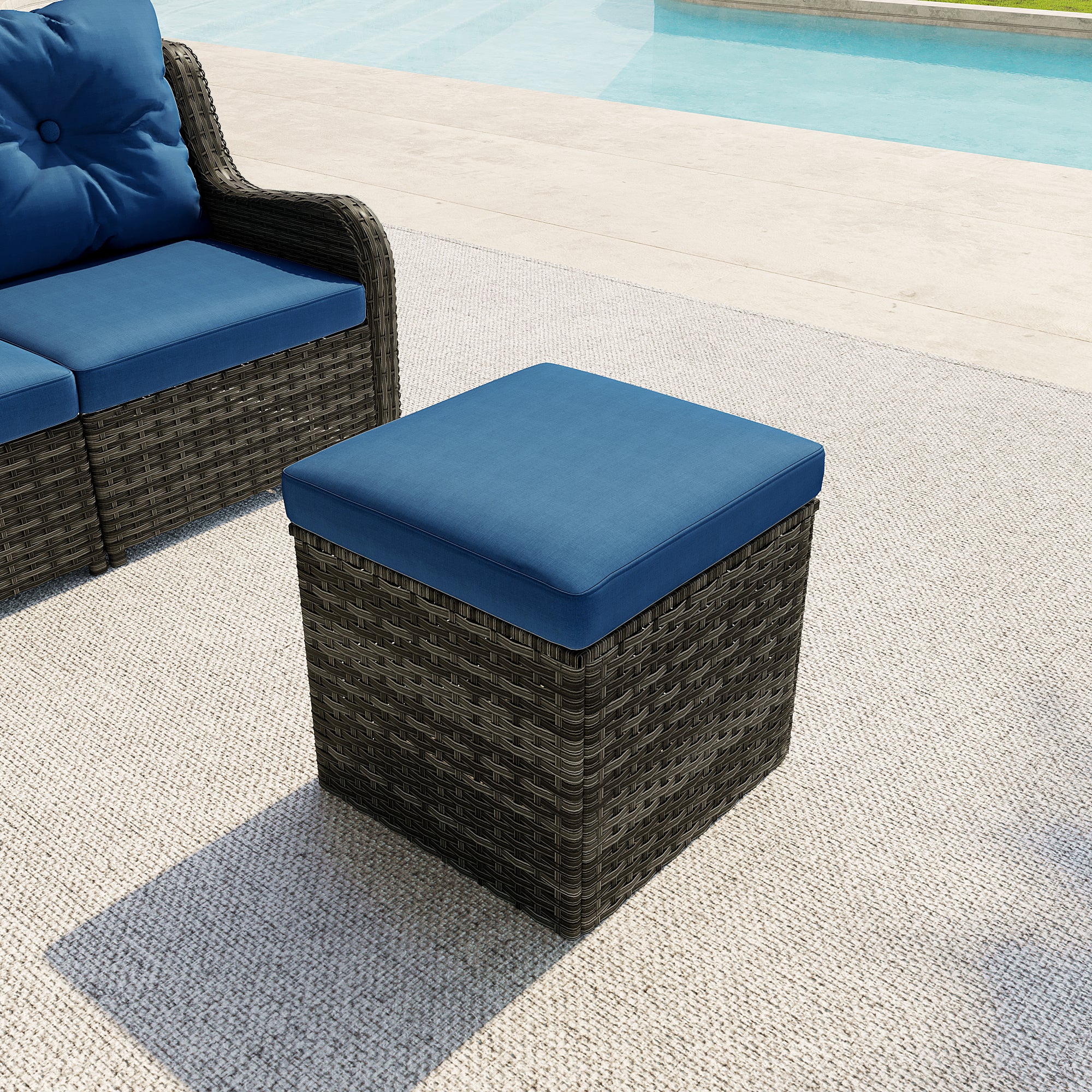 Includes 1 square ottoman with cushion, perfect for pairing with patio sets or using solo outdoors.