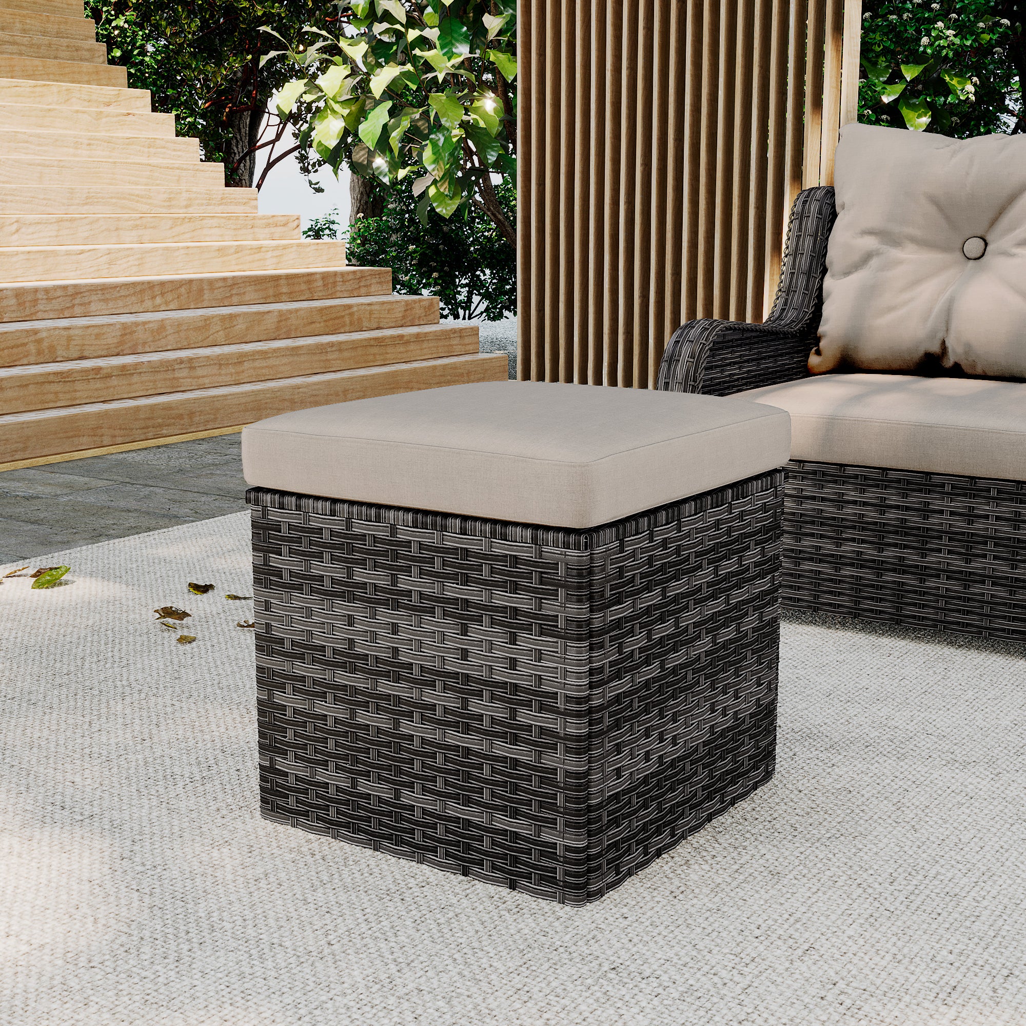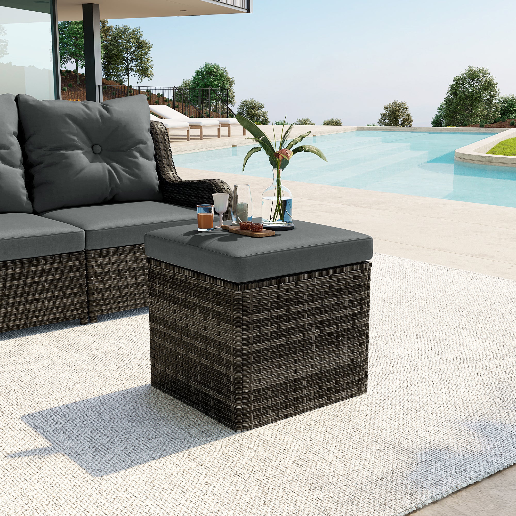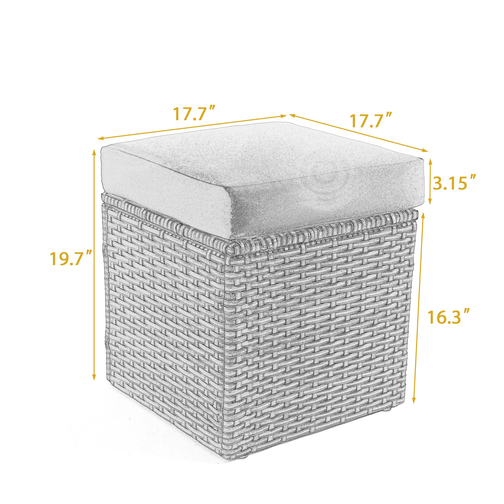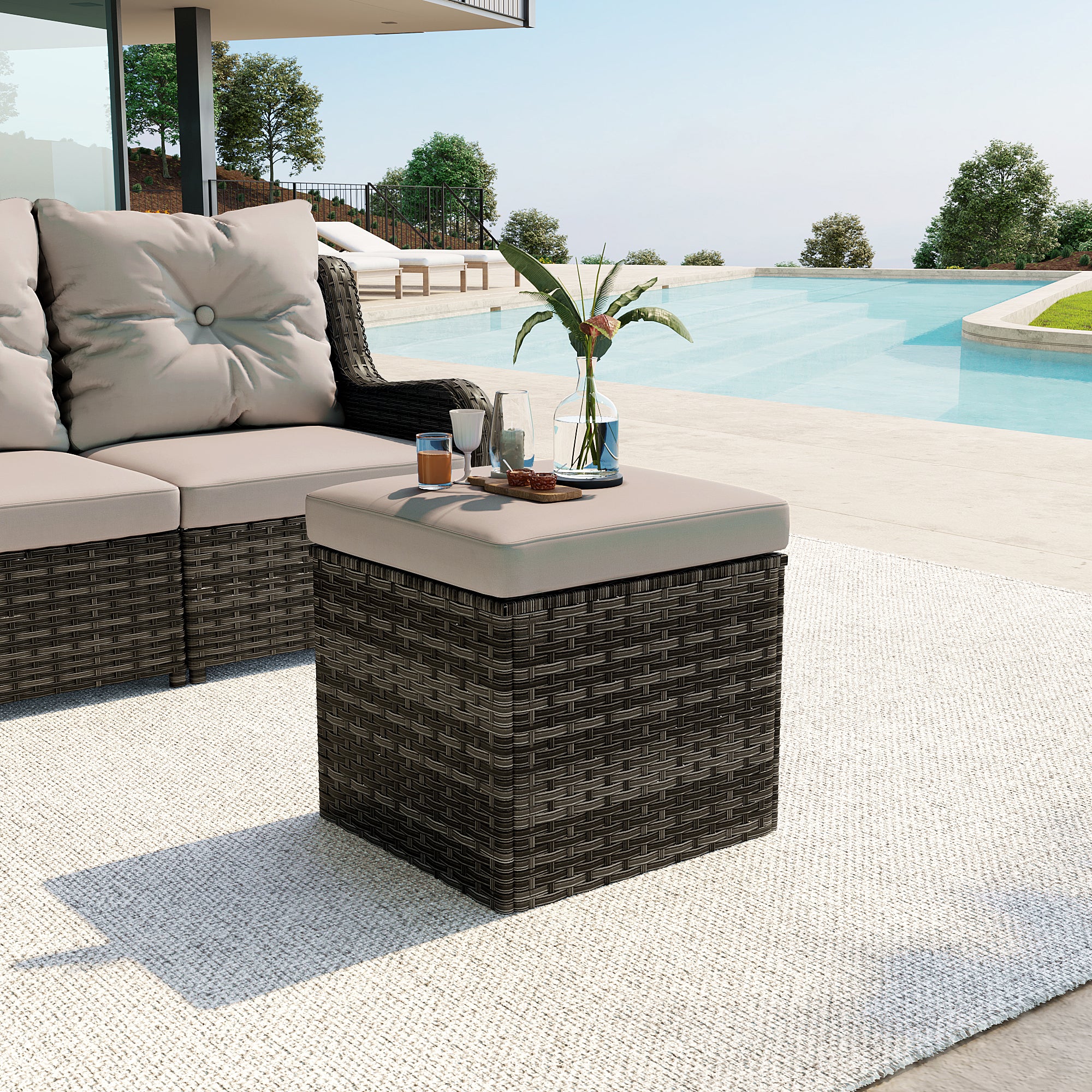 Includes 1 square ottoman with cushion, perfect for pairing with patio sets or using solo outdoors.