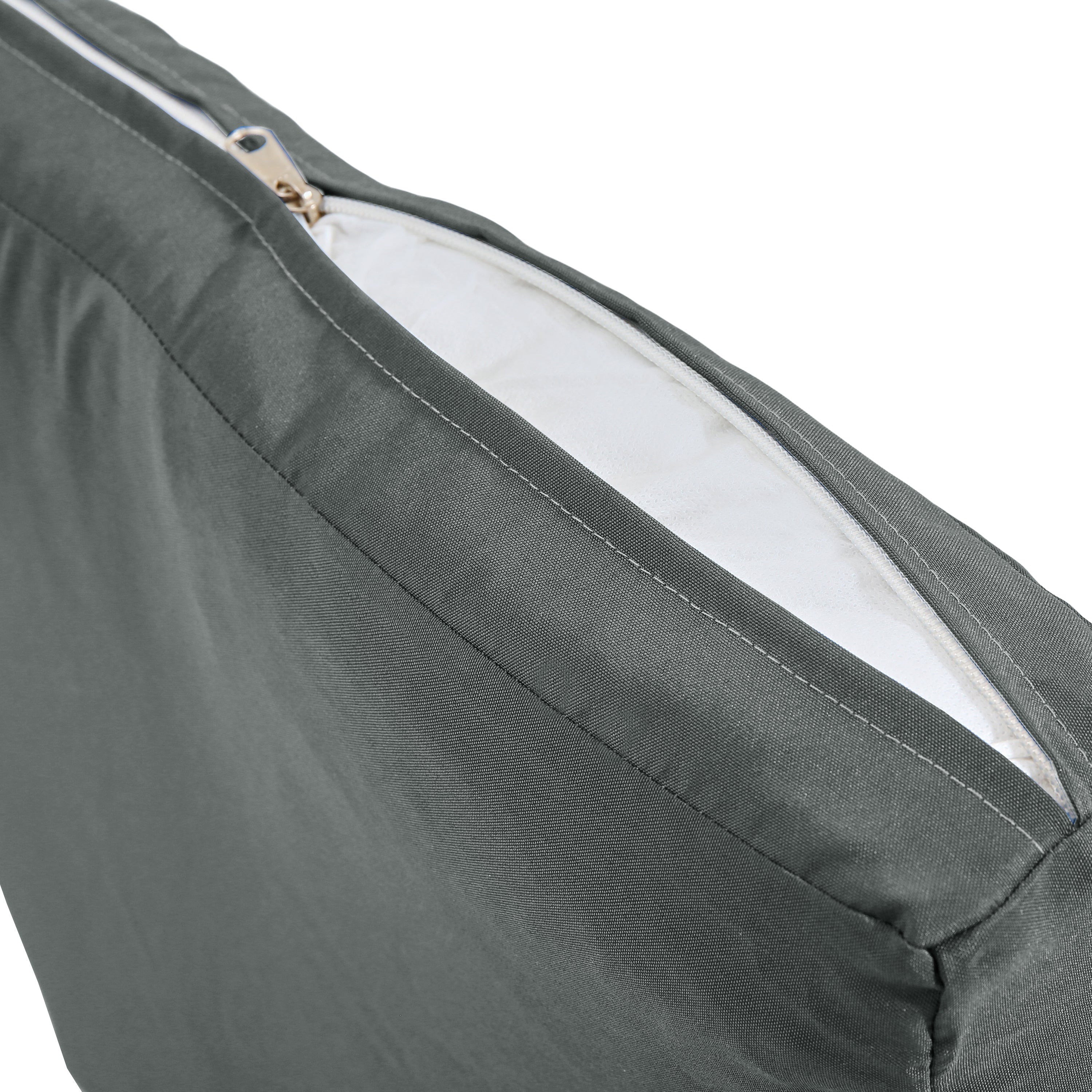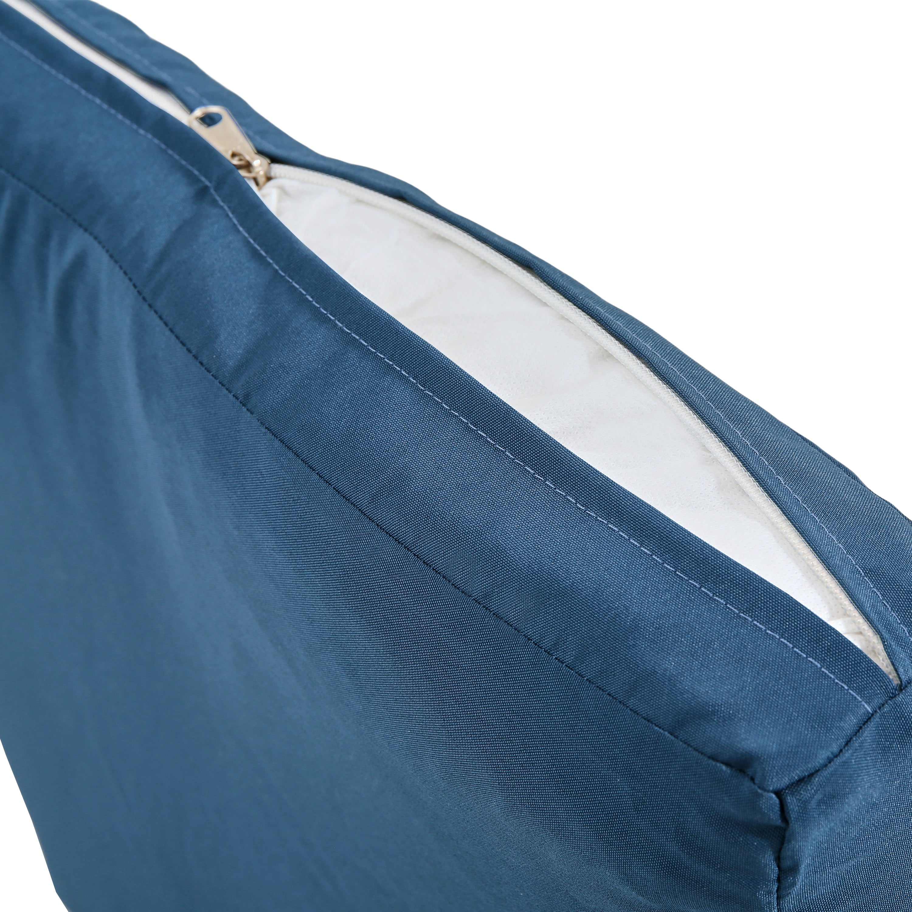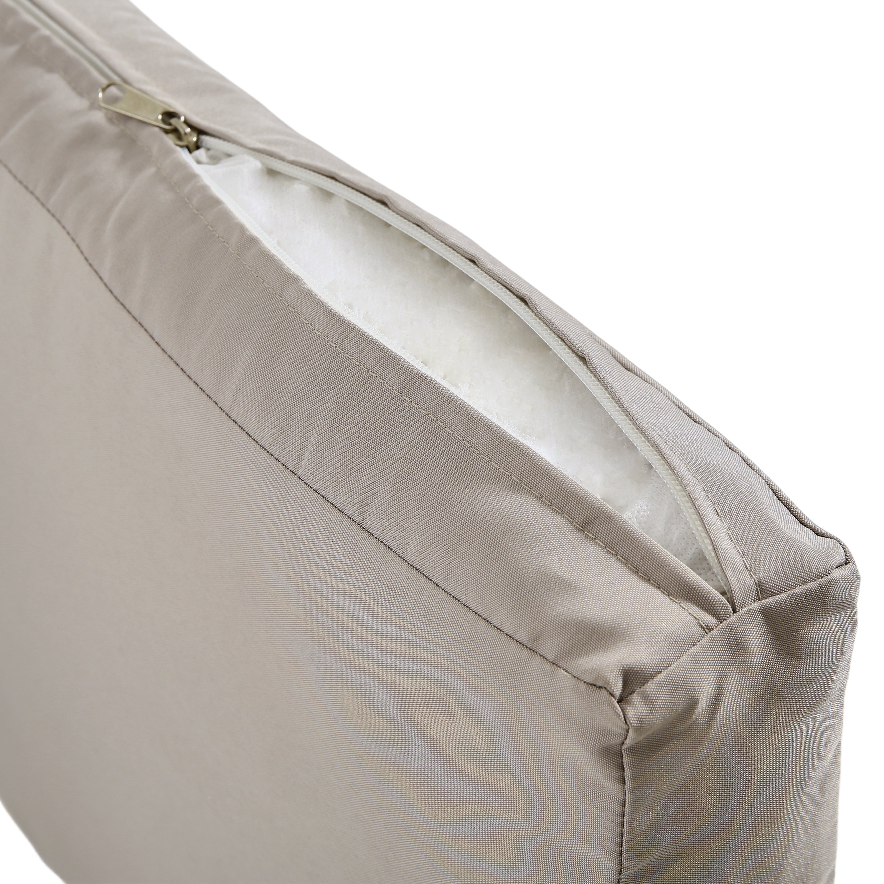Splash-resistant cotton-blend cushion cover provides comfort and wipes clean easily.
