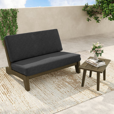 2-piece set pairs a seamless loveseat with a teak side table for an easy nook.