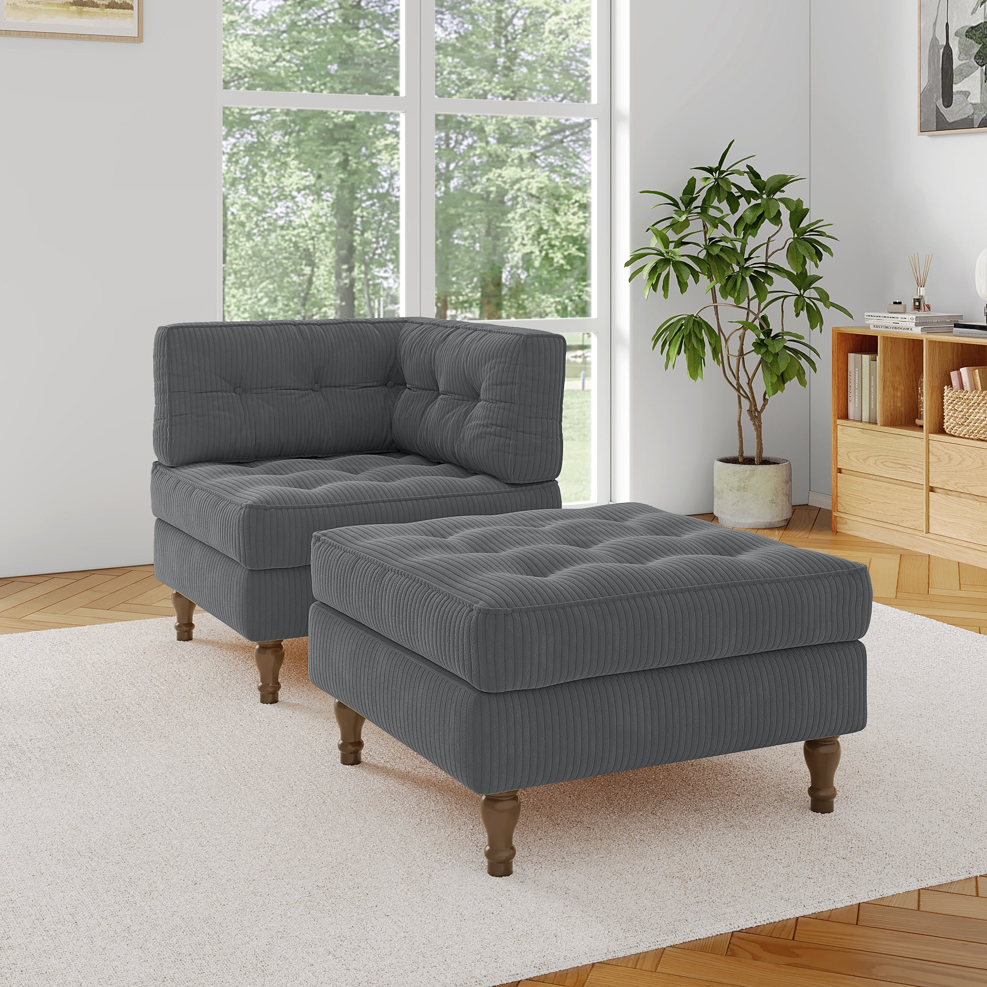 Elico Button Tufted Corduroy Chaise Lounge with Ottoman