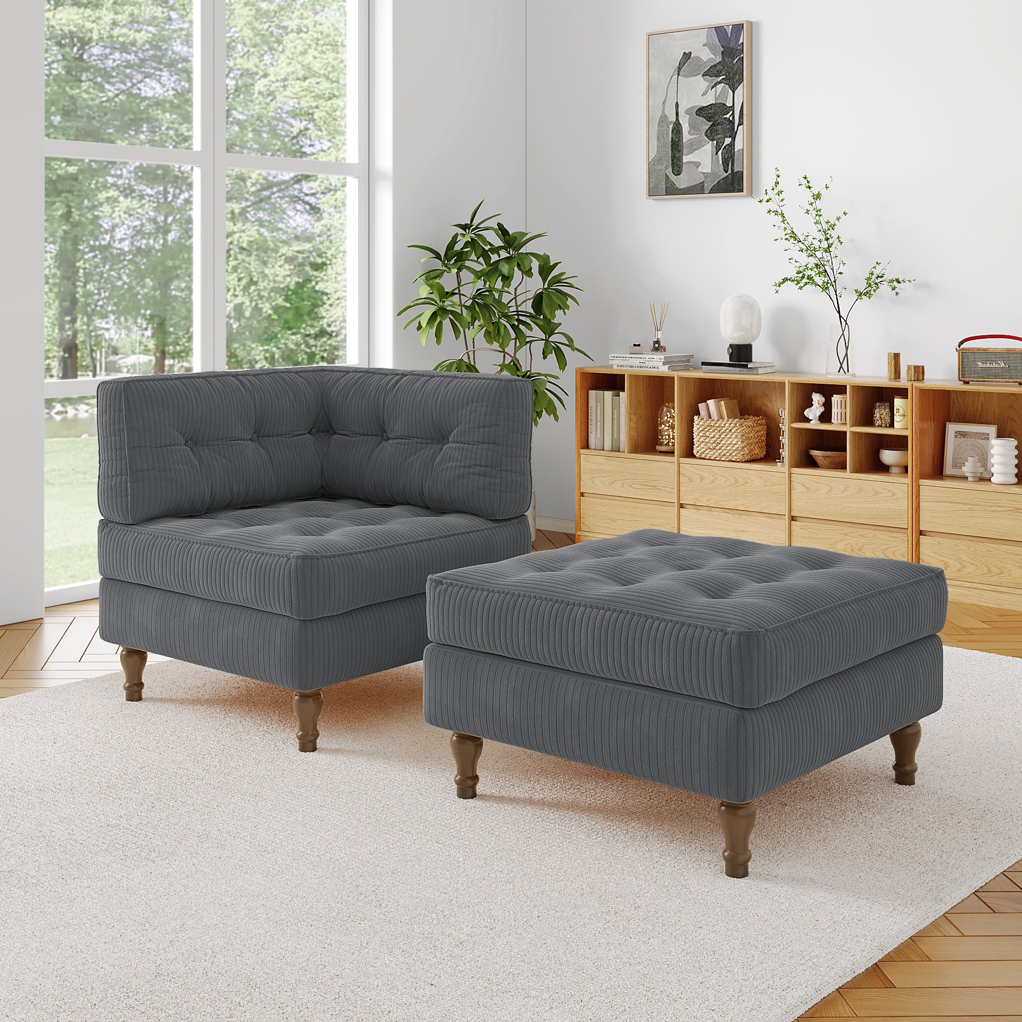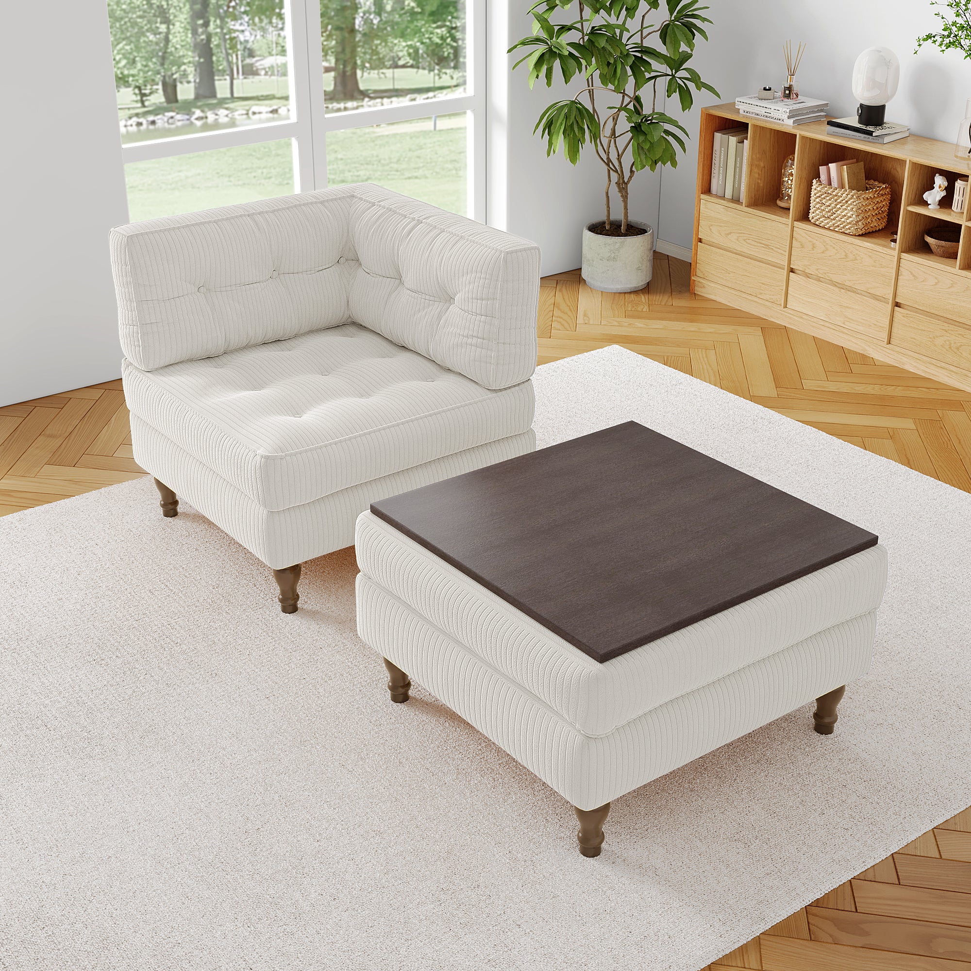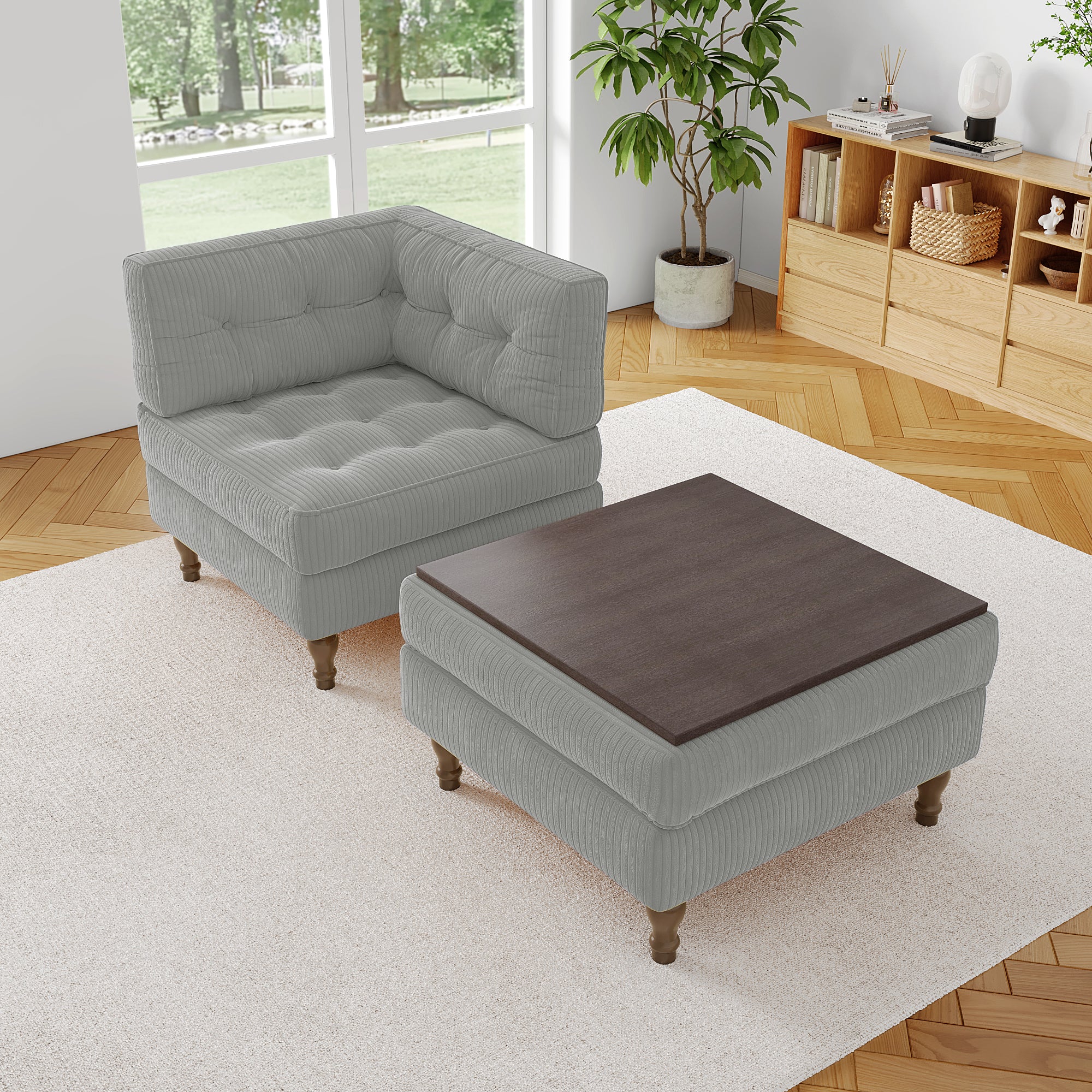 ¡¤ Includes one single-arm corner chair and one storage ottoman with reversible lid