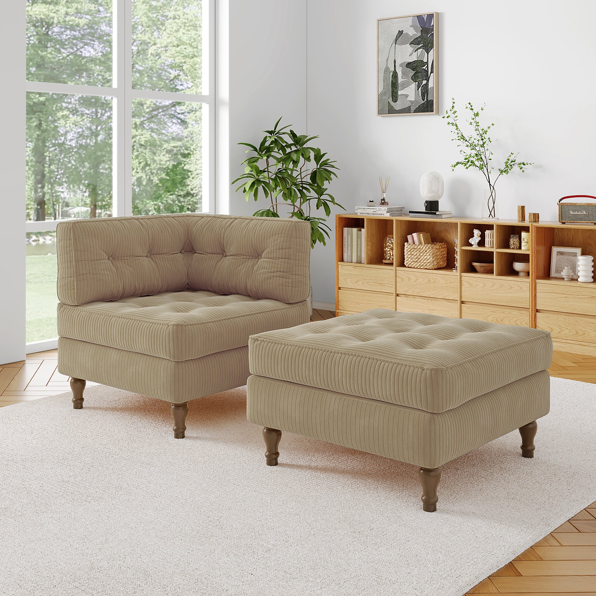 SKU: CS0013-BEIGE-ARMCHAIR+OTTOMAN