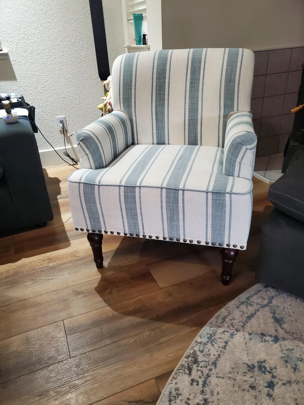 Amaryn Farmhouse Fabric Upholstered Armchair with Stripes