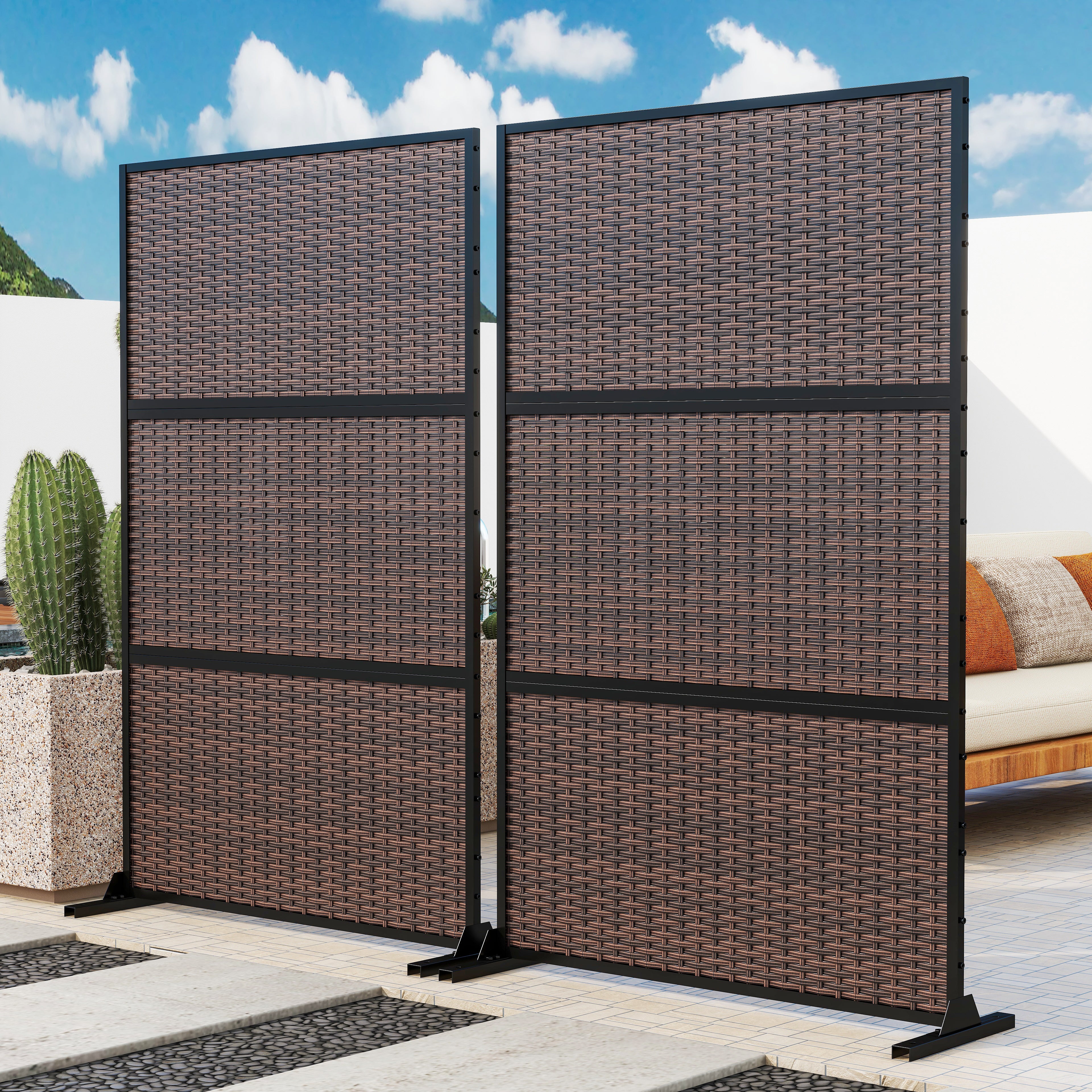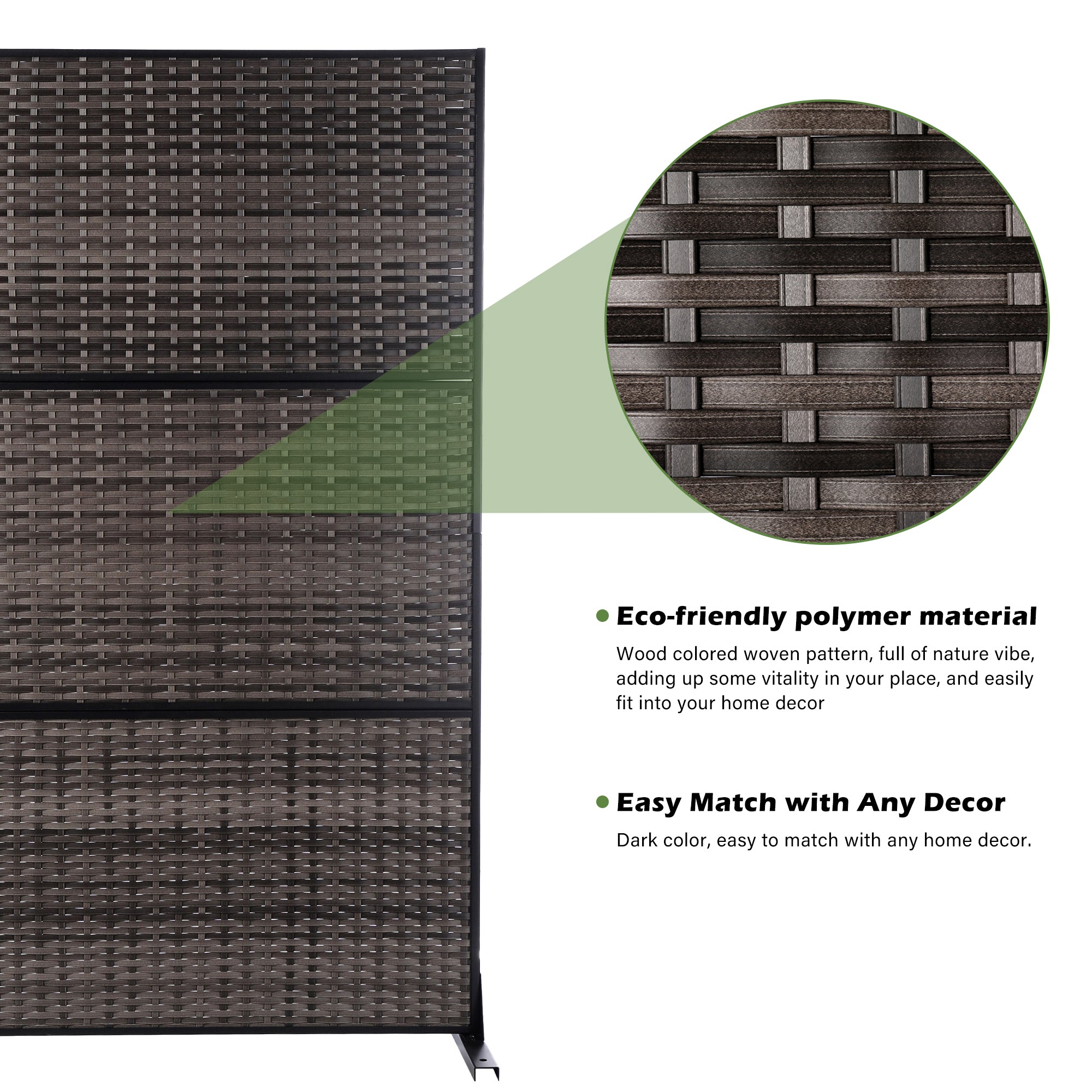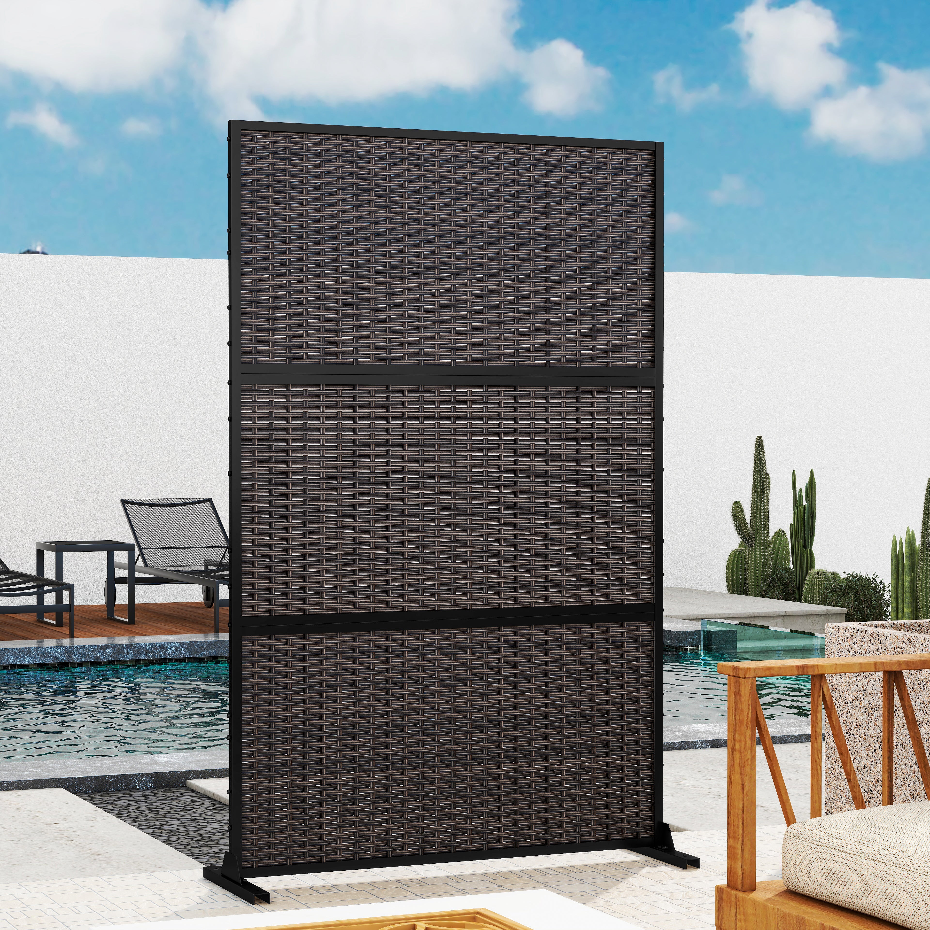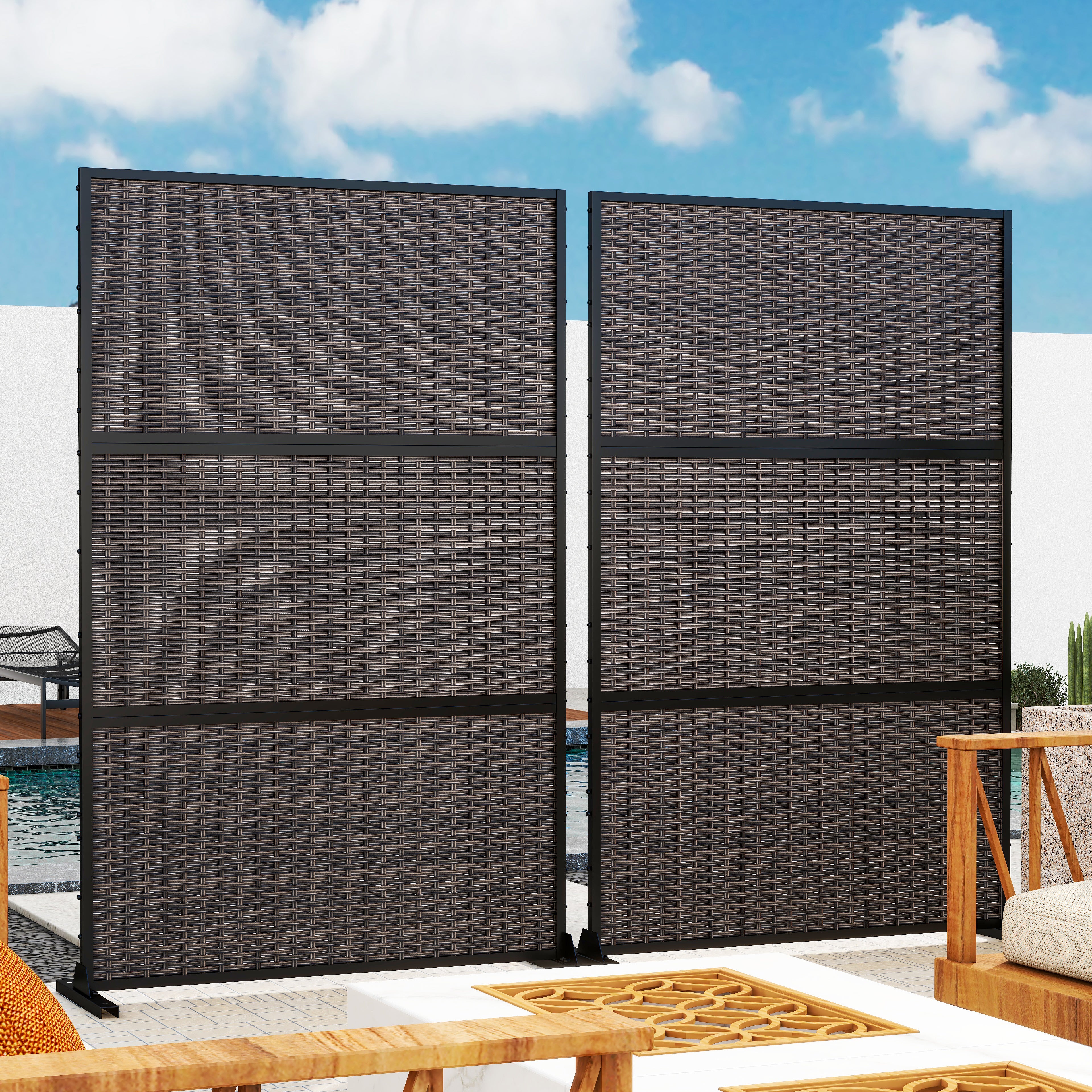 Give your balcony, patio, or yard a natural-feeling buffer with our Ariom 6 ft H x 4 ft W Woven Polymer Outdoor Privacy Screen. Three woven-look panels, crafted with a wicker-style technique, create a textured backdrop that nods to coastal fencing. The dark metal frame and feet keep each panel aligned and standing steady on hard surfaces. You can remove one or two panels to fit tighter corners or shorter runs. Durable polymer surfaces wipe clean, helping your privacy setup stay fresh through everyday outdoor use.