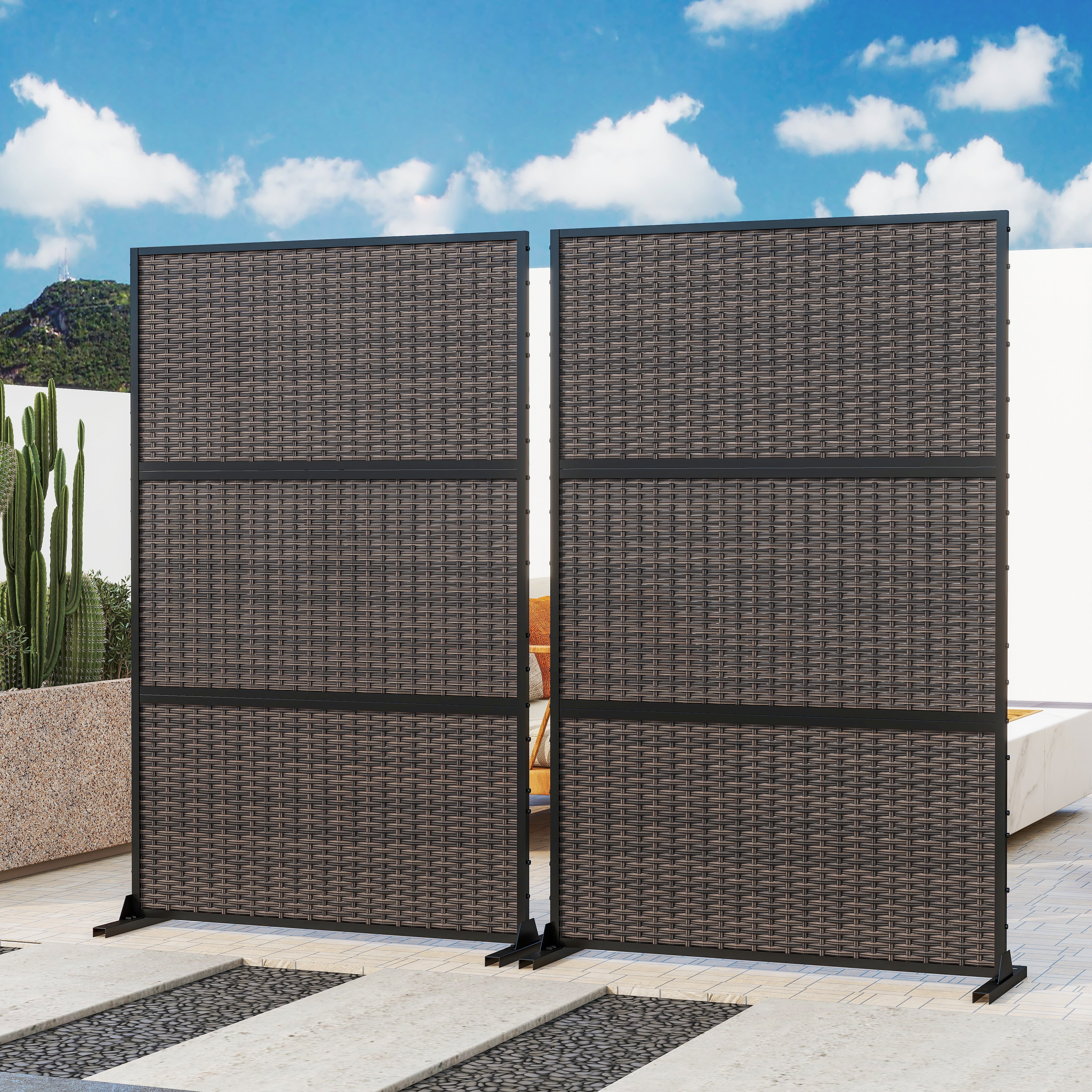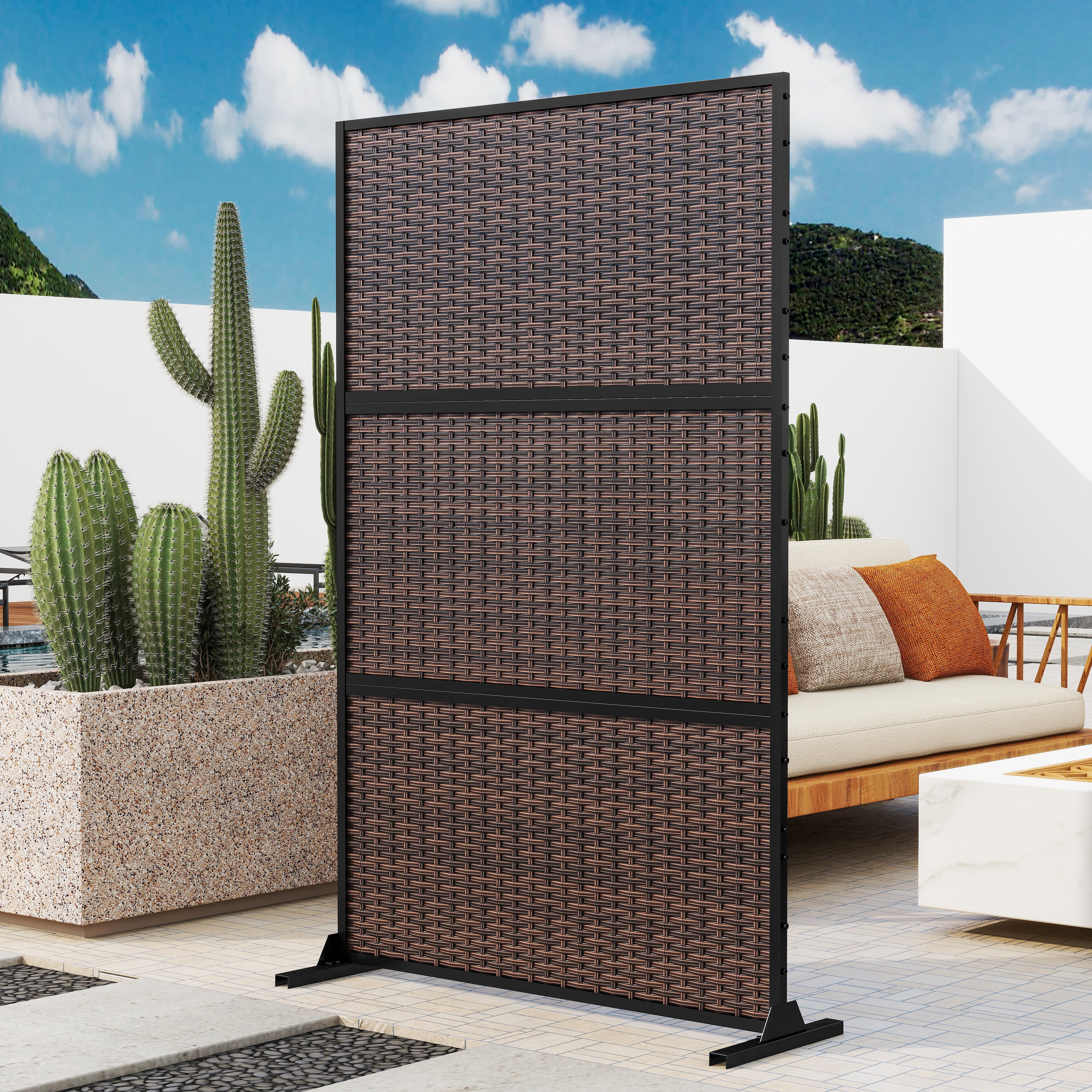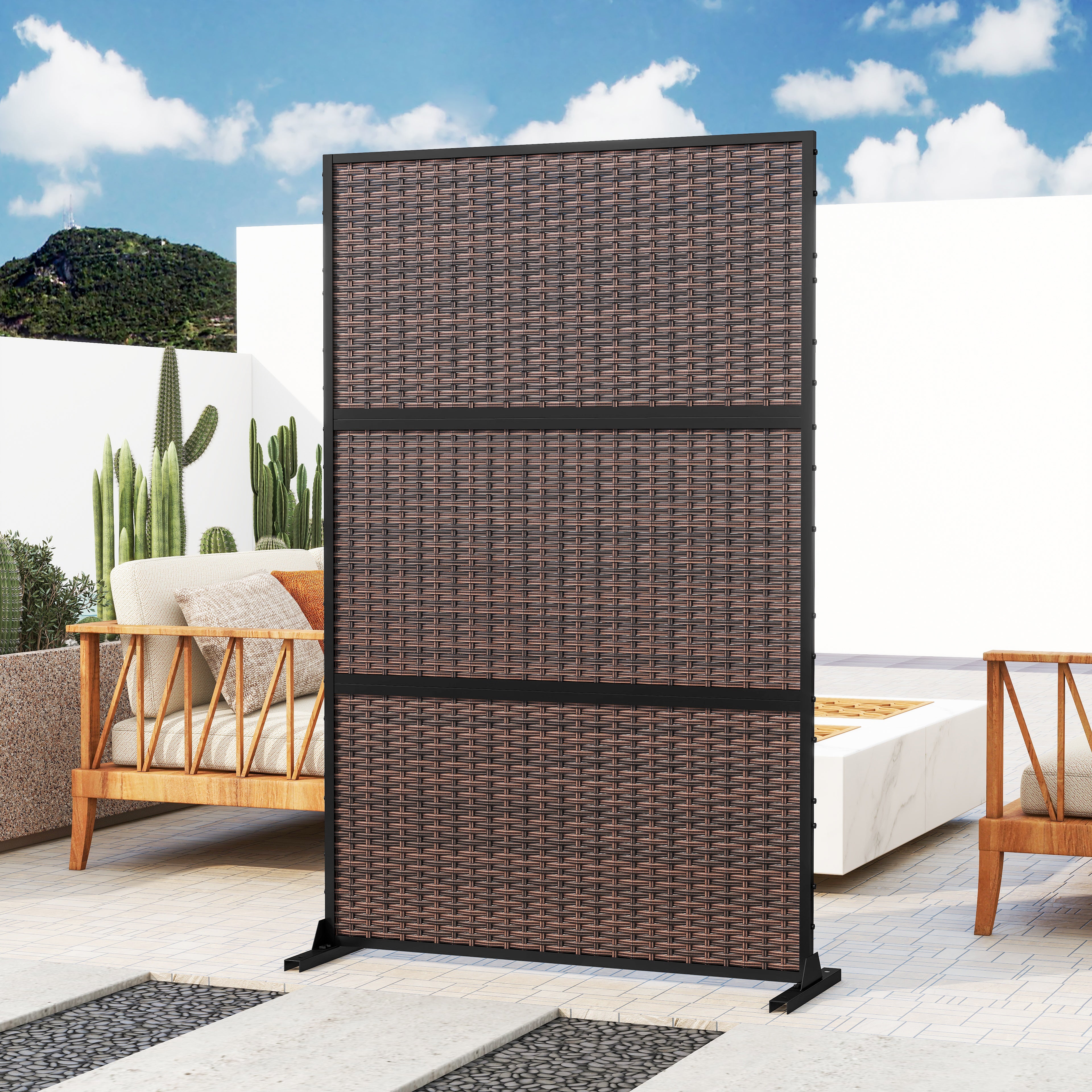 Give your balcony, patio, or yard a natural-feeling buffer with our Ariom 6 ft H x 4 ft W Woven Polymer Outdoor Privacy Screen. Three woven-look panels, crafted with a wicker-style technique, create a textured backdrop that nods to coastal fencing. The dark metal frame and feet keep each panel aligned and standing steady on hard surfaces. You can remove one or two panels to fit tighter corners or shorter runs. Durable polymer surfaces wipe clean, helping your privacy setup stay fresh through everyday outdoor use.