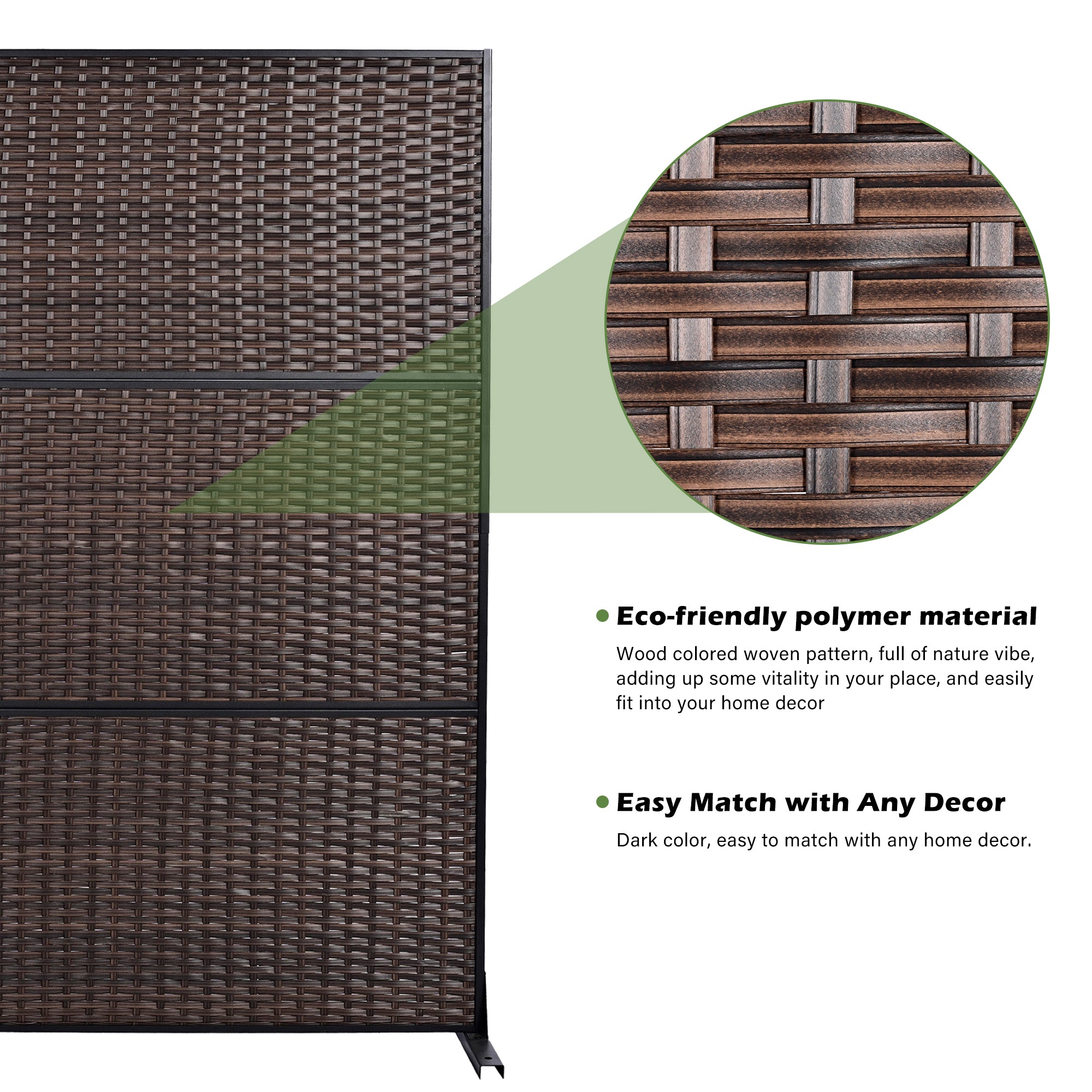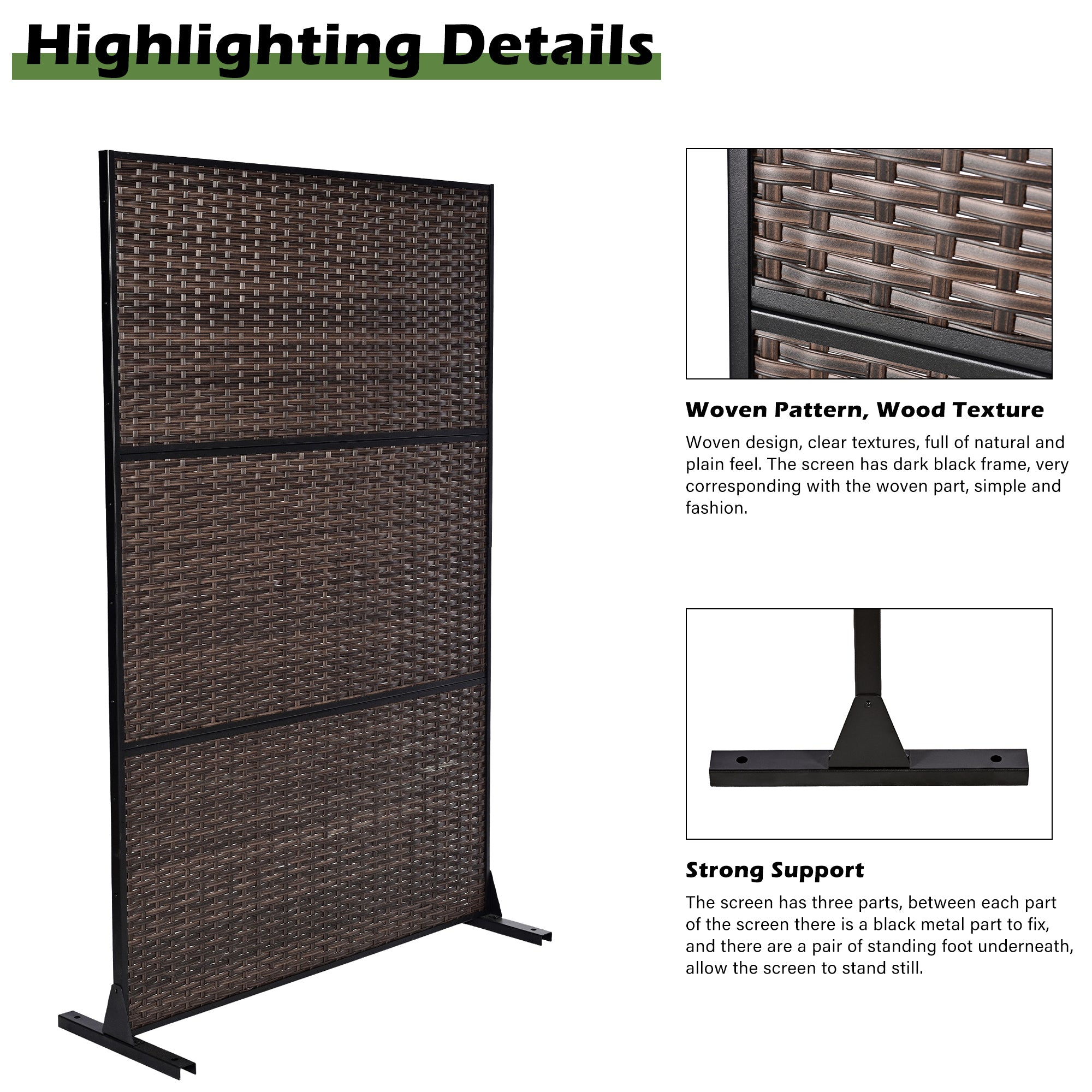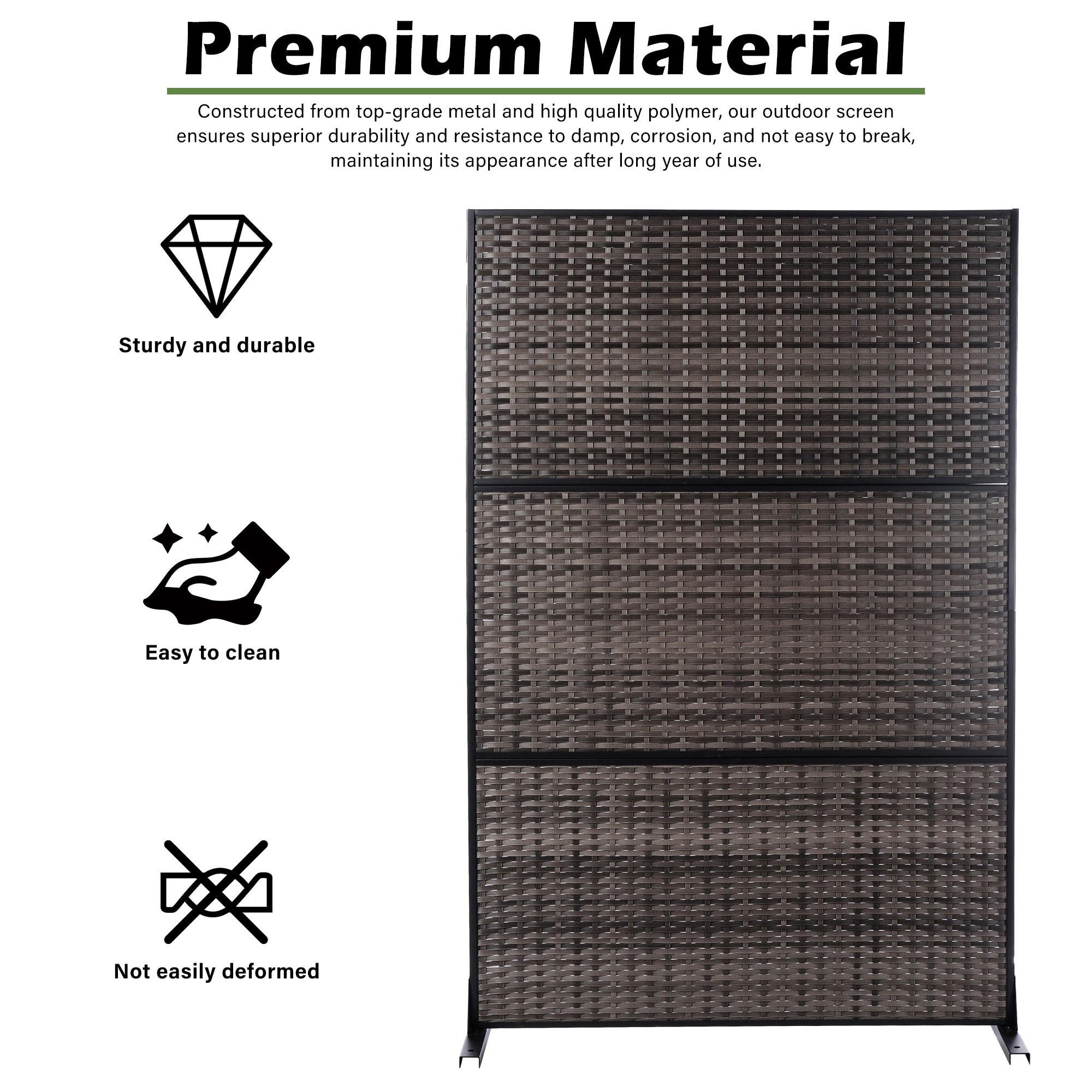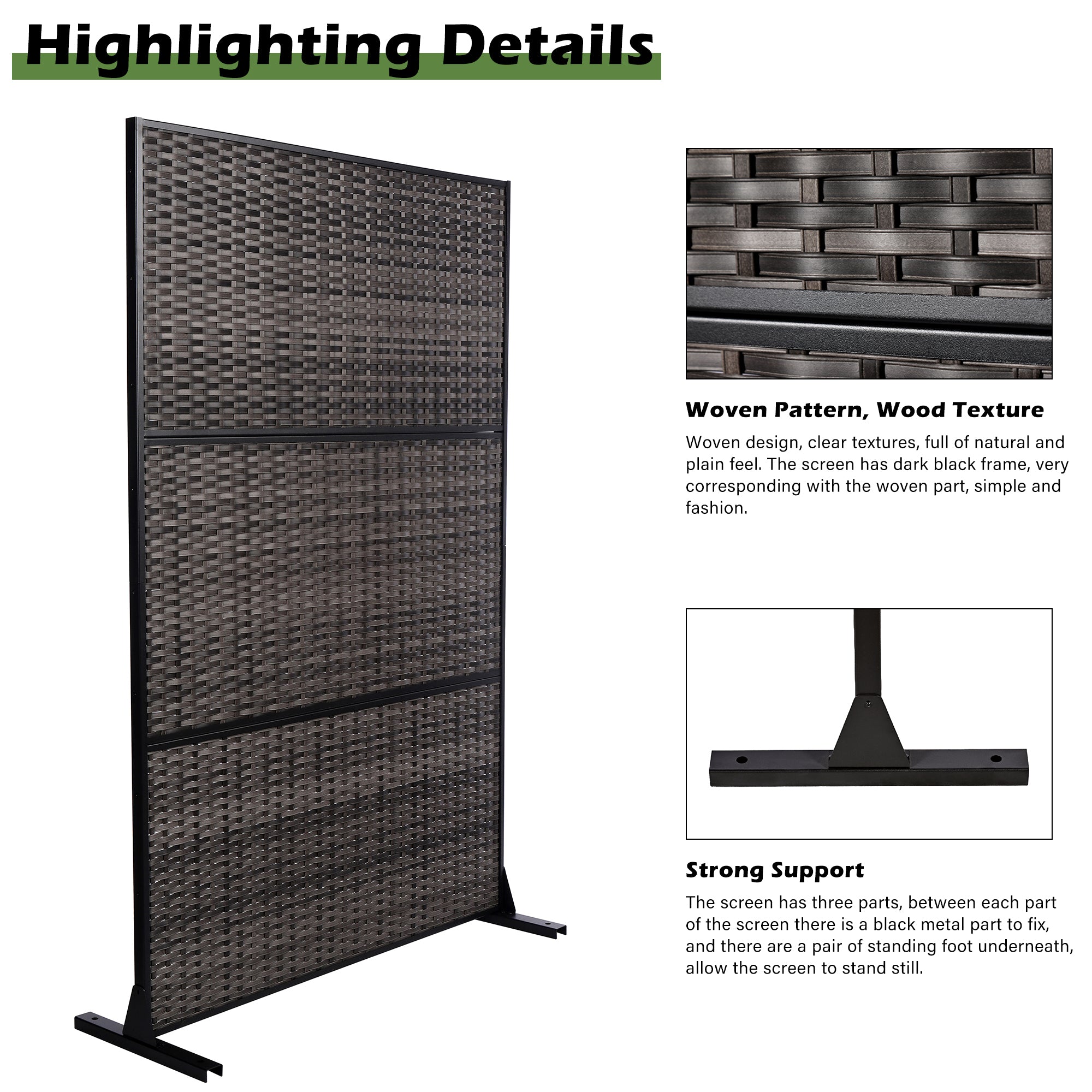 Give your balcony, patio, or yard a natural-feeling buffer with our Ariom 6 ft H x 4 ft W Woven Polymer Outdoor Privacy Screen. Three woven-look panels, crafted with a wicker-style technique, create a textured backdrop that nods to coastal fencing. The dark metal frame and feet keep each panel aligned and standing steady on hard surfaces. You can remove one or two panels to fit tighter corners or shorter runs. Durable polymer surfaces wipe clean, helping your privacy setup stay fresh through everyday outdoor use.