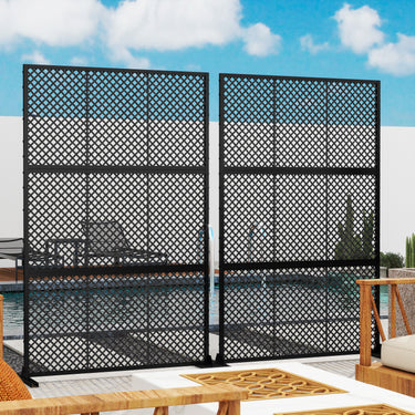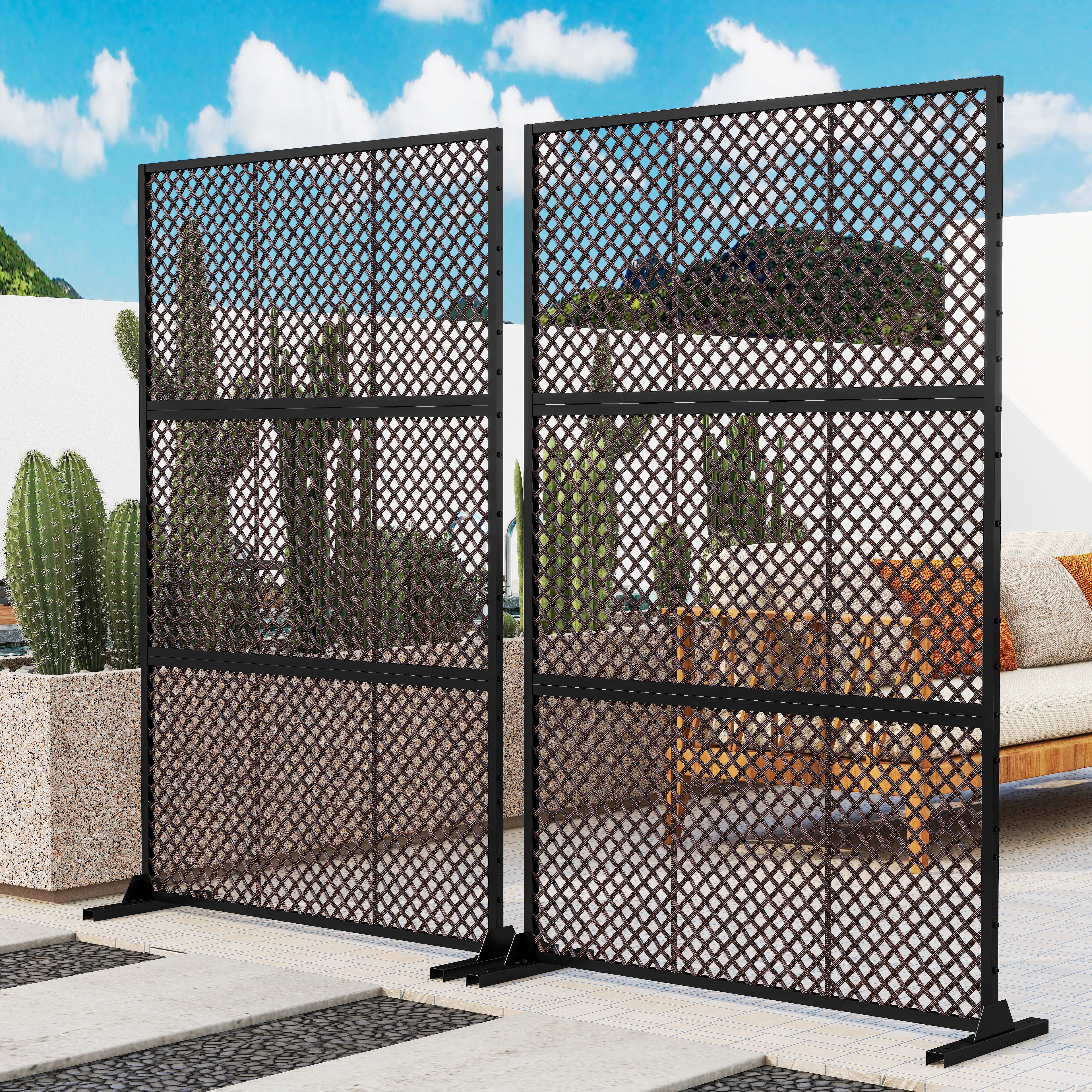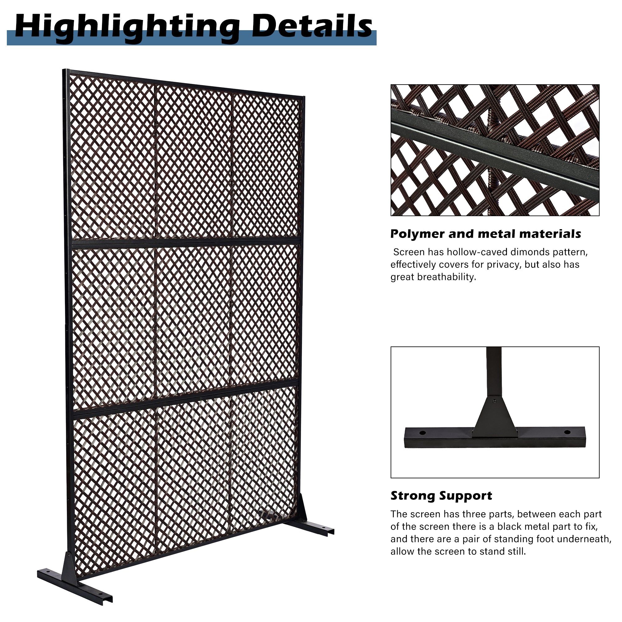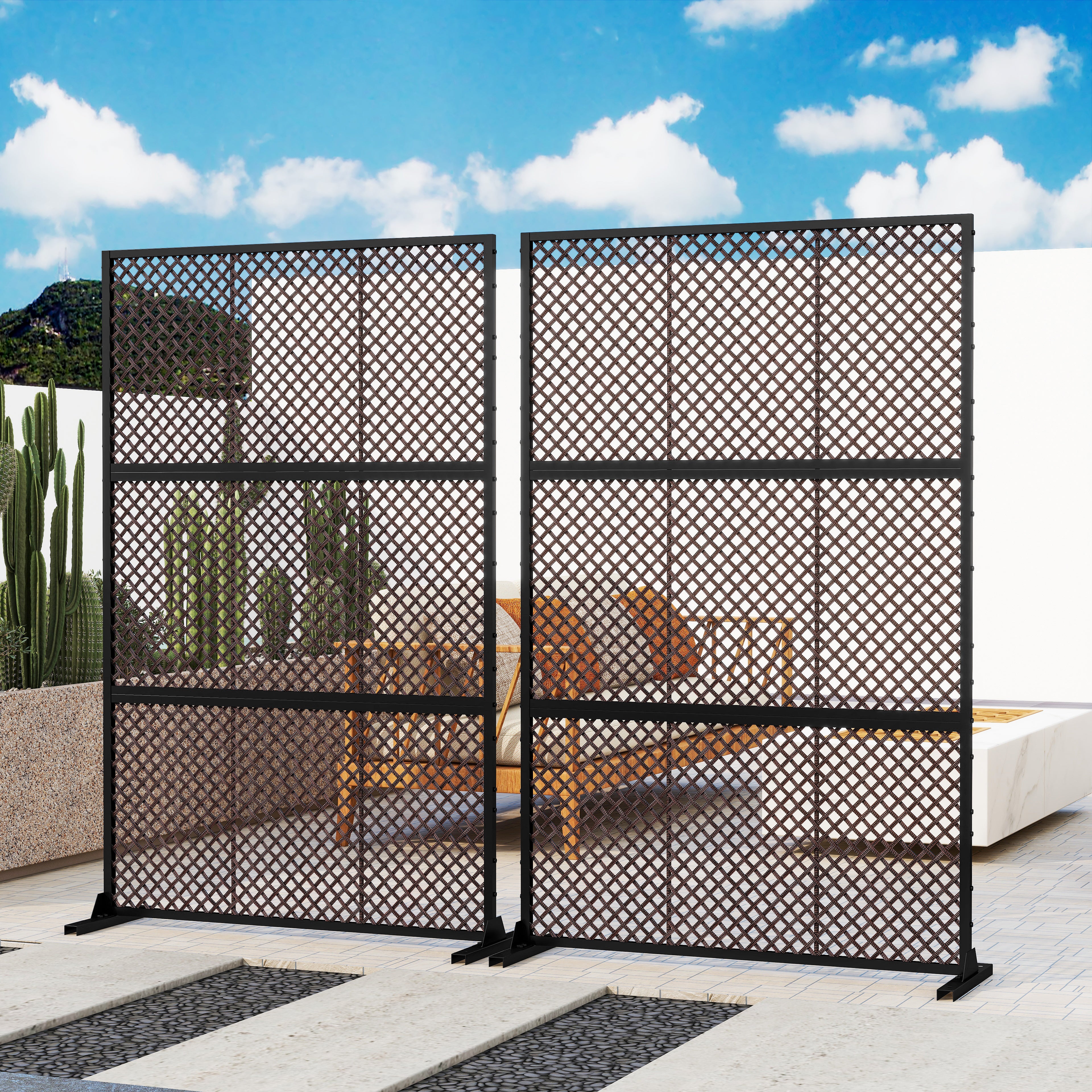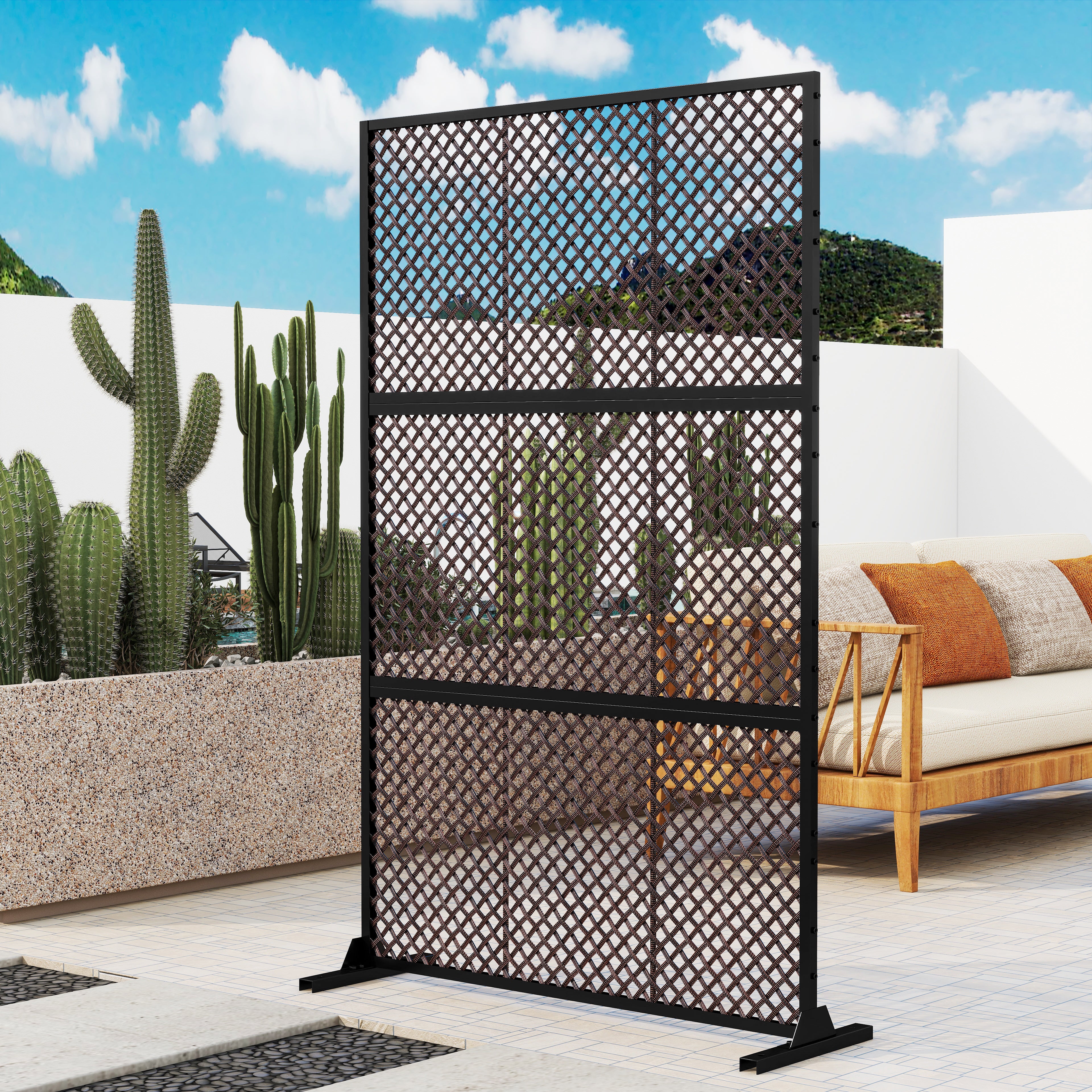 Shape a more private, still open-air corner for your patio with our Catol 6 ft H x 4 ft W Woven Lattice Outdoor Privacy Screen. Three tall panels are filled with a geometric lattice of small diamond cutouts, giving you a refined pattern that softens views without fully blocking light or breezes. A slim black metal frame and sturdy feet help the screen stand steady along decks, balconies, and garden seating areas. You can remove one or two panels to fit shorter runs or different ground conditions. With durable plastic lattice that wipes clean, this outdoor privacy screen works as both a room divider and a modern outdoor backdrop.