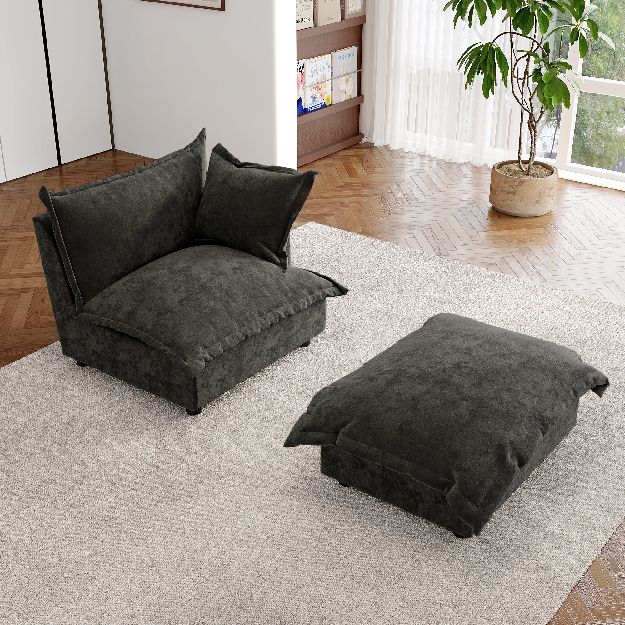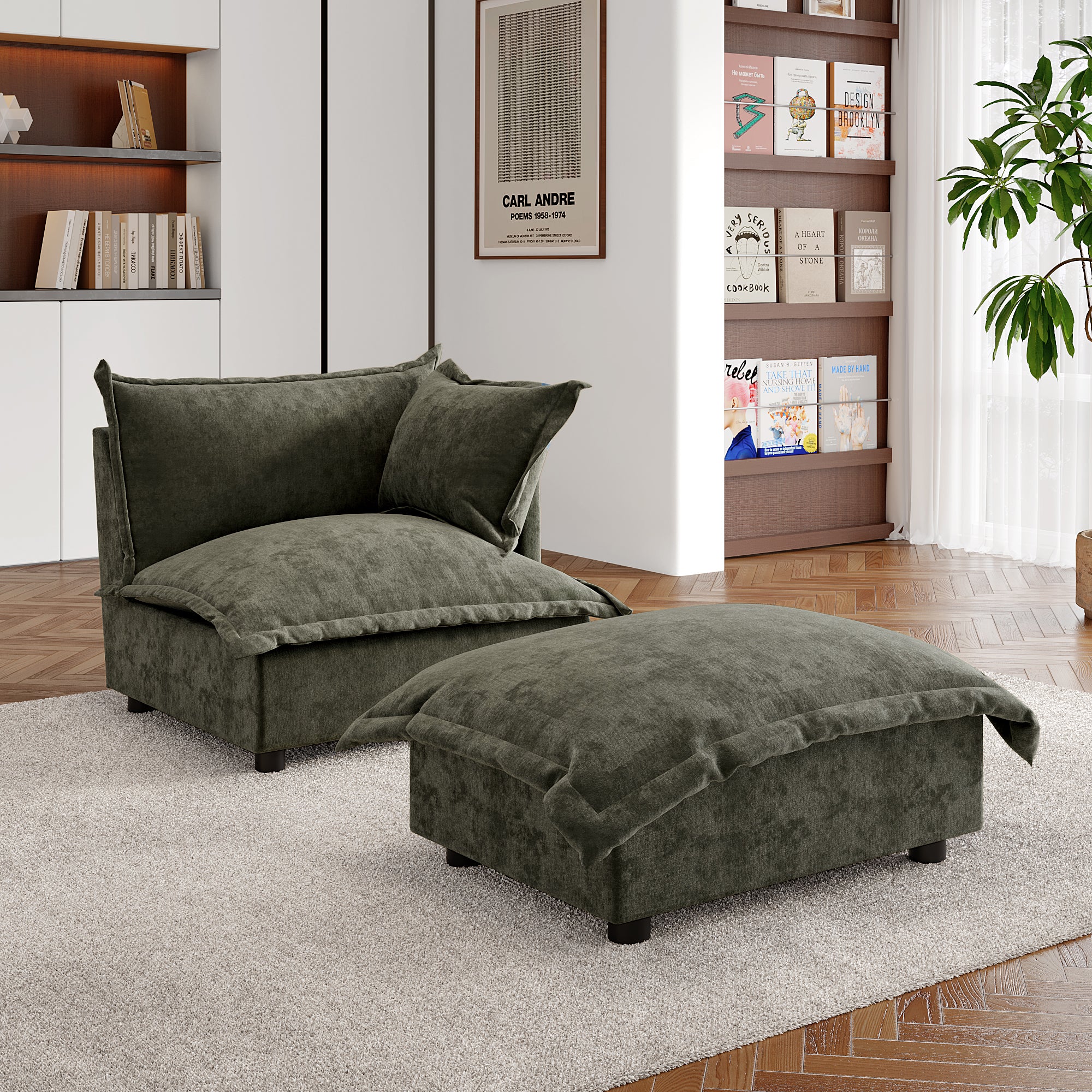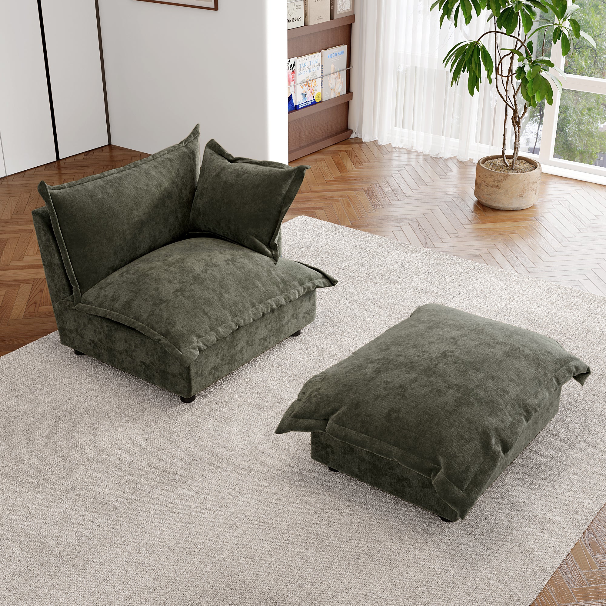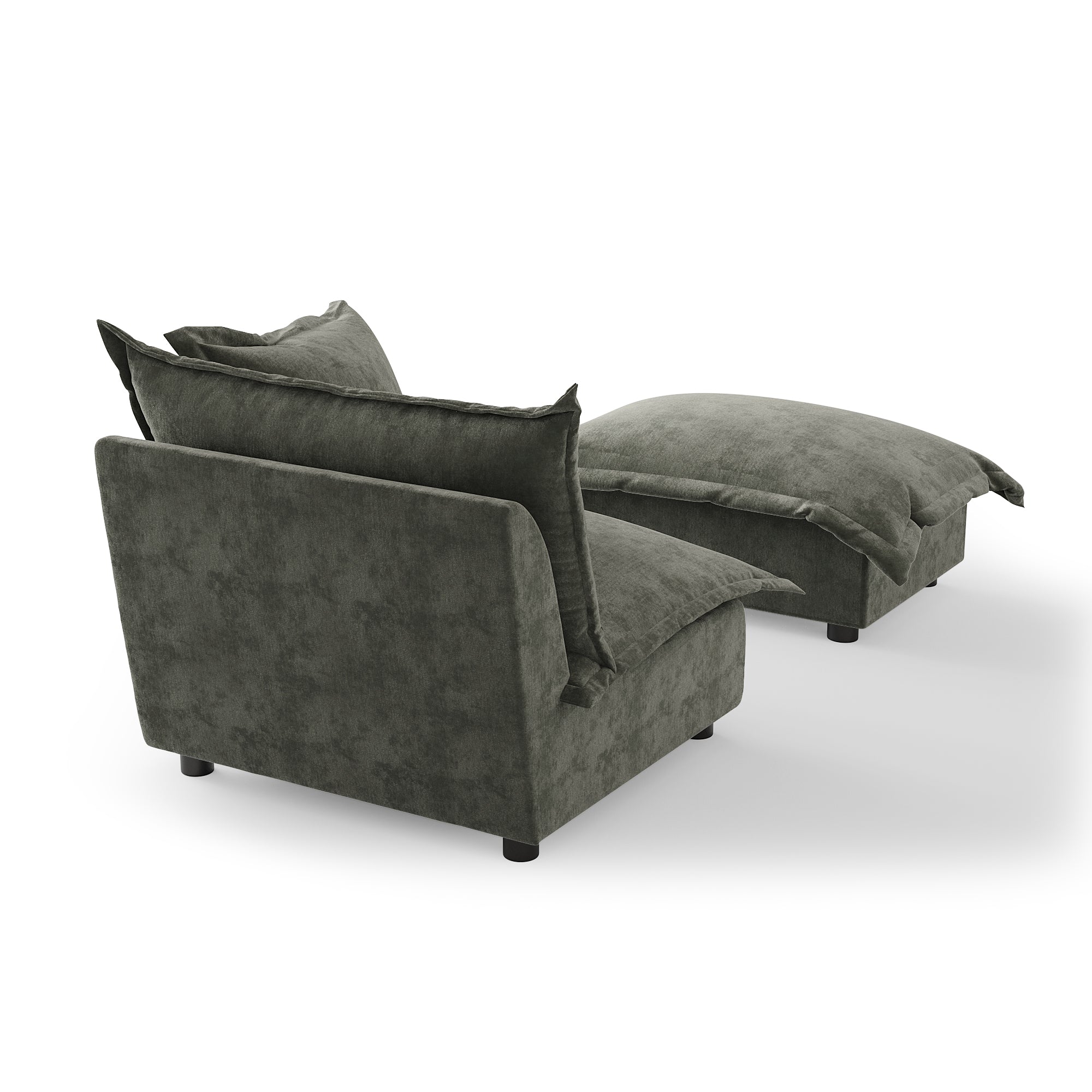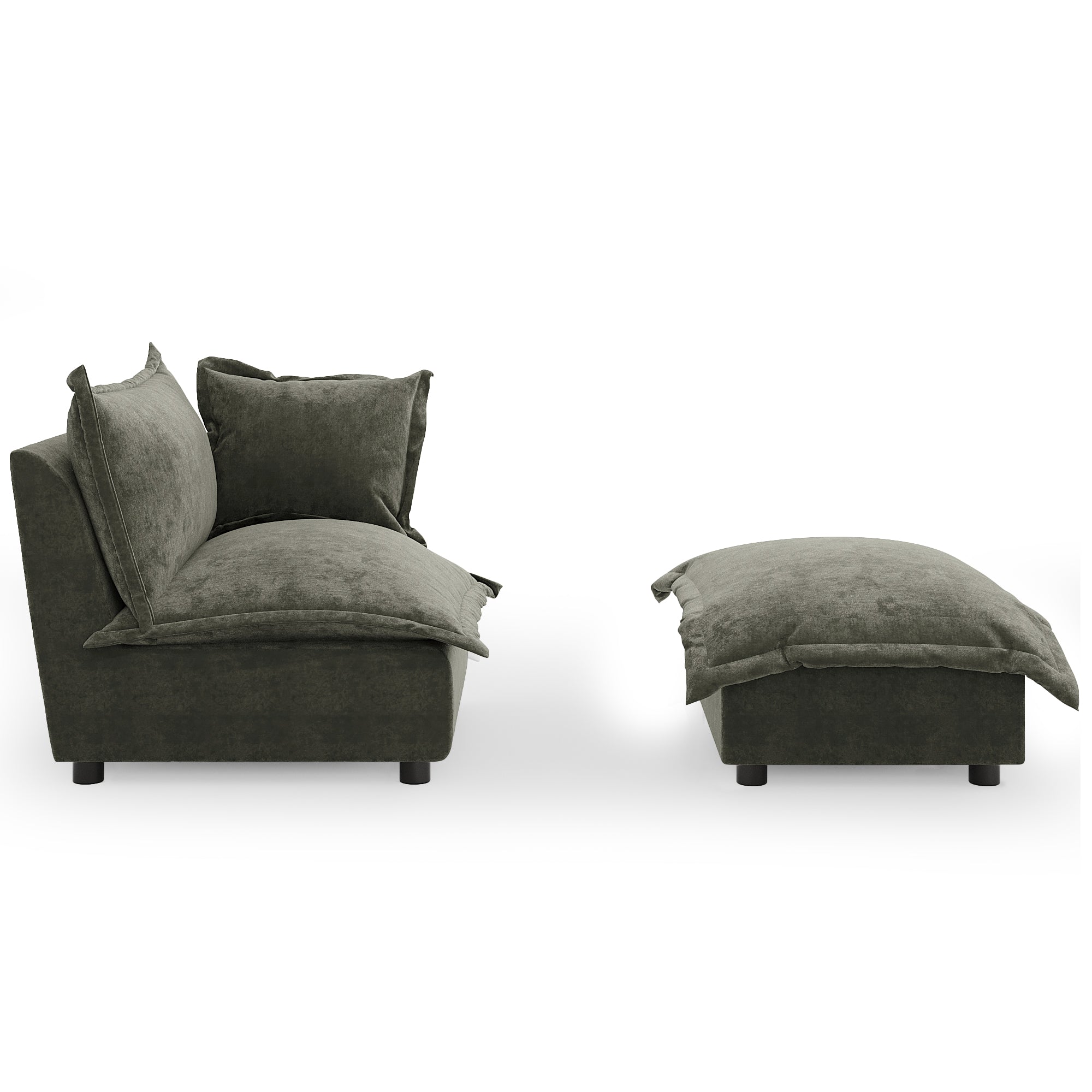 Emre Flange Edge Chenille Corner Chair with Ottoman