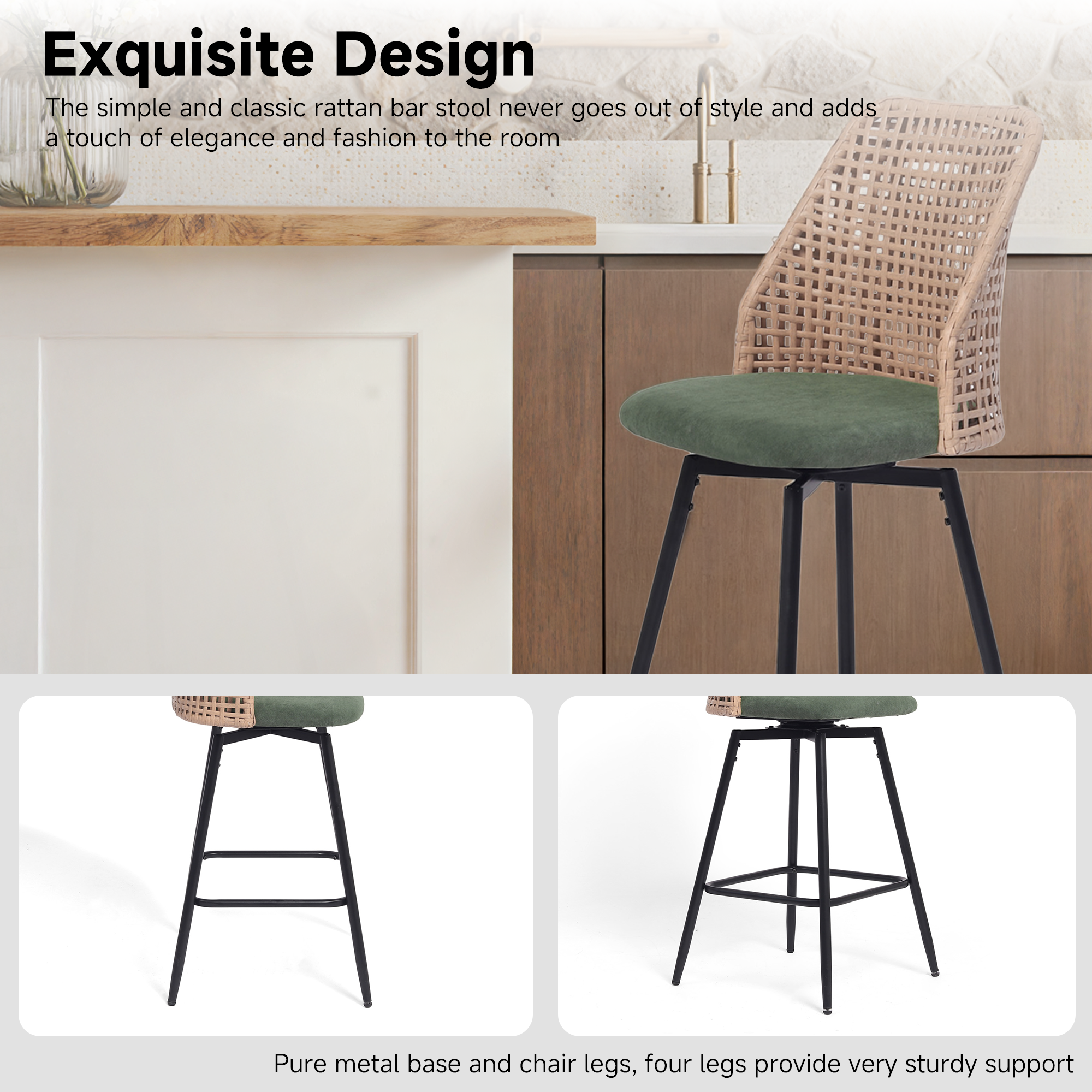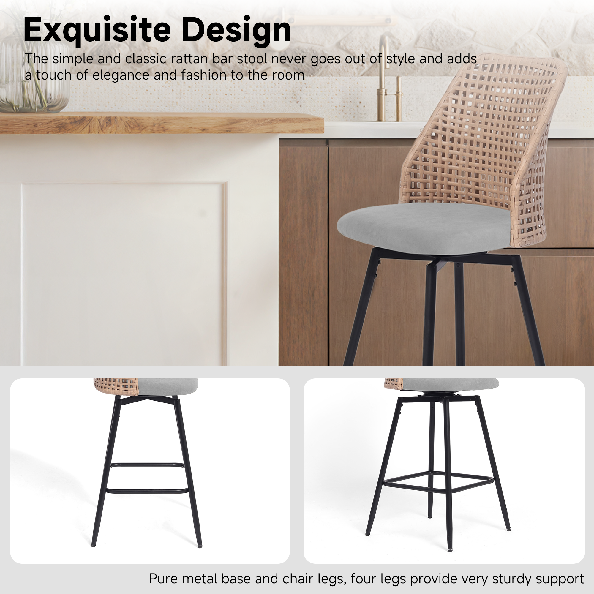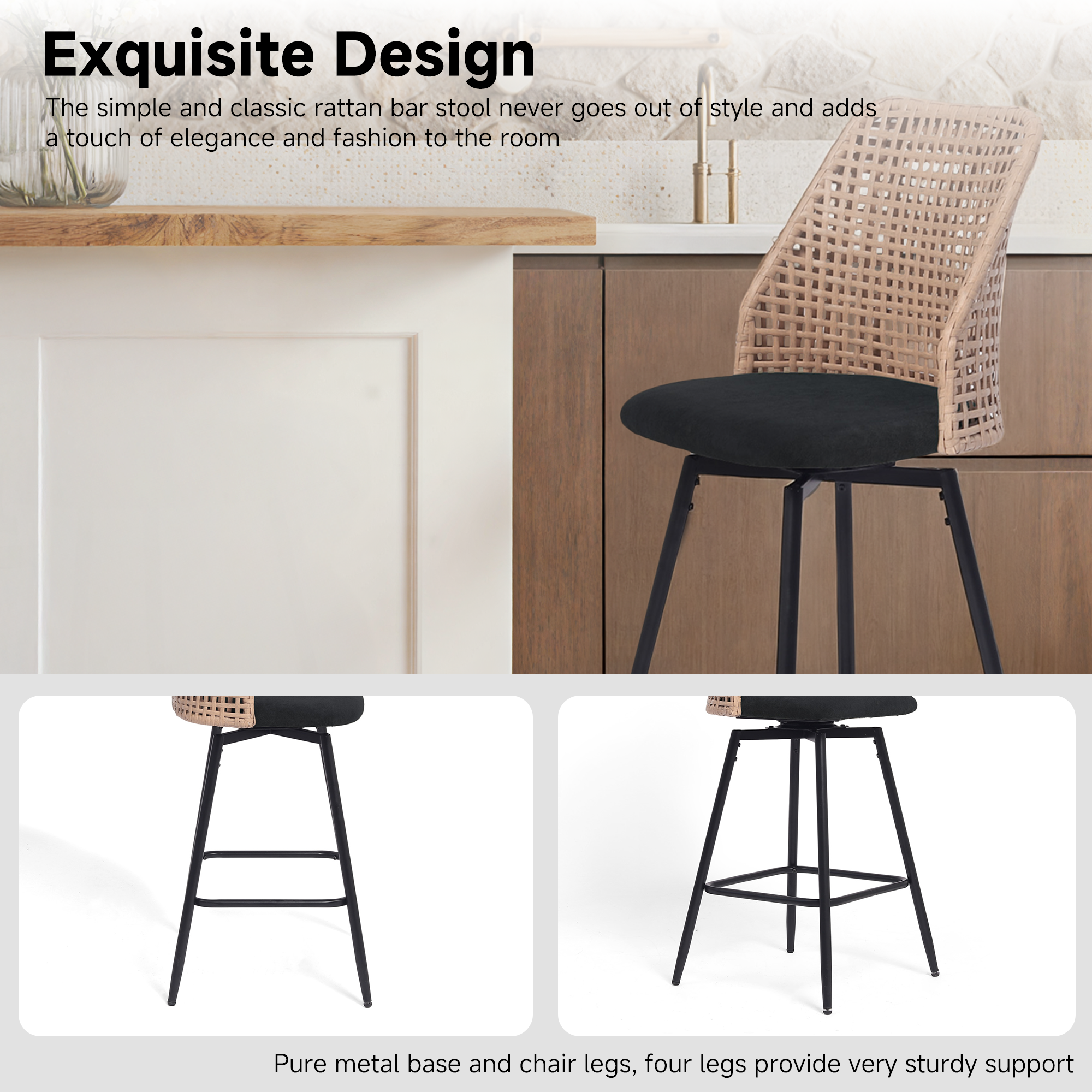 ¡¤ Slim metal legs with a square footrest provide everyday stability without adding visual heaviness to the base