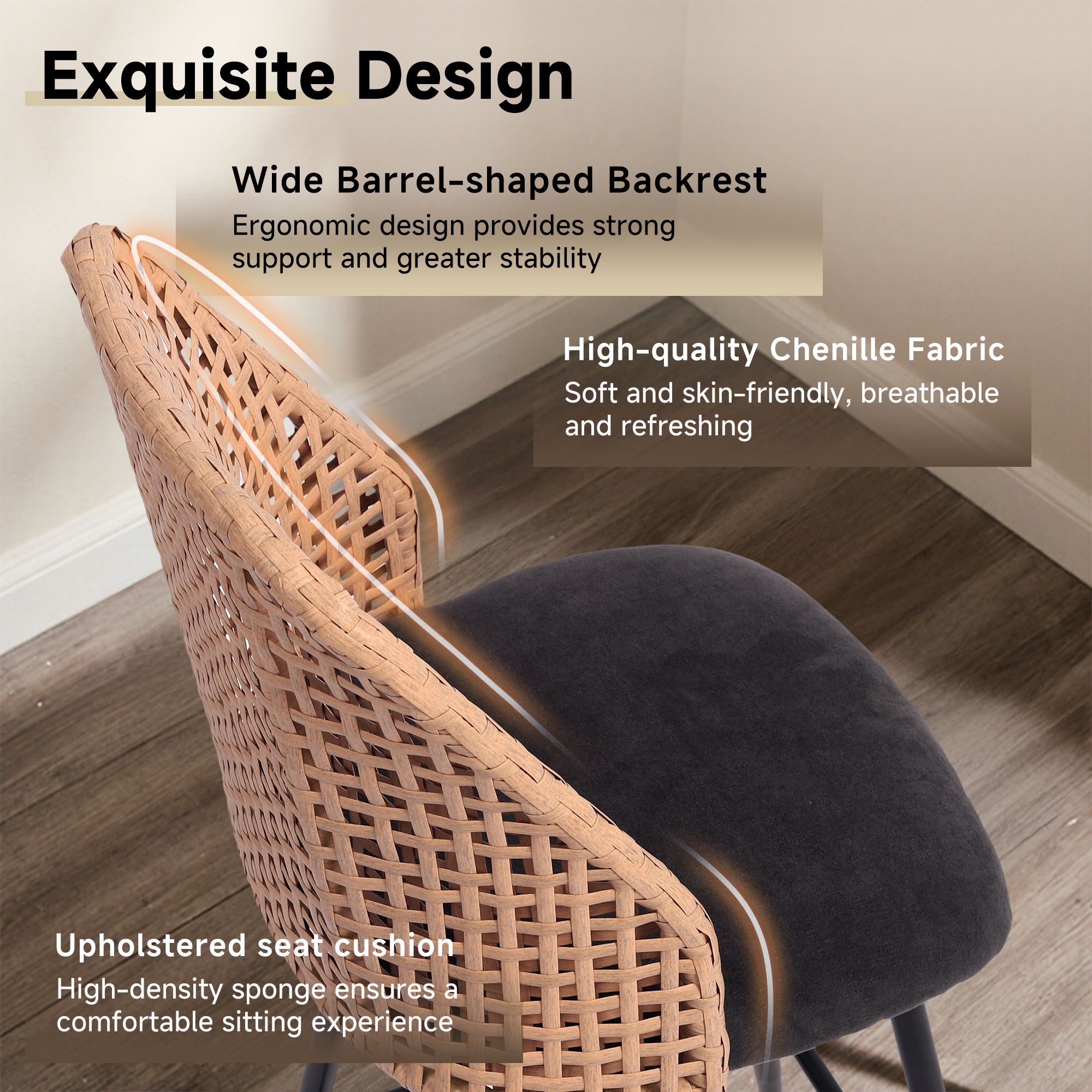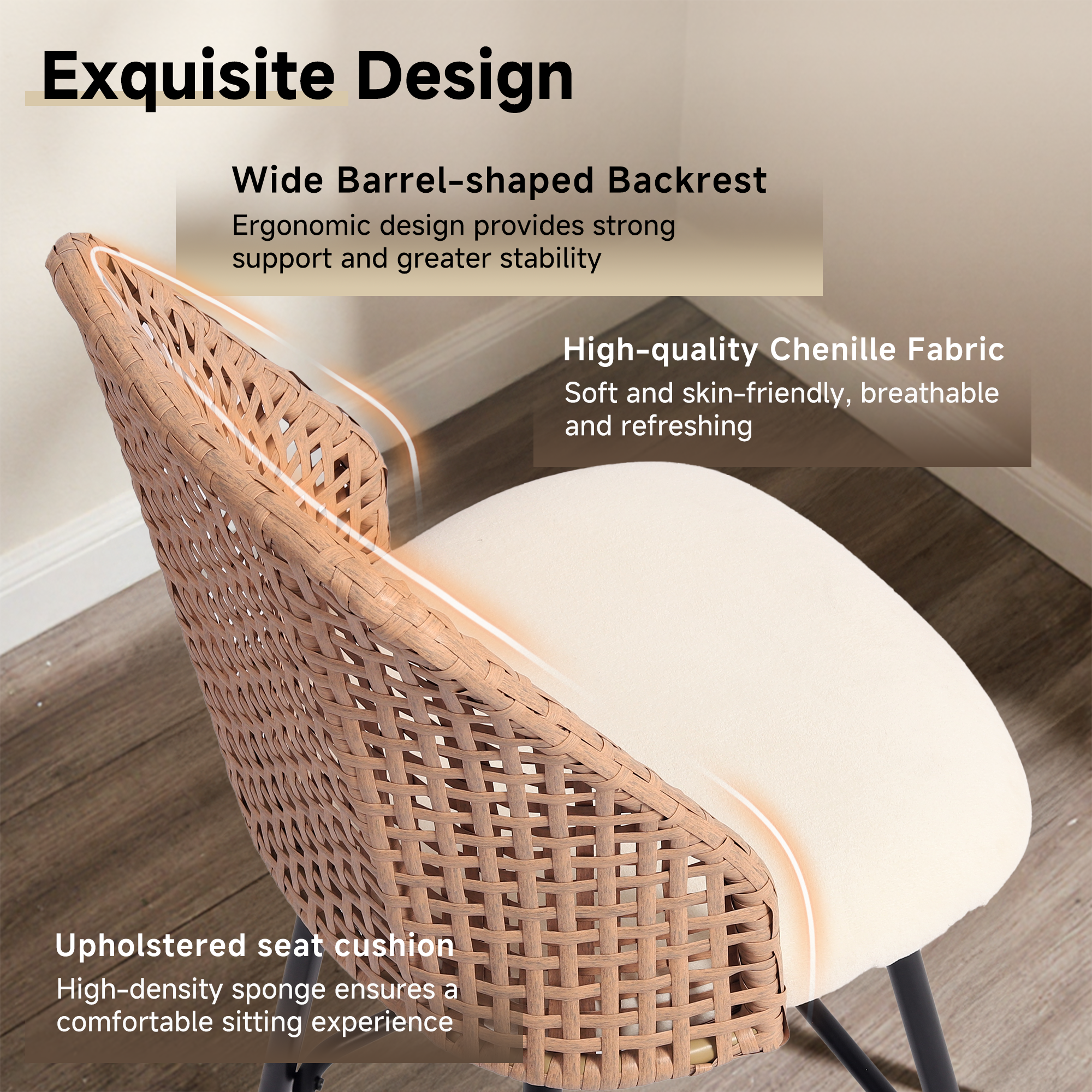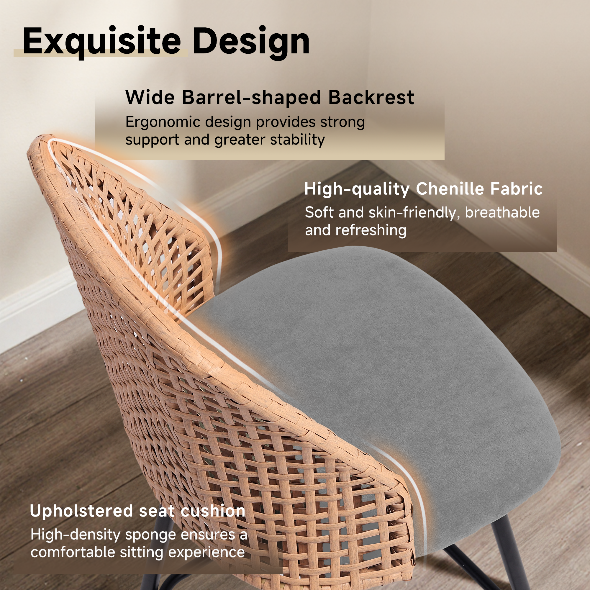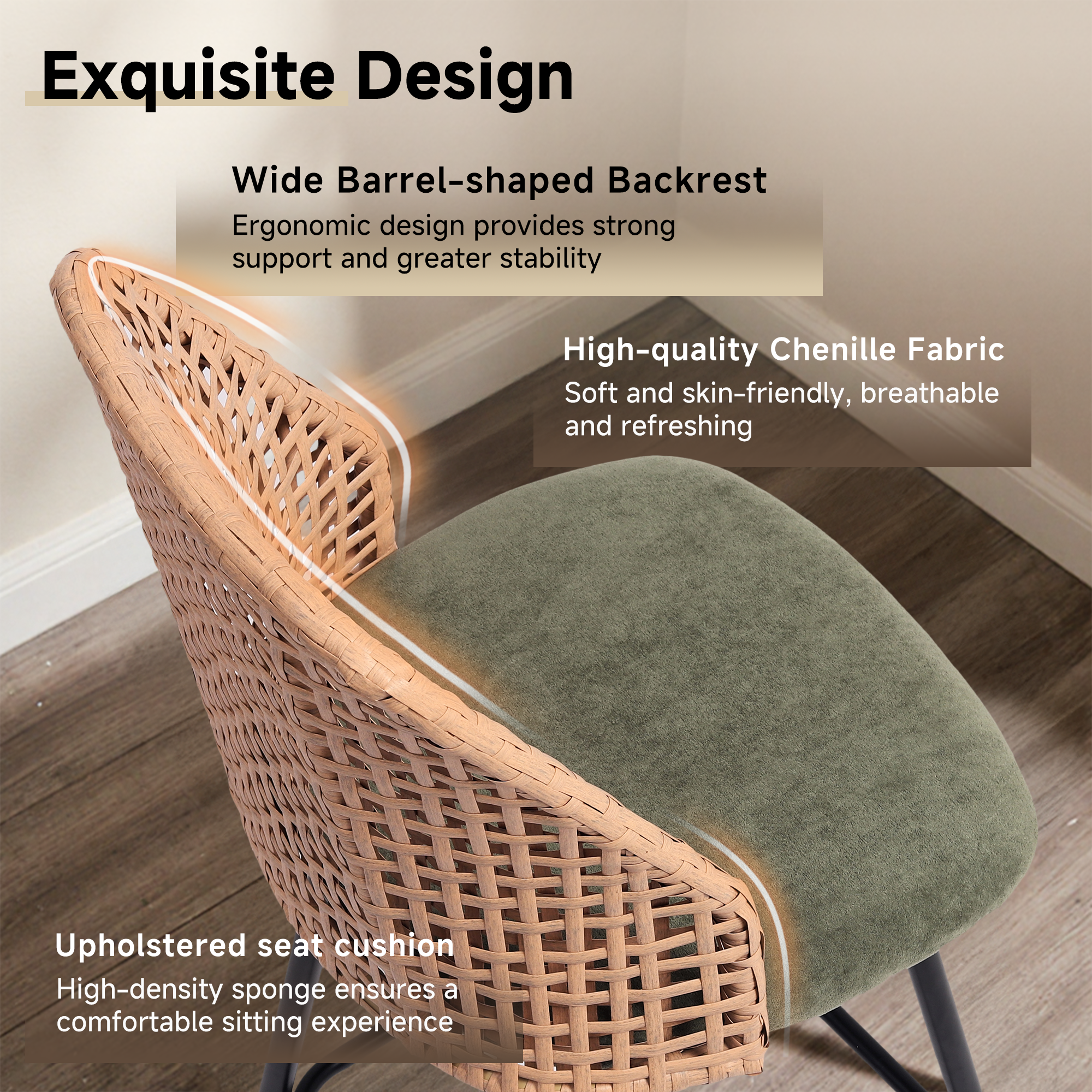 ¡¤ Slim metal legs with a square footrest provide everyday stability without adding visual heaviness to the base
