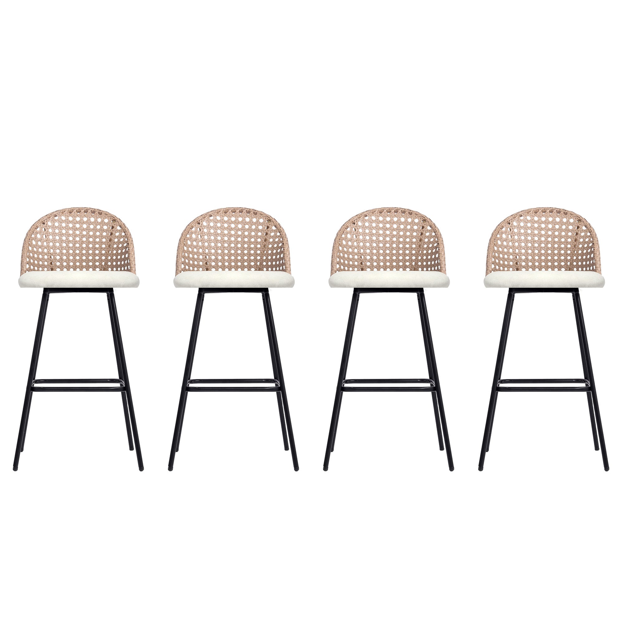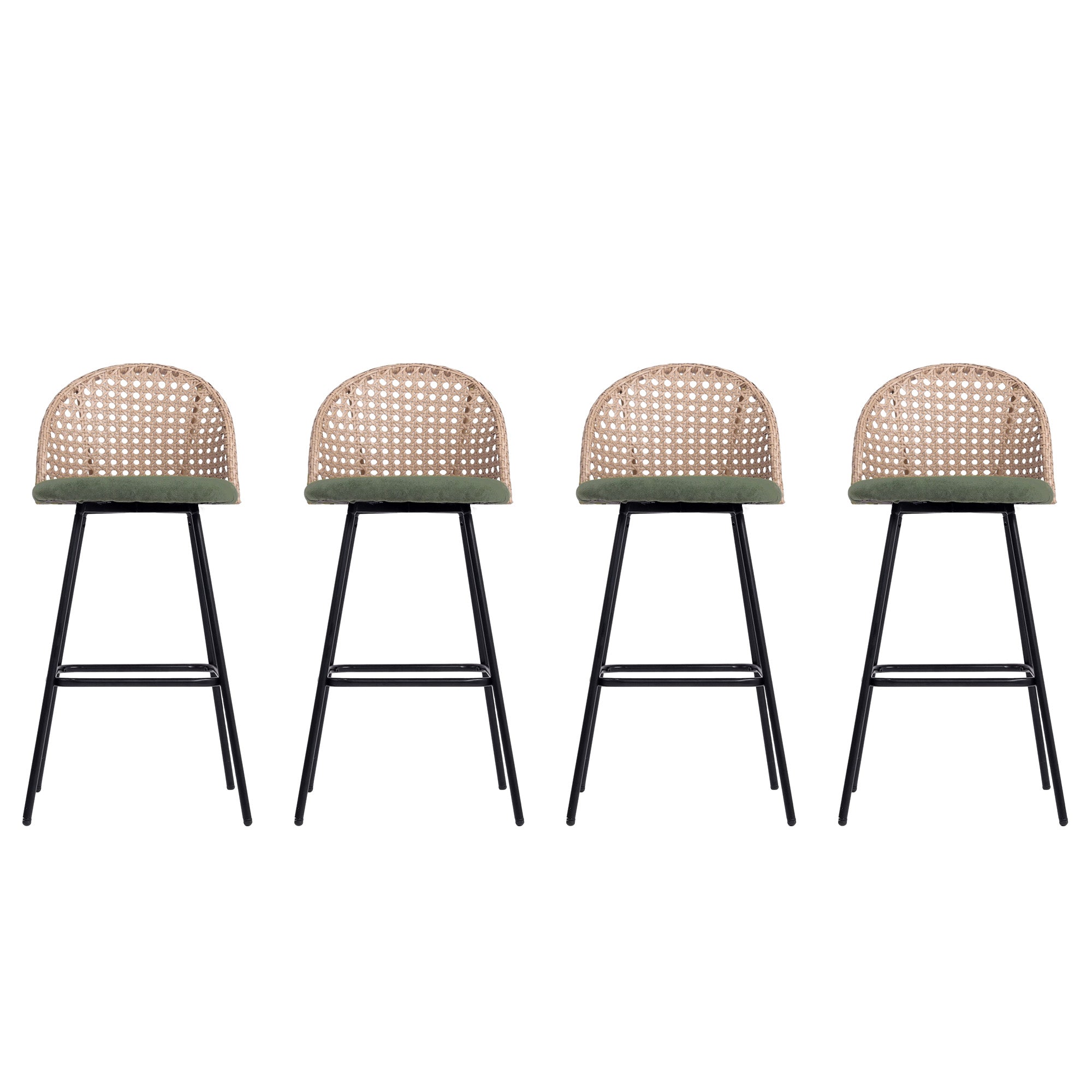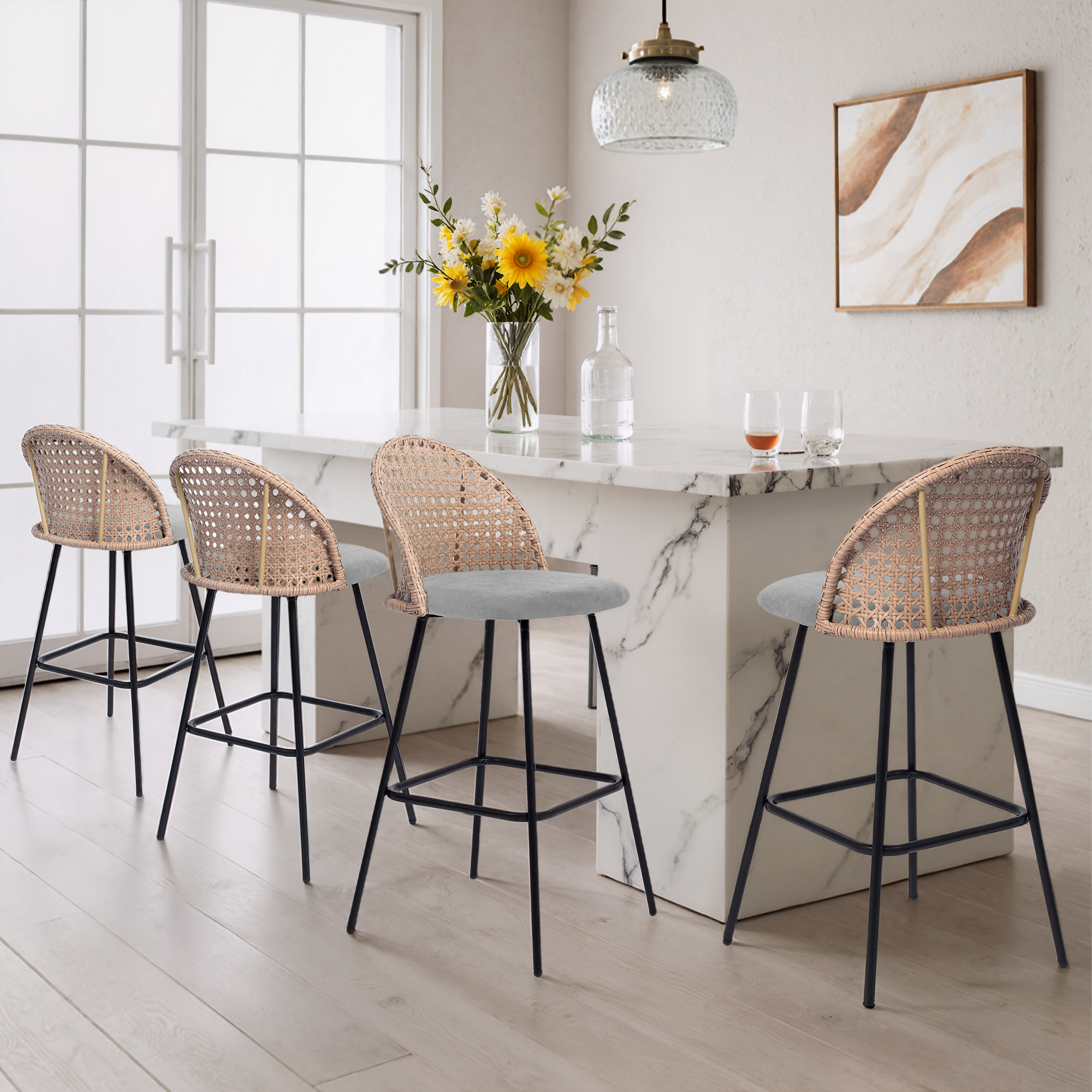 Oonagh Chenille Upholstered Wicker Back Bar Stools Set of 4