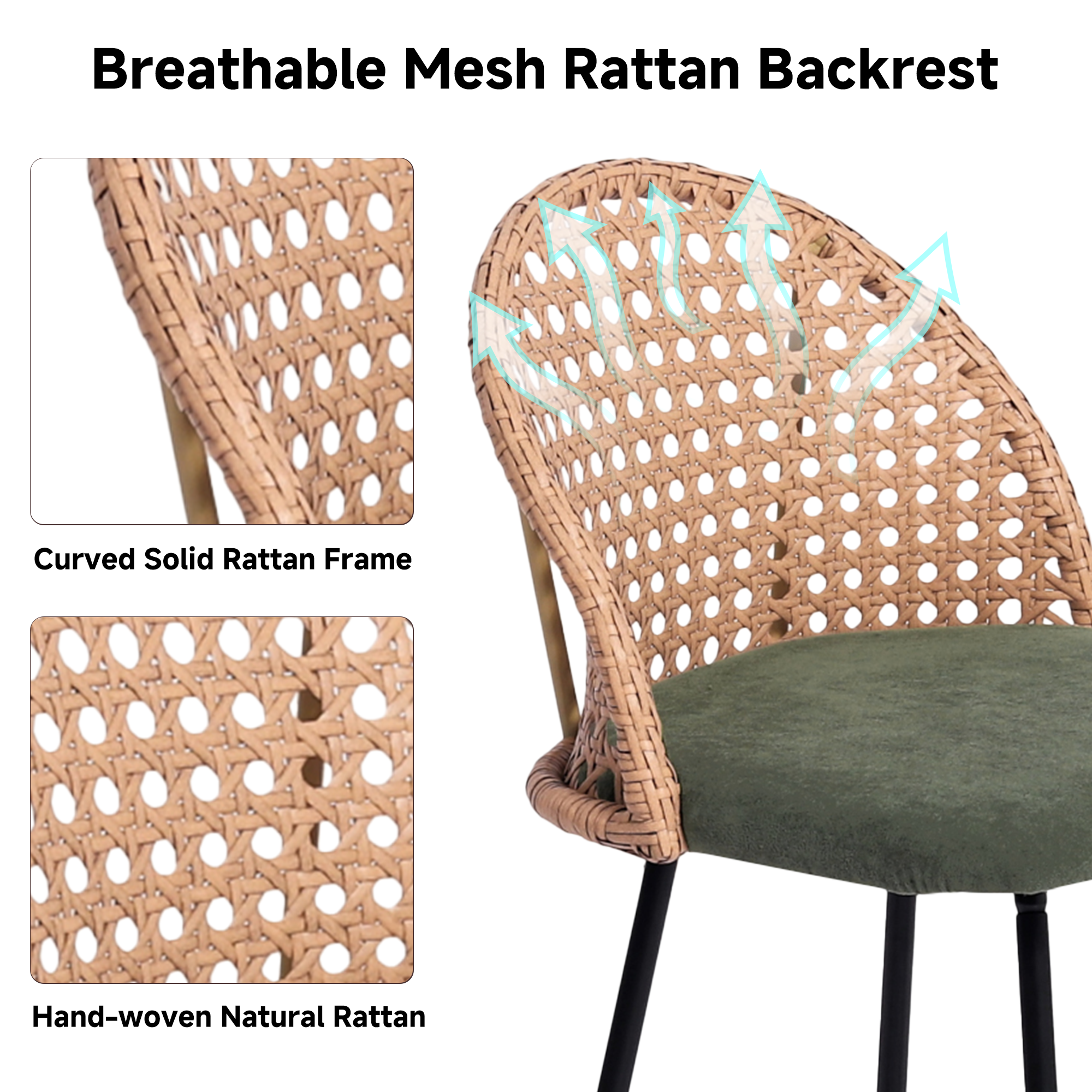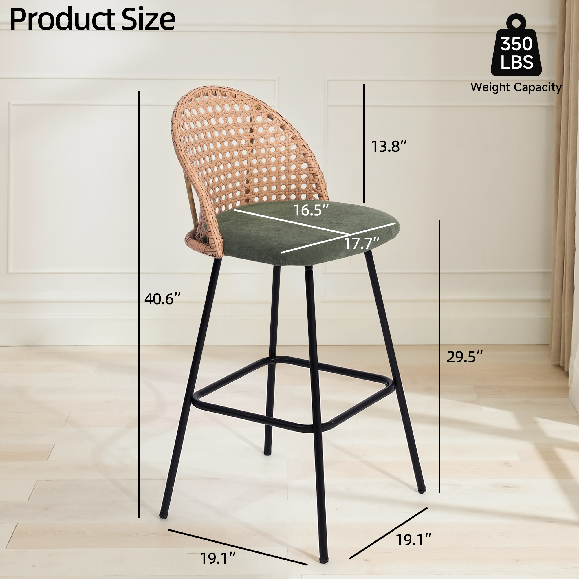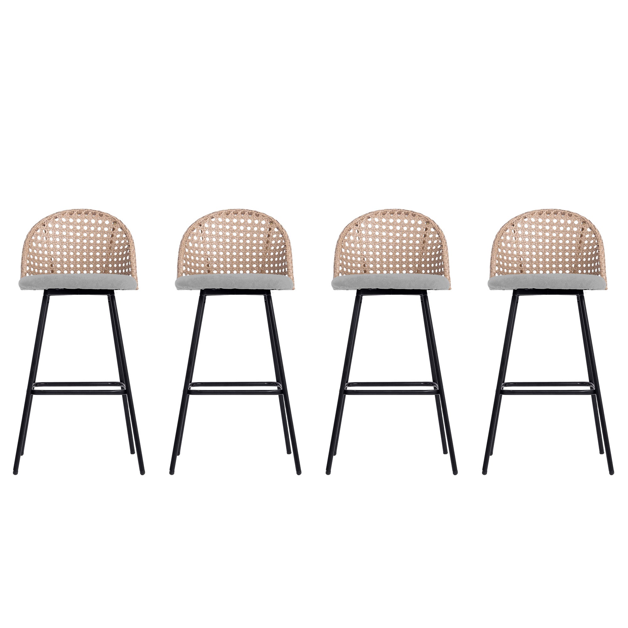 Oonagh Chenille Upholstered Wicker Back Bar Stools Set of 4