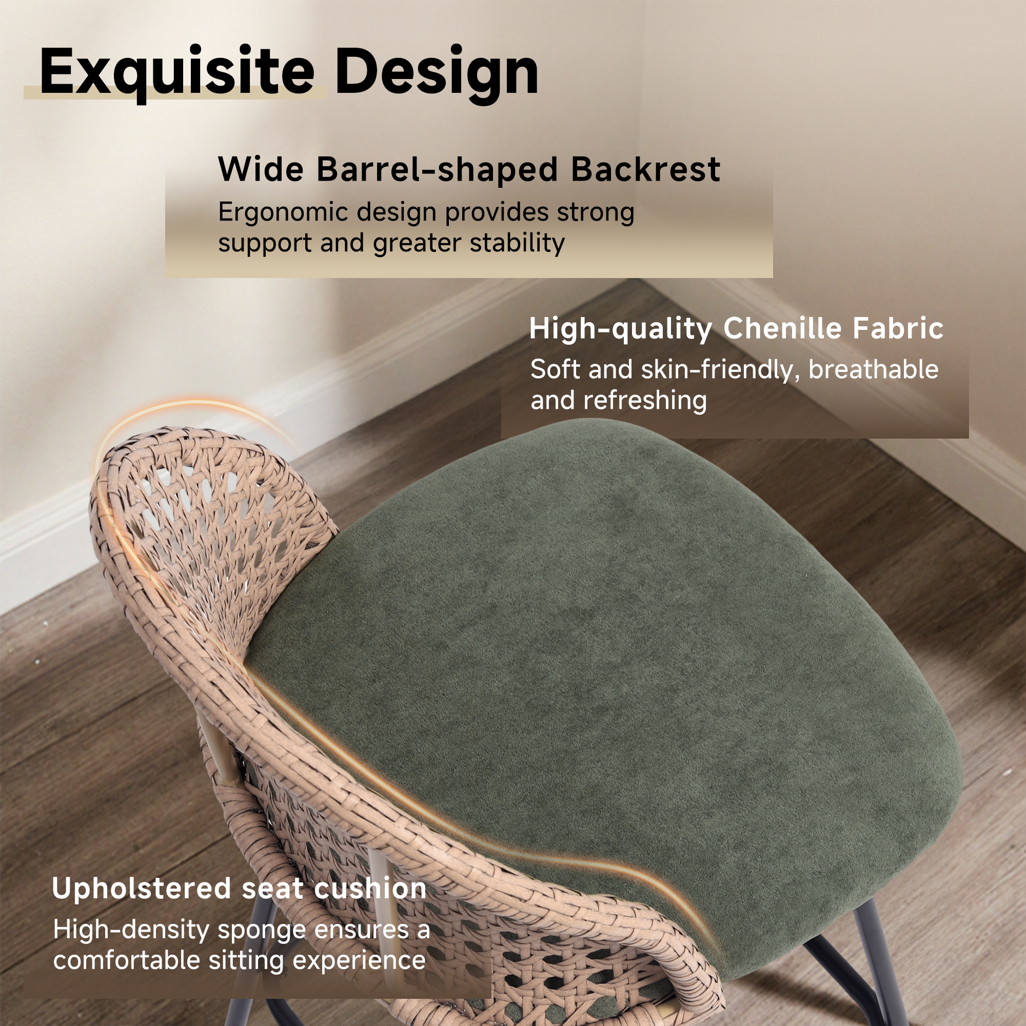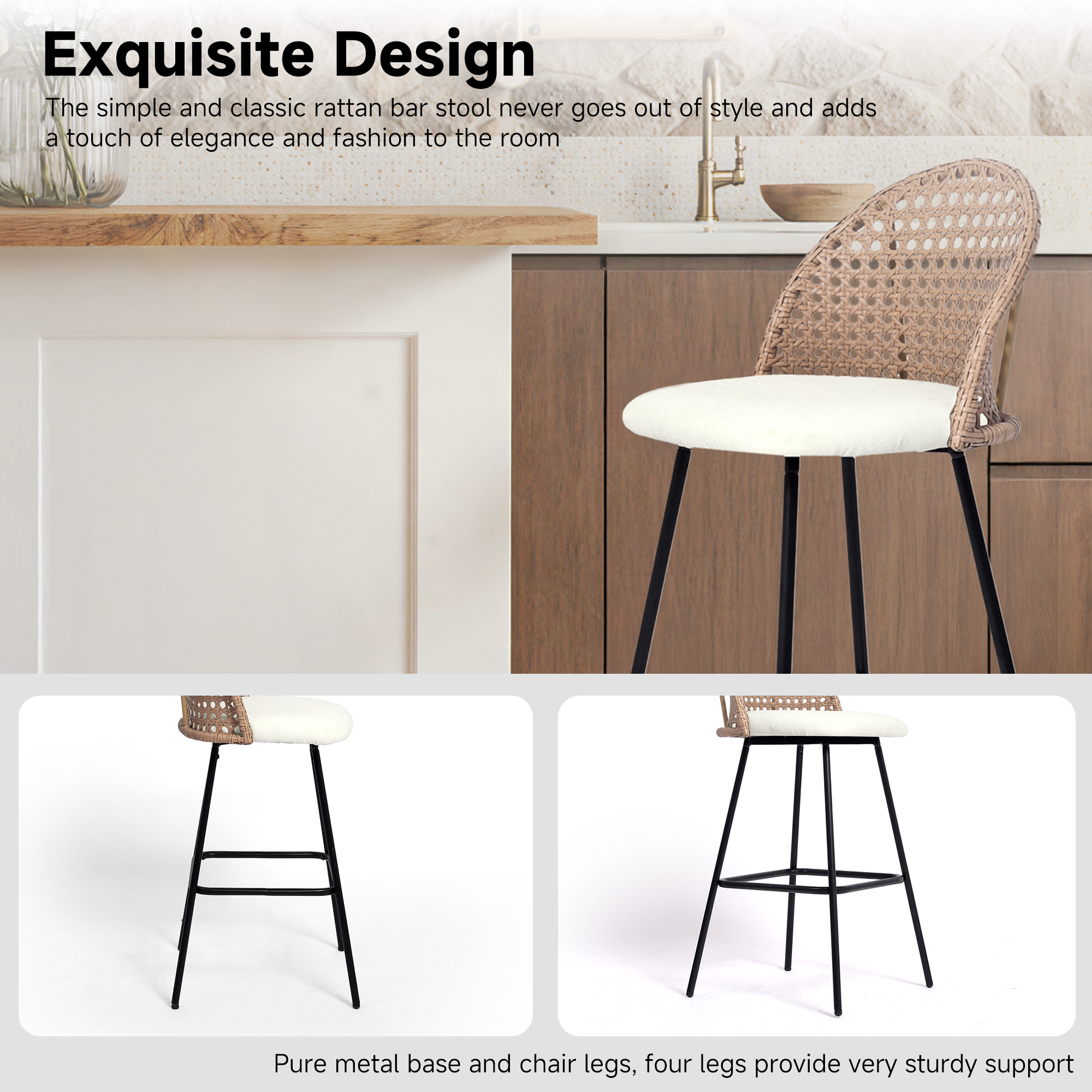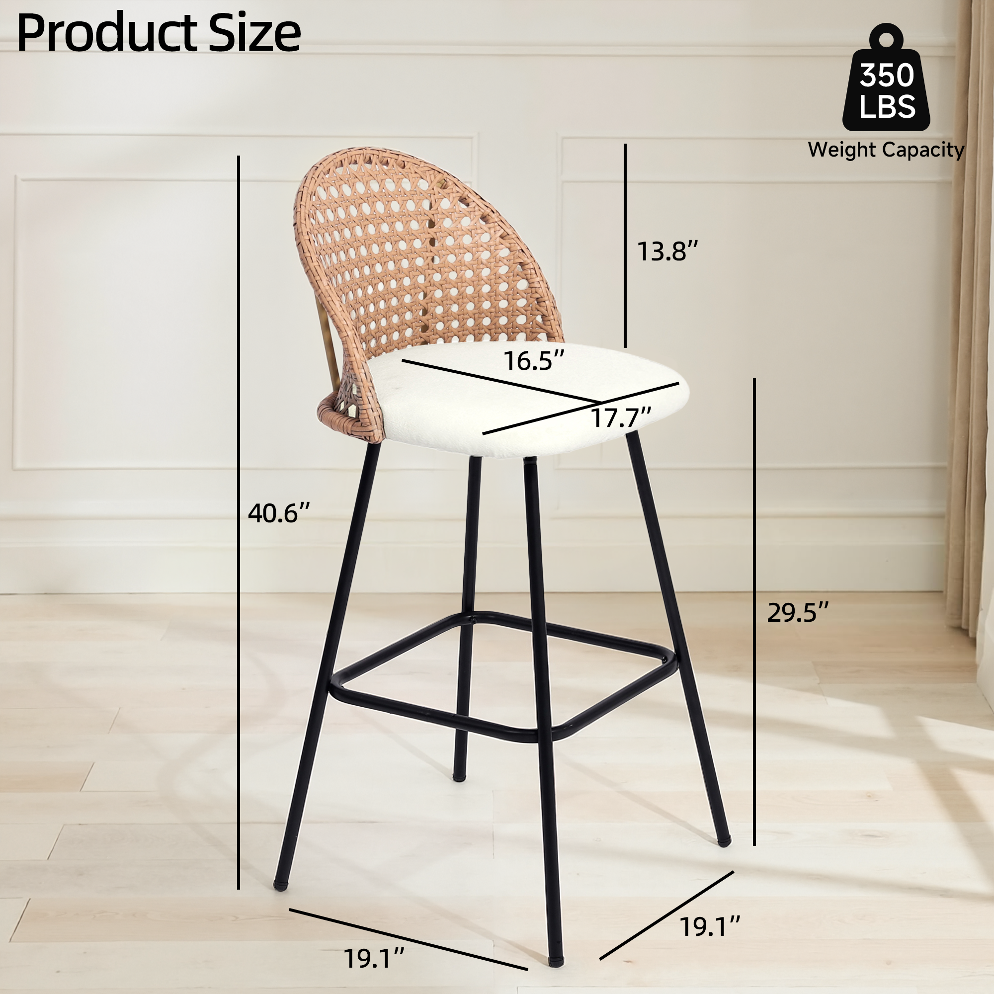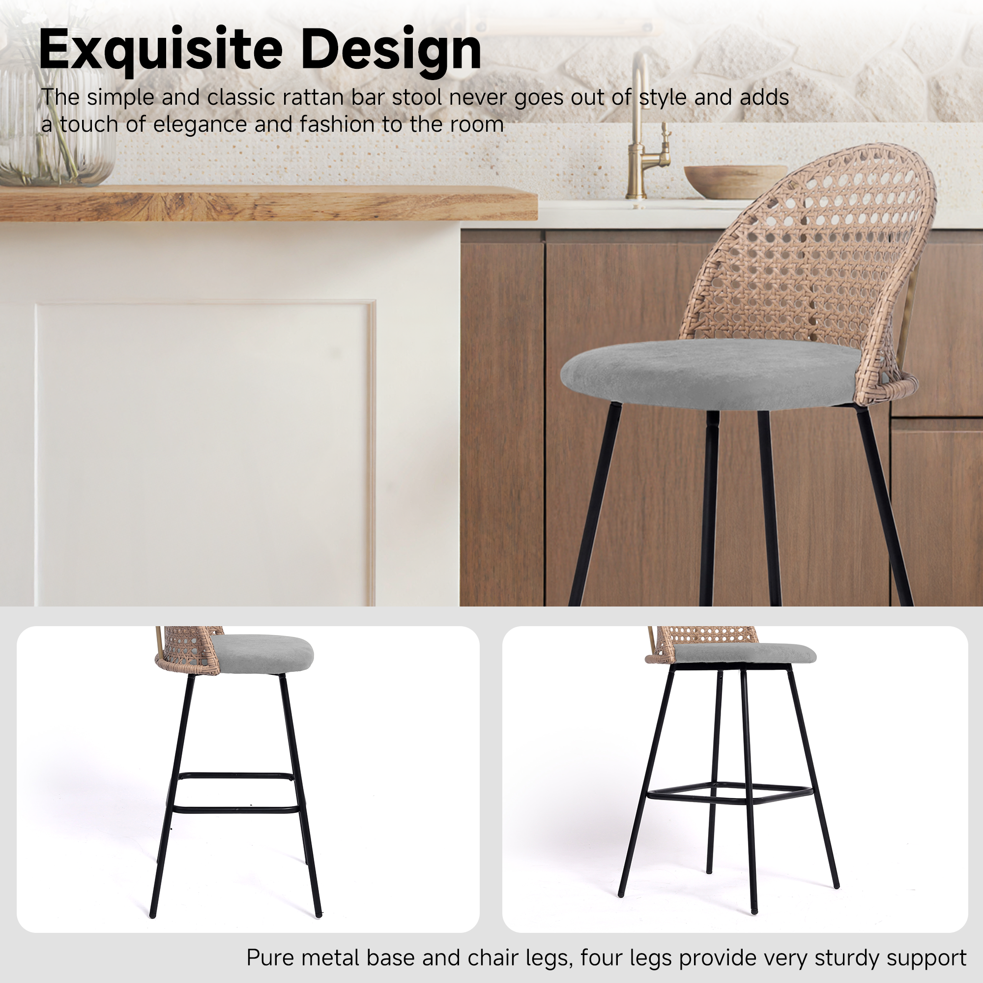 Bring an easy, breezy coastal mood to your home bar with our Oonagh Chenille Upholstered Wicker Back Bar Stools Set of 4. Curved backs showcase a wicker-style weaving technique that nods to rattan caf¨¦ seating while keeping the silhouettes light and open. Foam-padded chenille seats feel softly cushioned for long chats over drinks at bar height. Slender metal legs with a square footrest keep each perch feeling steady without looking heavy. Moreover, adjustable levelers at the feet help all four 29.5-inch seats sit even, so a full bar setup stays relaxed and balanced.