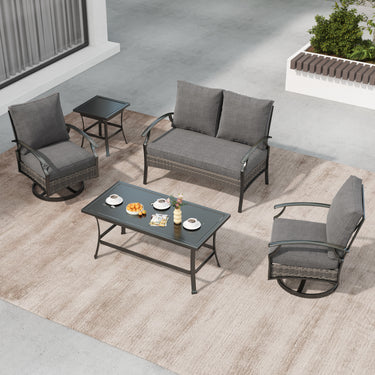 Outdoor Metal 4-Person Patio Set With Two Tables and Wicker Decor