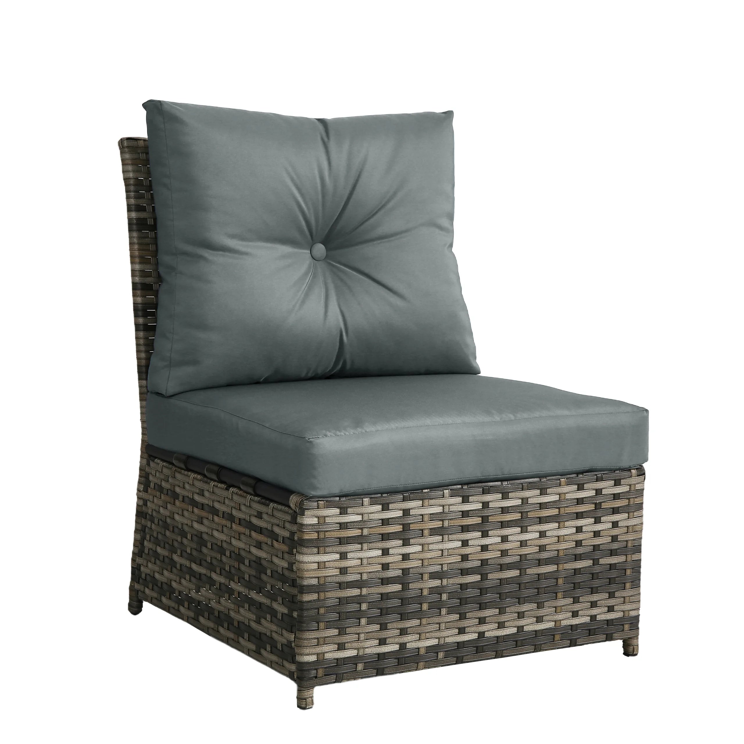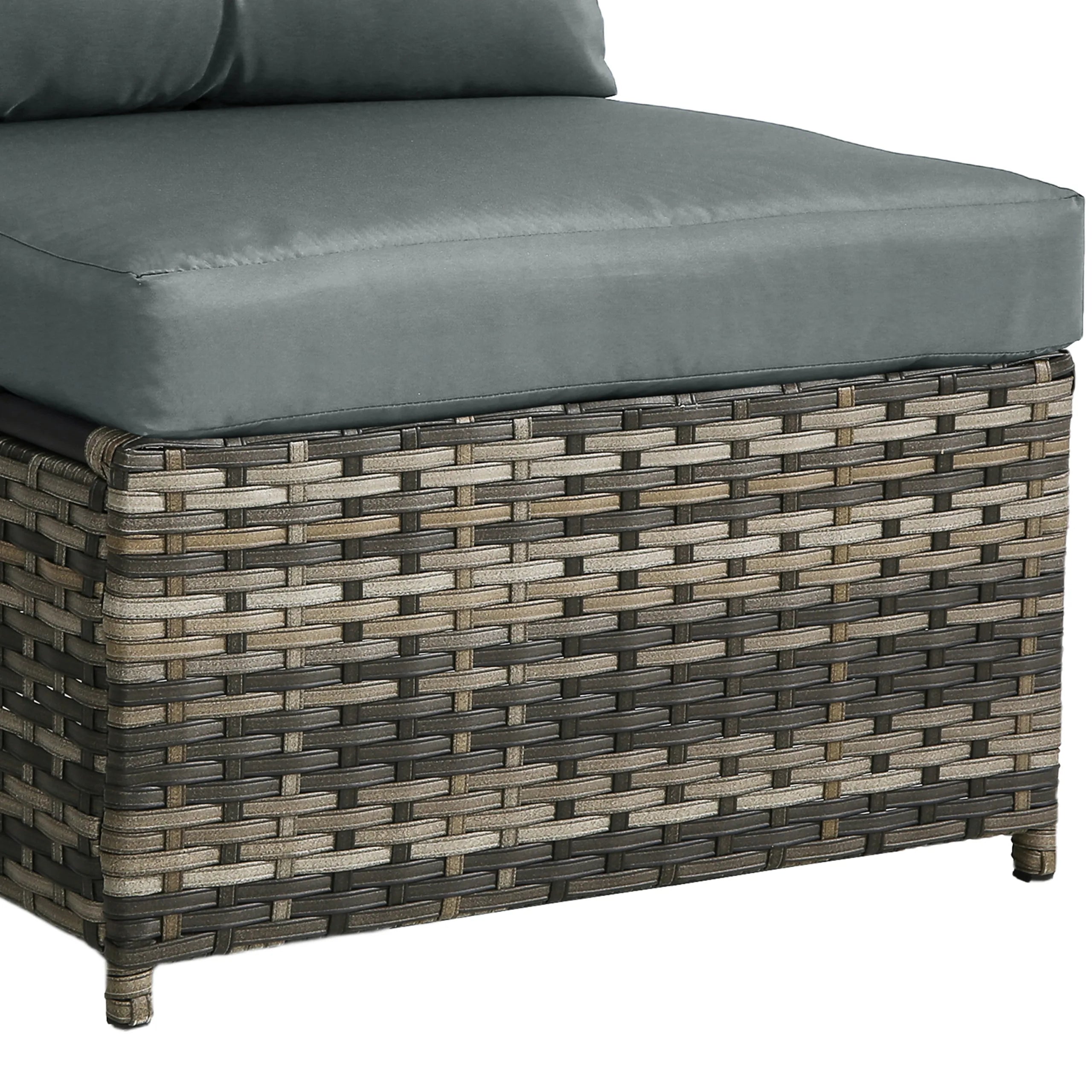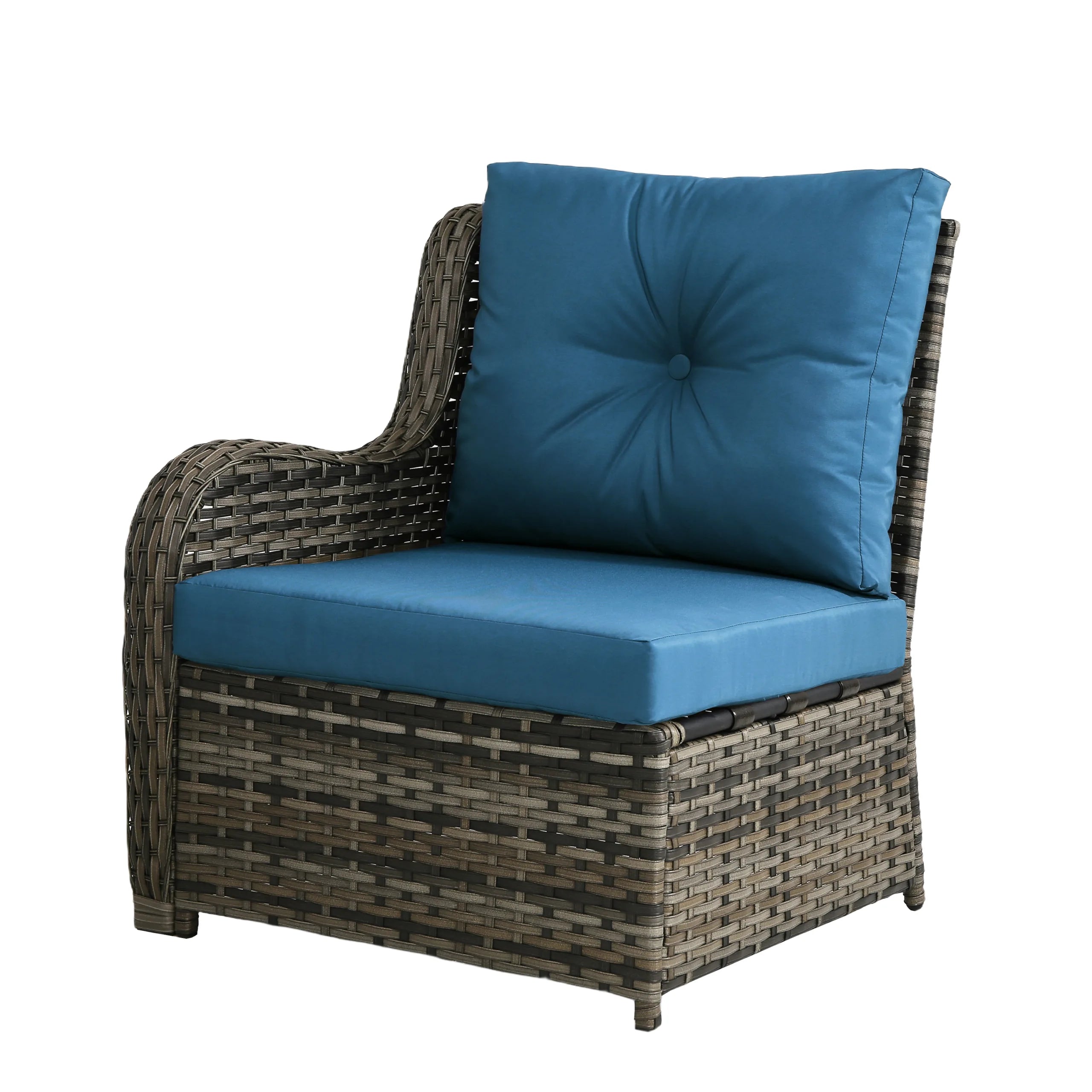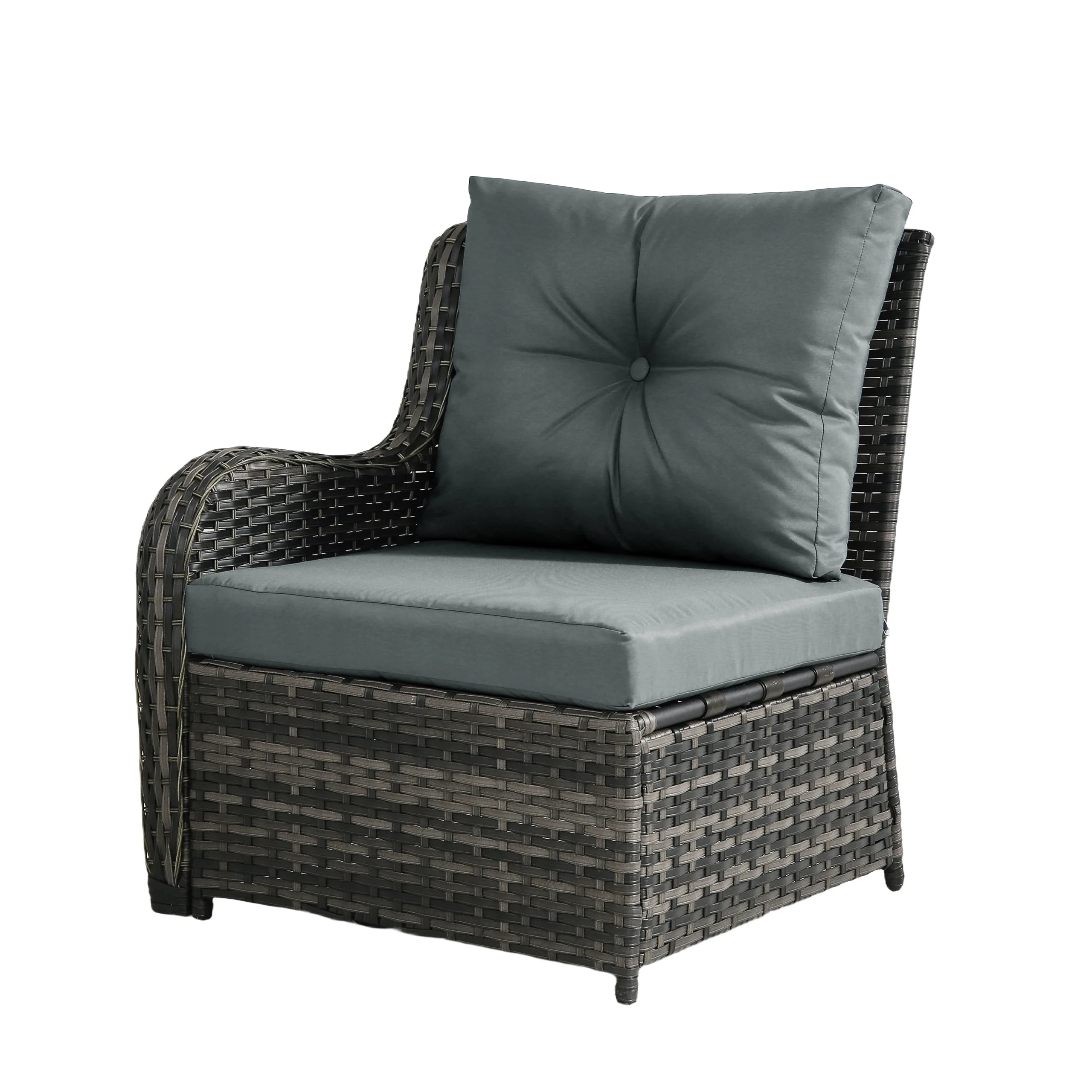 Turn your backyard into a relaxing retreat with our Elara 6-Piece PE Wicker Cushioned Outdoor Patio Set with Table. This versatile set includes three armless chairs, two single-arm chairs, and a tempered-glass coffee table, allowing you to create a sofa arrangement, separate seating, or a mix of both. Handwoven in water-resistant PE wicker over powder-coated steel frames, the set is available in a light or deep wicker tone to suit your style. Curved armrests provide a comfortable perch, while each back cushion features a single button tuft for a polished look. The tempered-glass table top cleans easily after drinks and snacks, keeping your outdoor space neat, comfortable, and ready for gatherings.