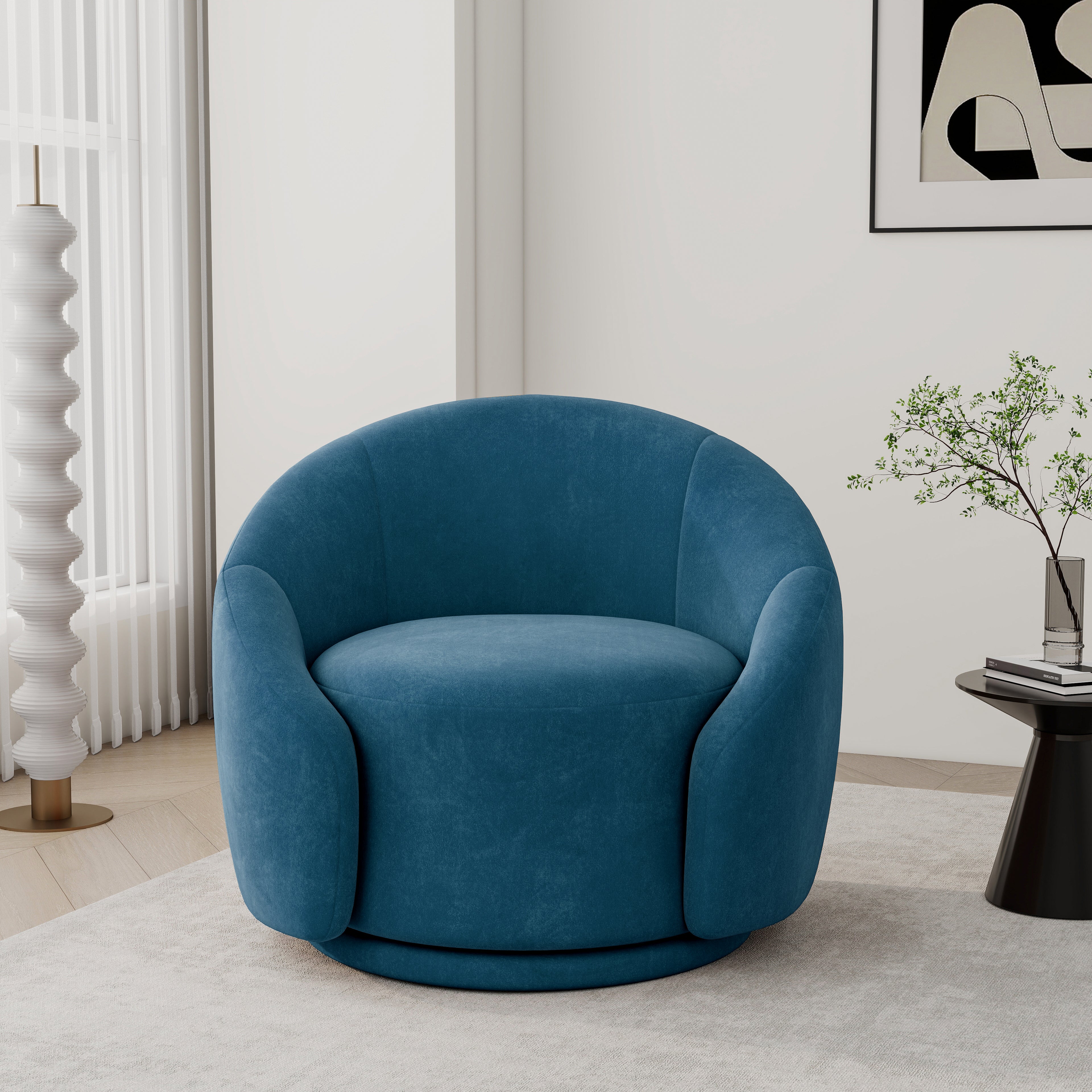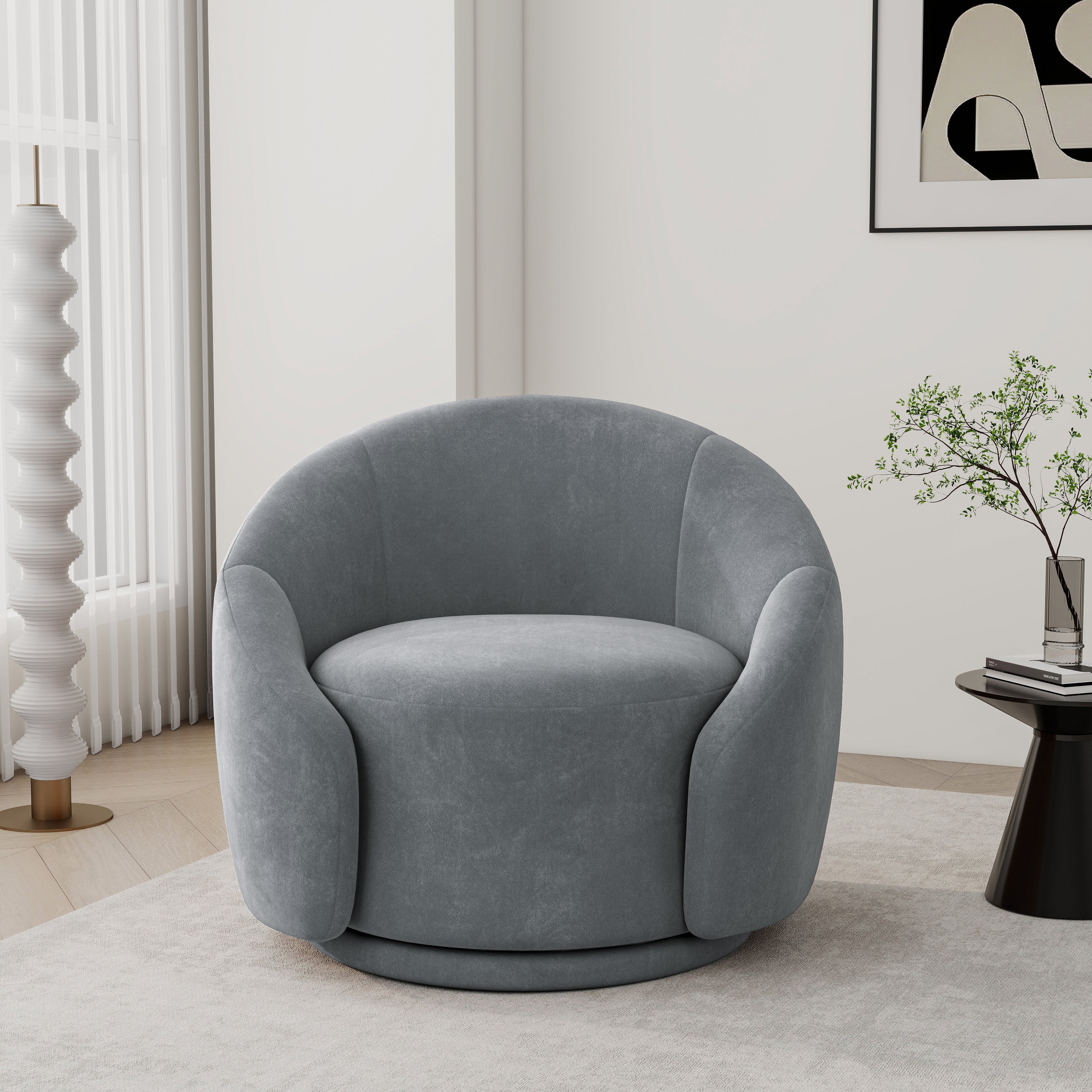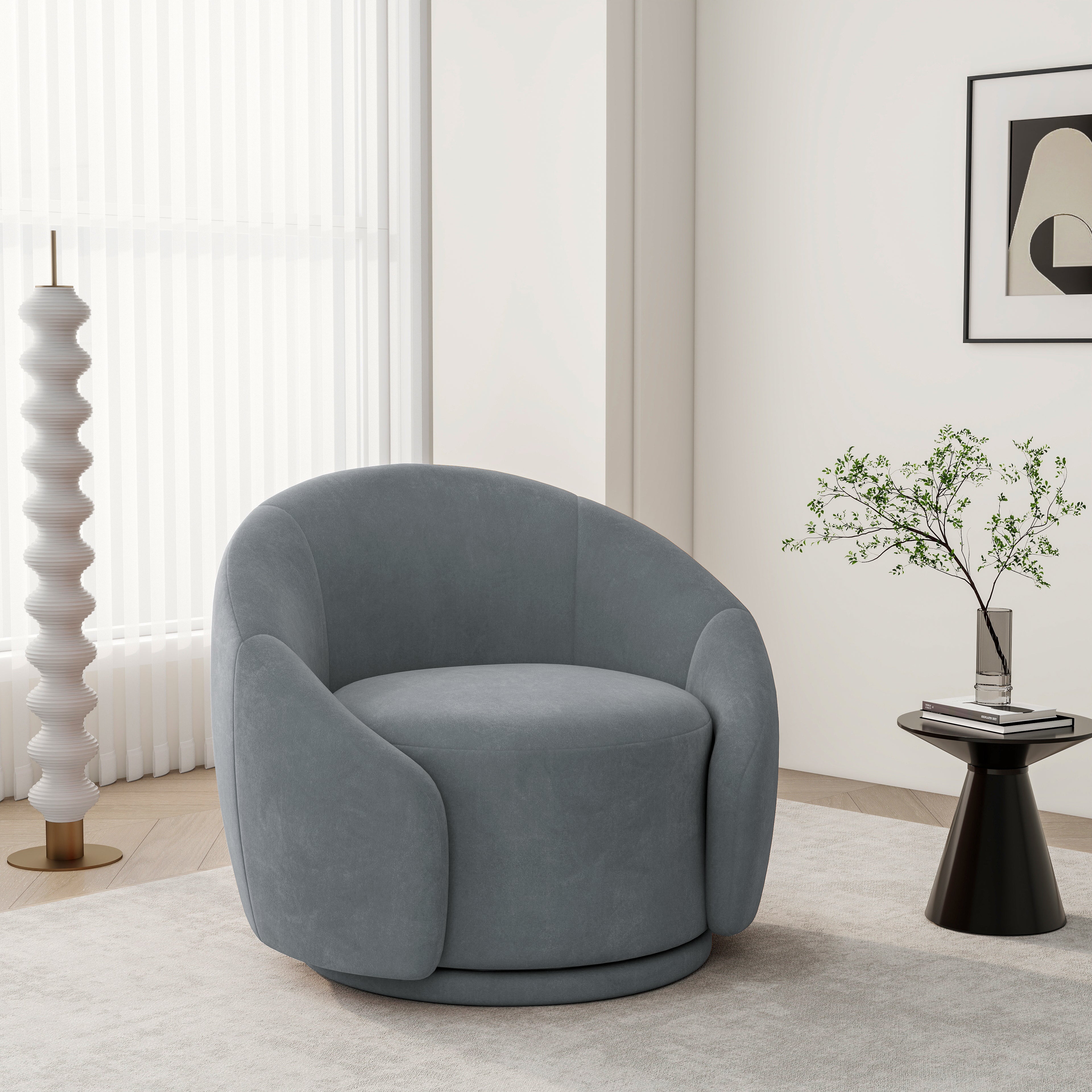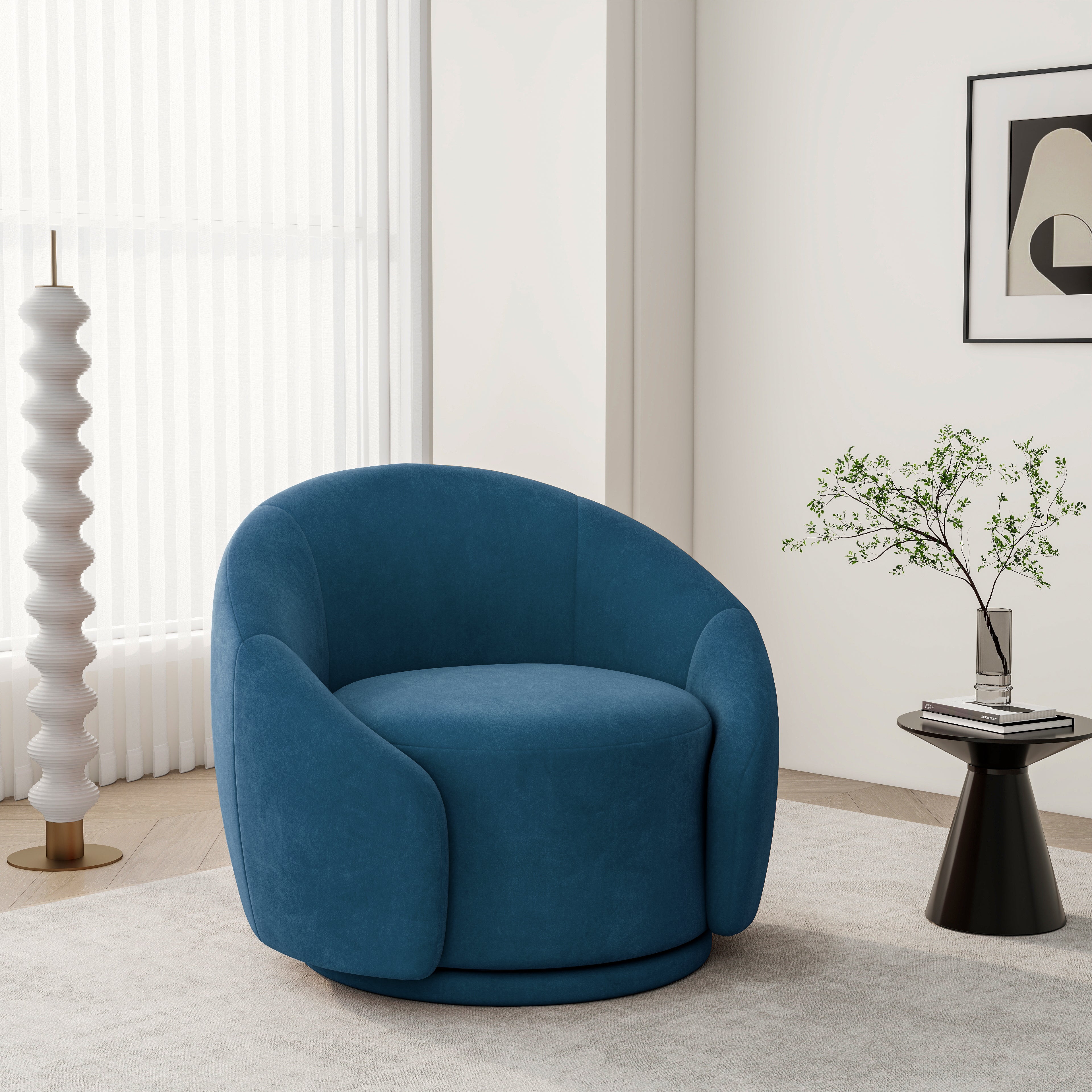 This accent chair blends elegance and practicality, designed to elevate any space with its luxurious velvet or boucle fabric options. With its comfortable innerspring/coil cushioning, foam, and synthetic fiber filling, this chair promises ultimate relaxation. The chair's sturdy frame is crafted from solid wood, ensuring long-lasting durability. Featuring a smooth 360° swivel function, it provides effortless movement for easy conversation or simply enjoying a cozy afternoon. The iron legs add a modern touch to the overall design. Best of all, no installation is required—simply unbox and enjoy. Ideal for a variety of spaces, including living rooms, bedrooms, home offices, and lounges, this chair combines style, comfort, and functionality in one sophisticated piece.